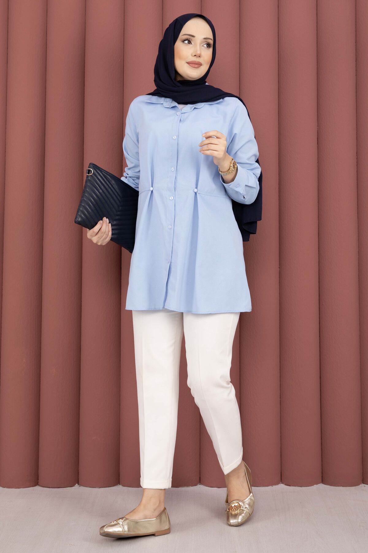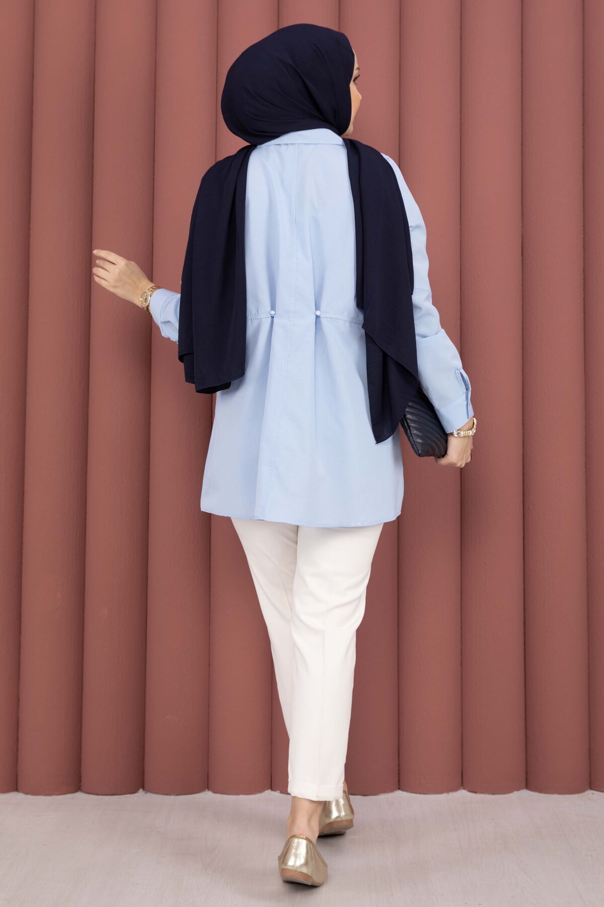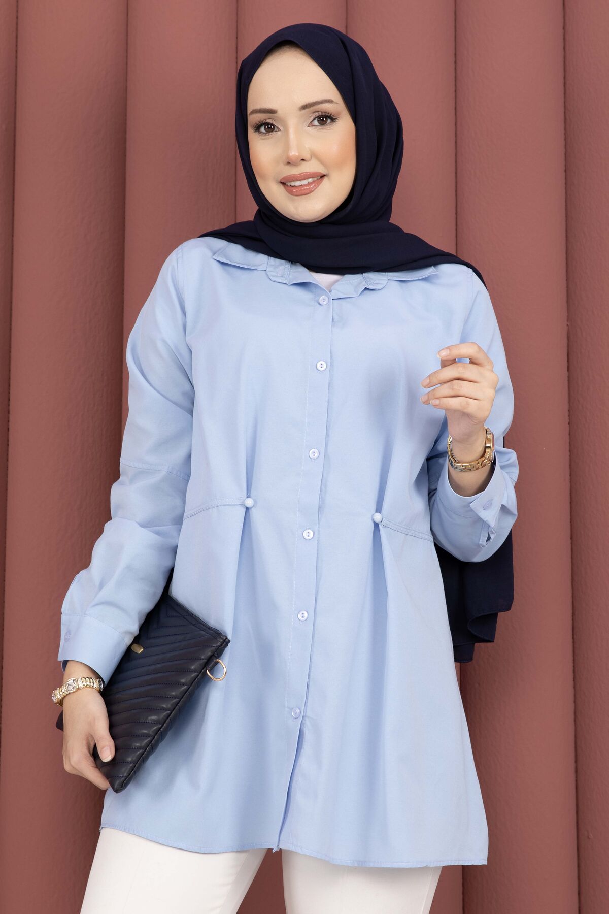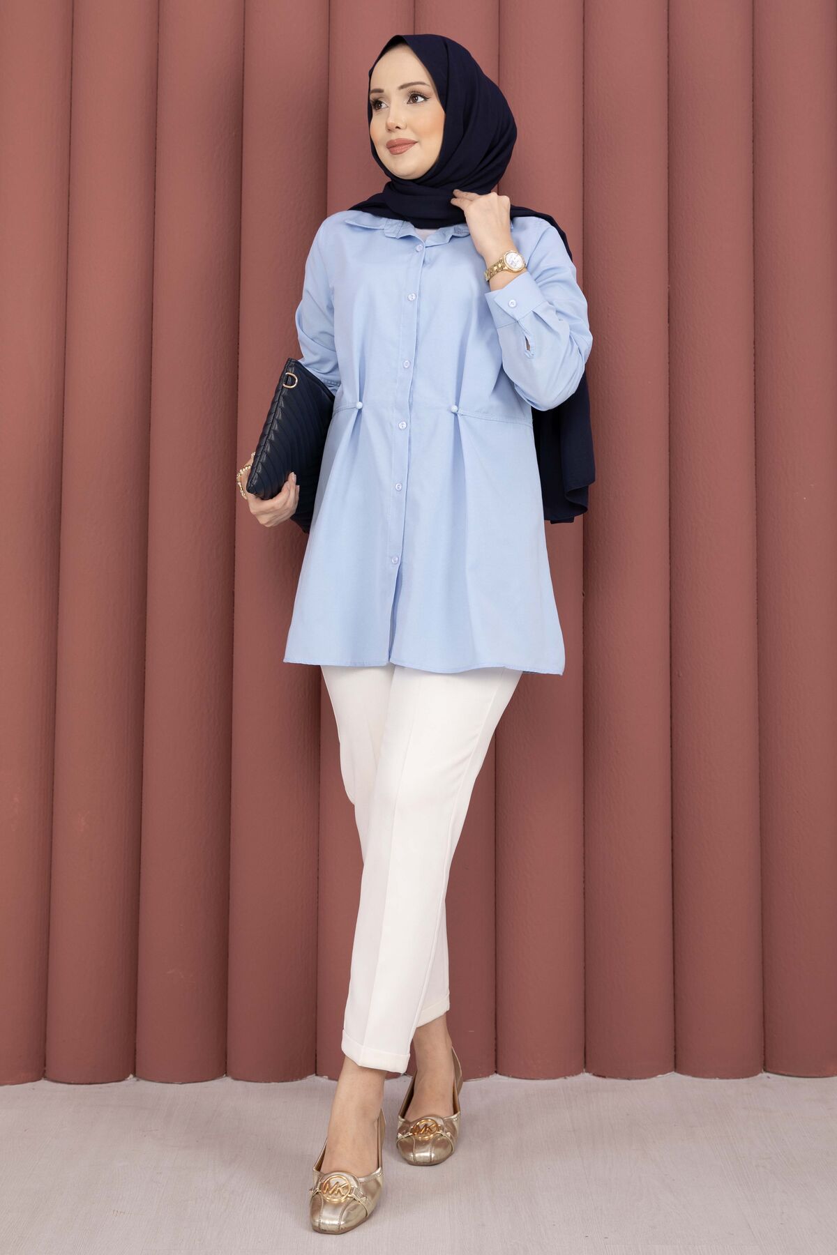 Alin Bel Ayarlı Düğmeli Gömlek Bebe Mavisi