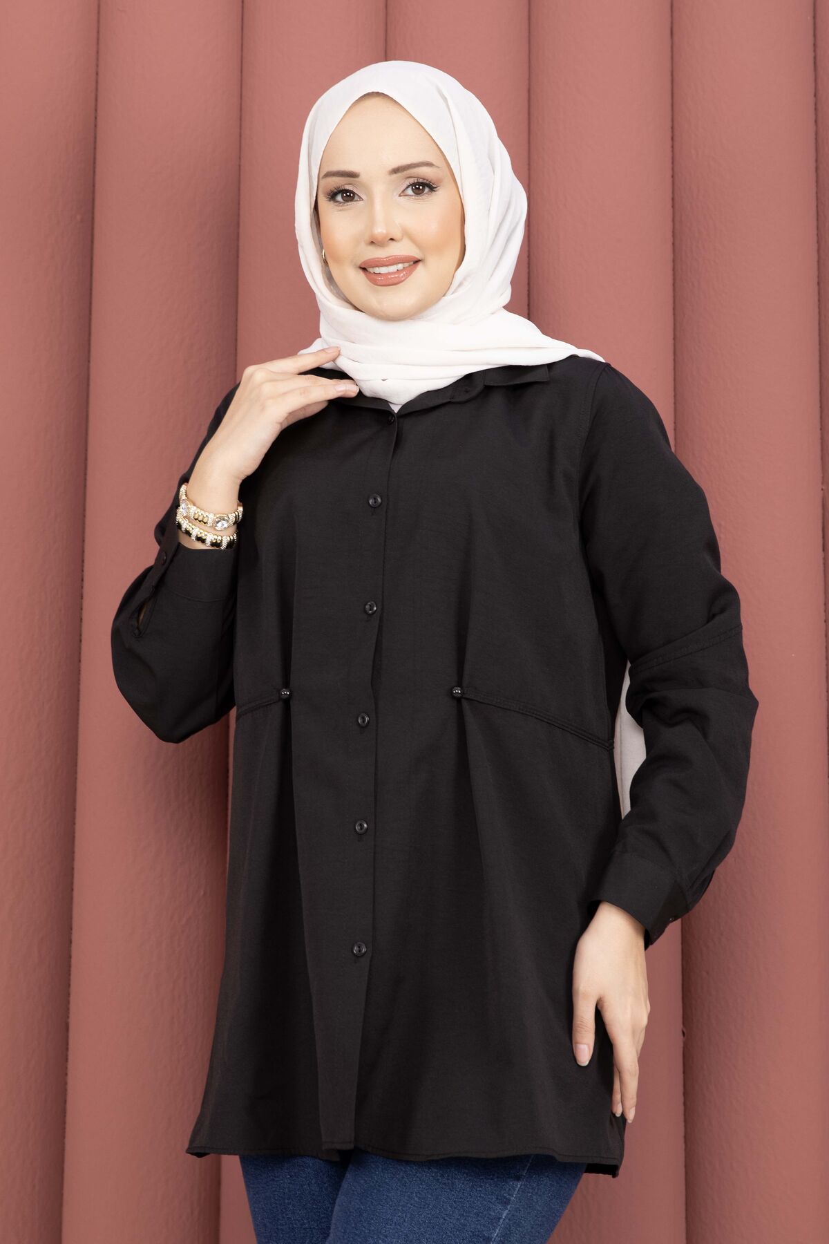 Alin Bel Ayarlı Düğmeli Gömlek Siyah Yorumları