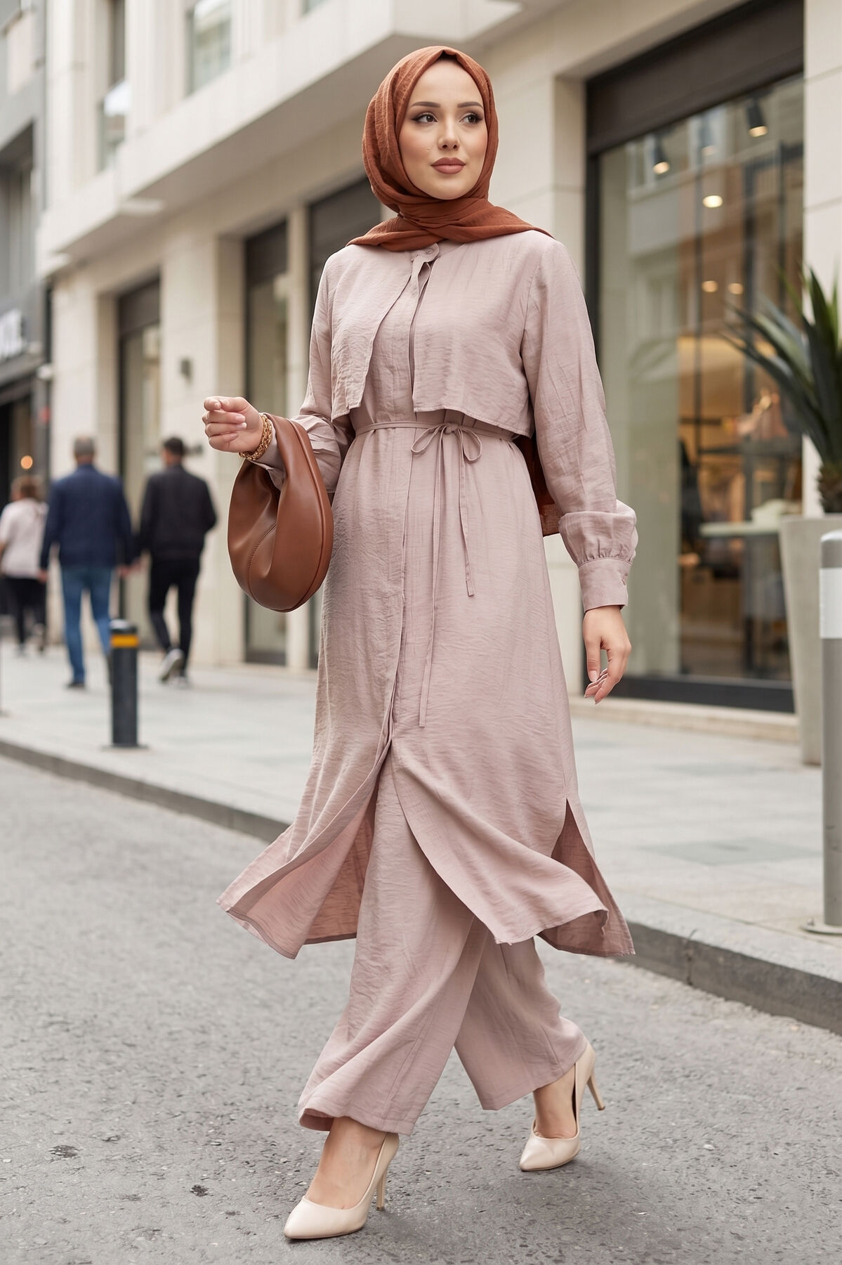 Modern ve zarif çizgisiyle öne çıkan Aller Detaylı Kuşaklı Pantolonlu İkili Takım, günlük şıklığı konforla buluşturan özel bir tasarımdır. Akıcı duruşu ve minimal detayları sayesinde hem şehir stilinde hem de özel kombinlerde rahatlıkla kullanılabilir.