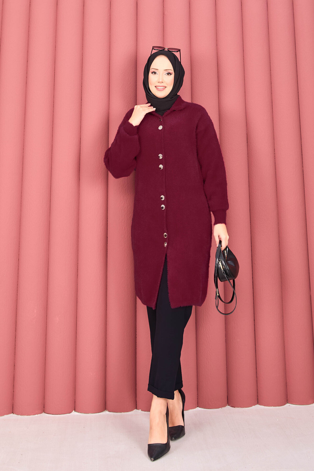 Altın Düğmeli Tesettür Angora Hırka Bordo