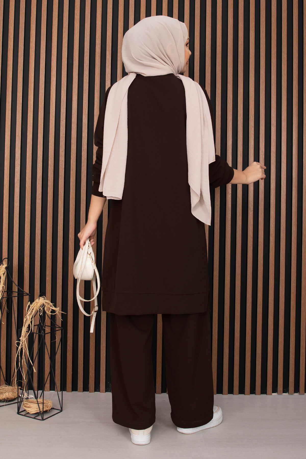 Arma Detaylı Spor İkili Tesettür Takım Kahve