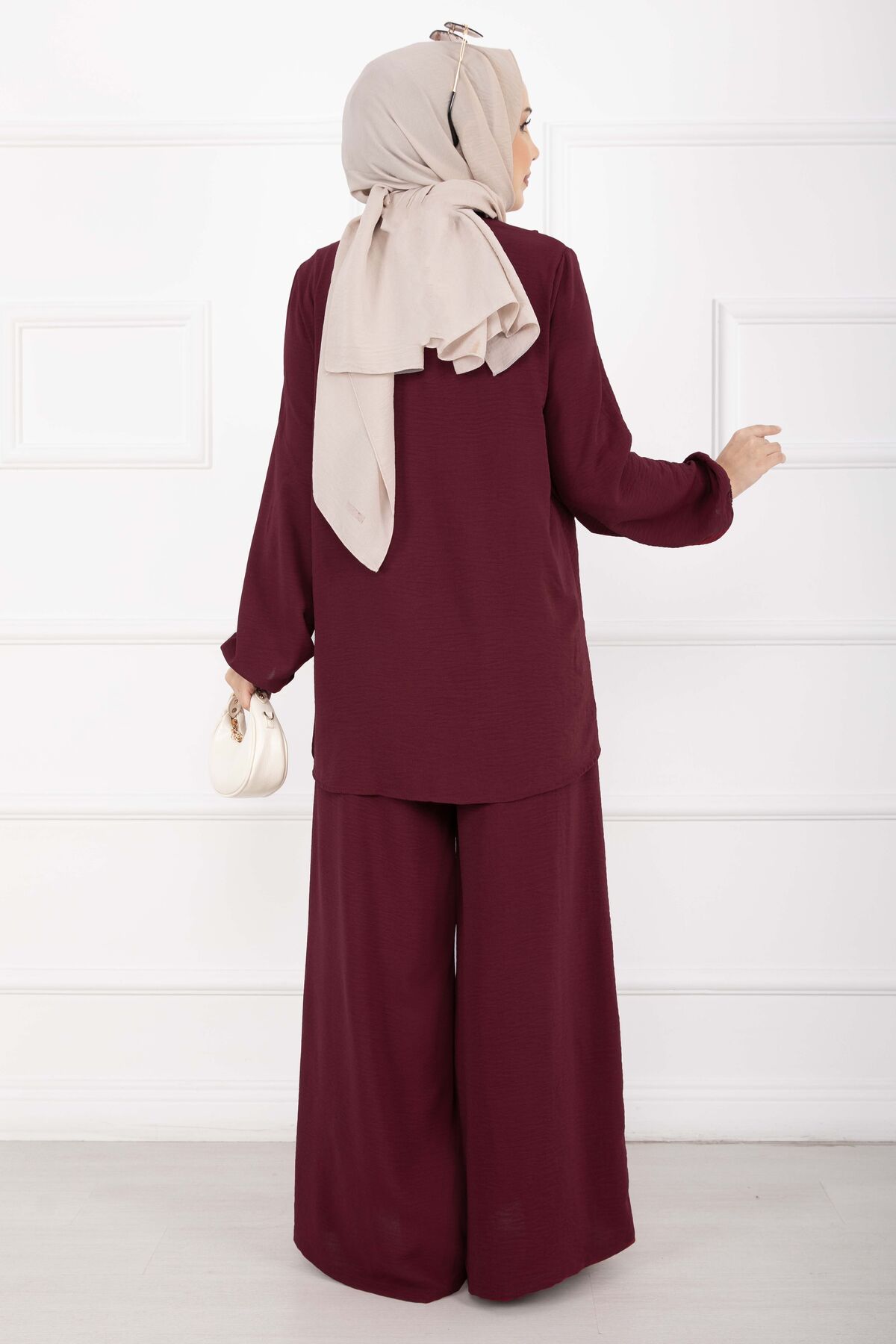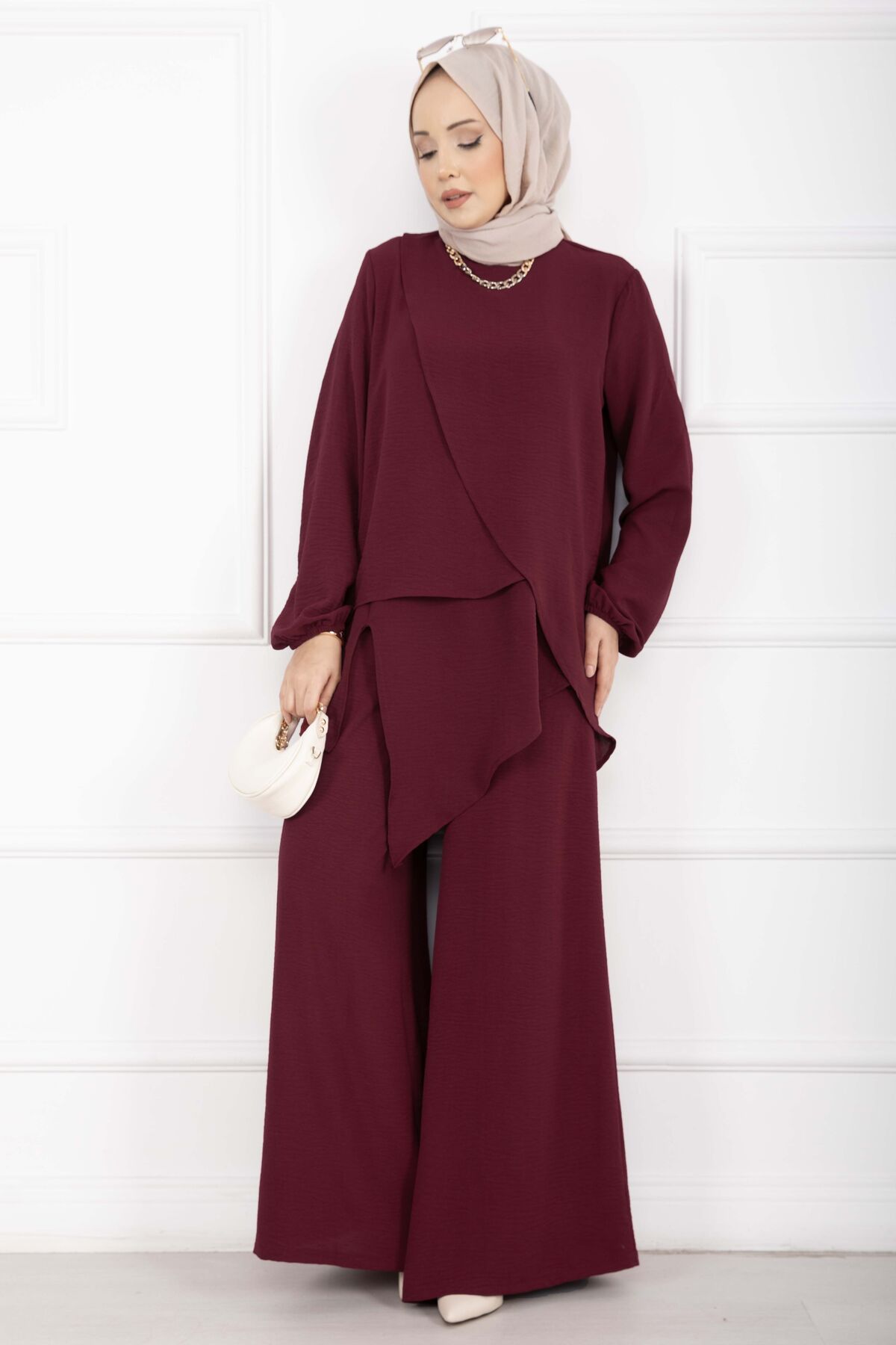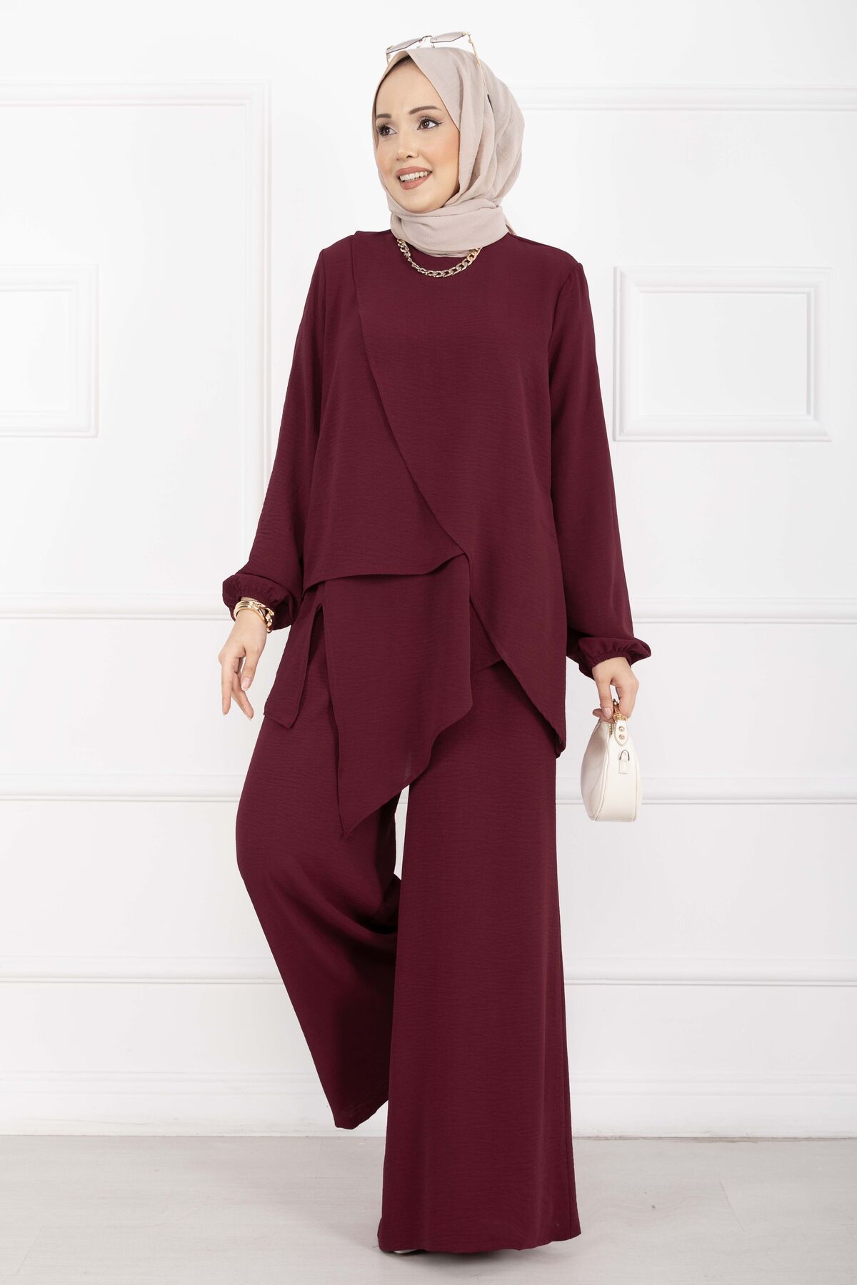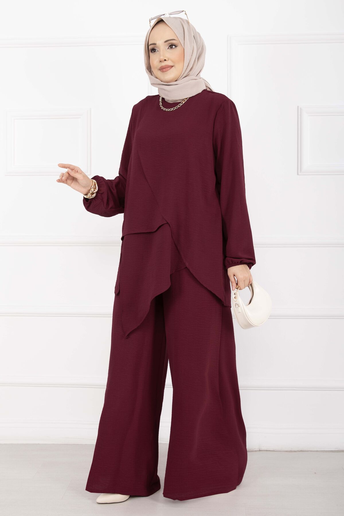 Asimetrik Kesim Aerobin Tesettür İkili Takım Bordo