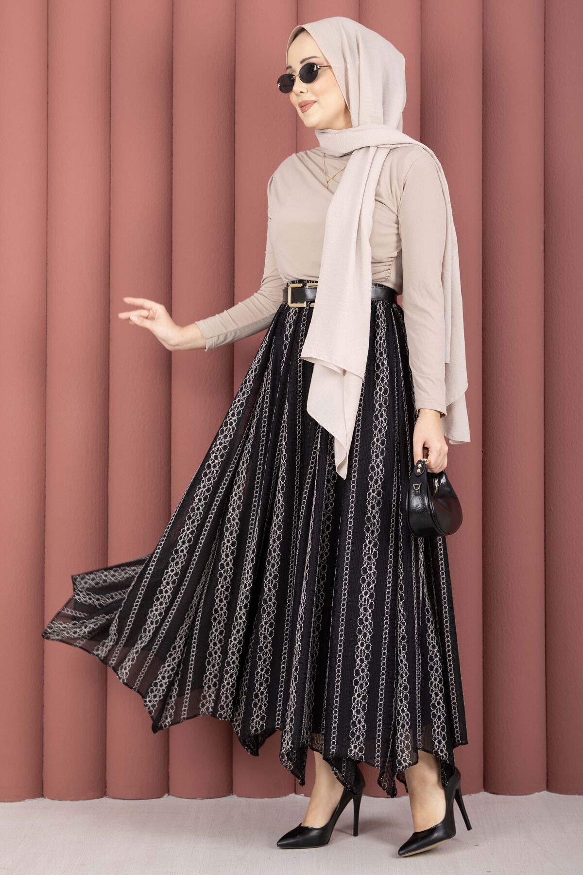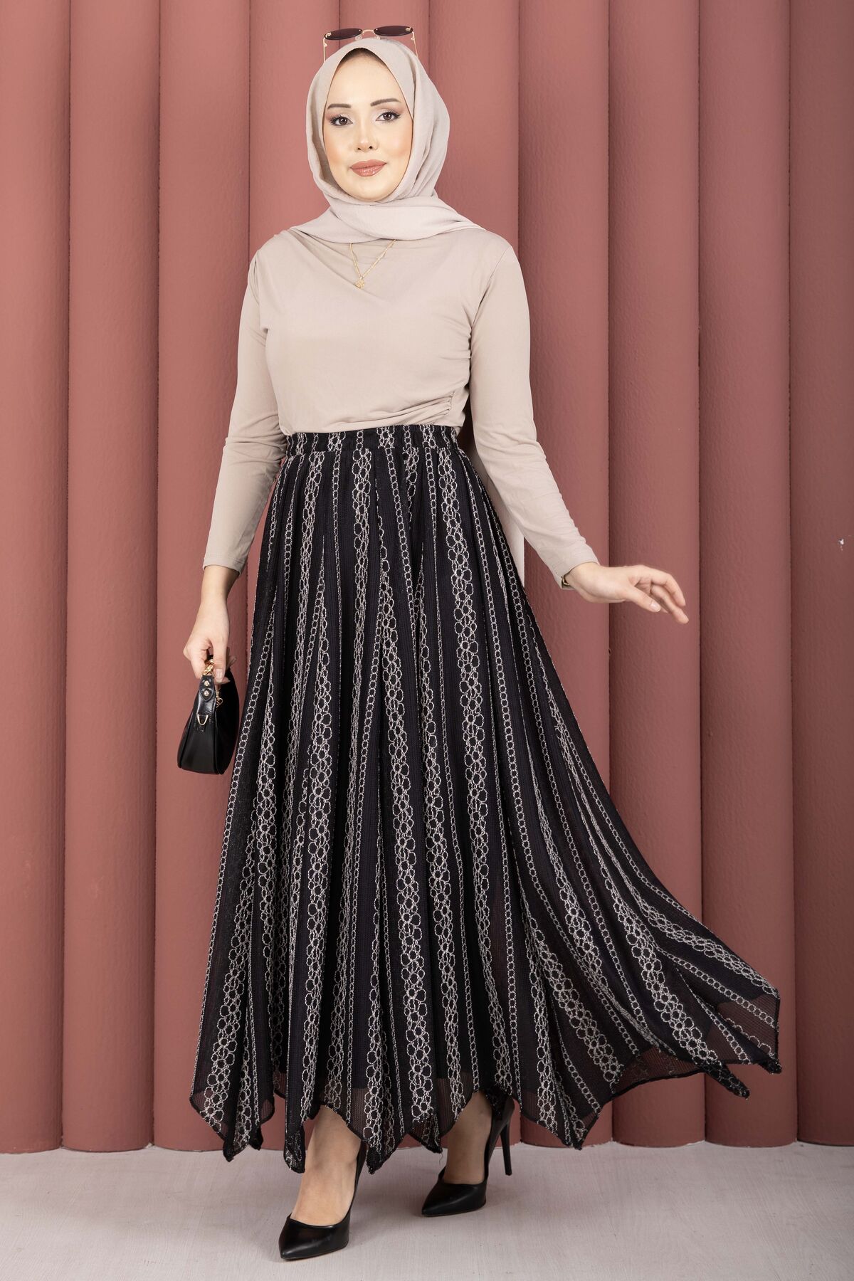 Zarif dantel dokusu ve modern asimetrik kesimiyle öne çıkan bu etek, şıklığı konforla buluşturur. Organze dantel kumaşı sayesinde hafif ve dökümlü bir duruş sunarken, iç astarı ile rahat ve güvenli bir kullanım sağlar. Beli lastikli yapısı sayesinde gün boyu konfor sunar ve farklı bedenlere uyum sağlar. Günlük kombinlerden özel davetlere kadar geniş bir kullanım alanına sahiptir.