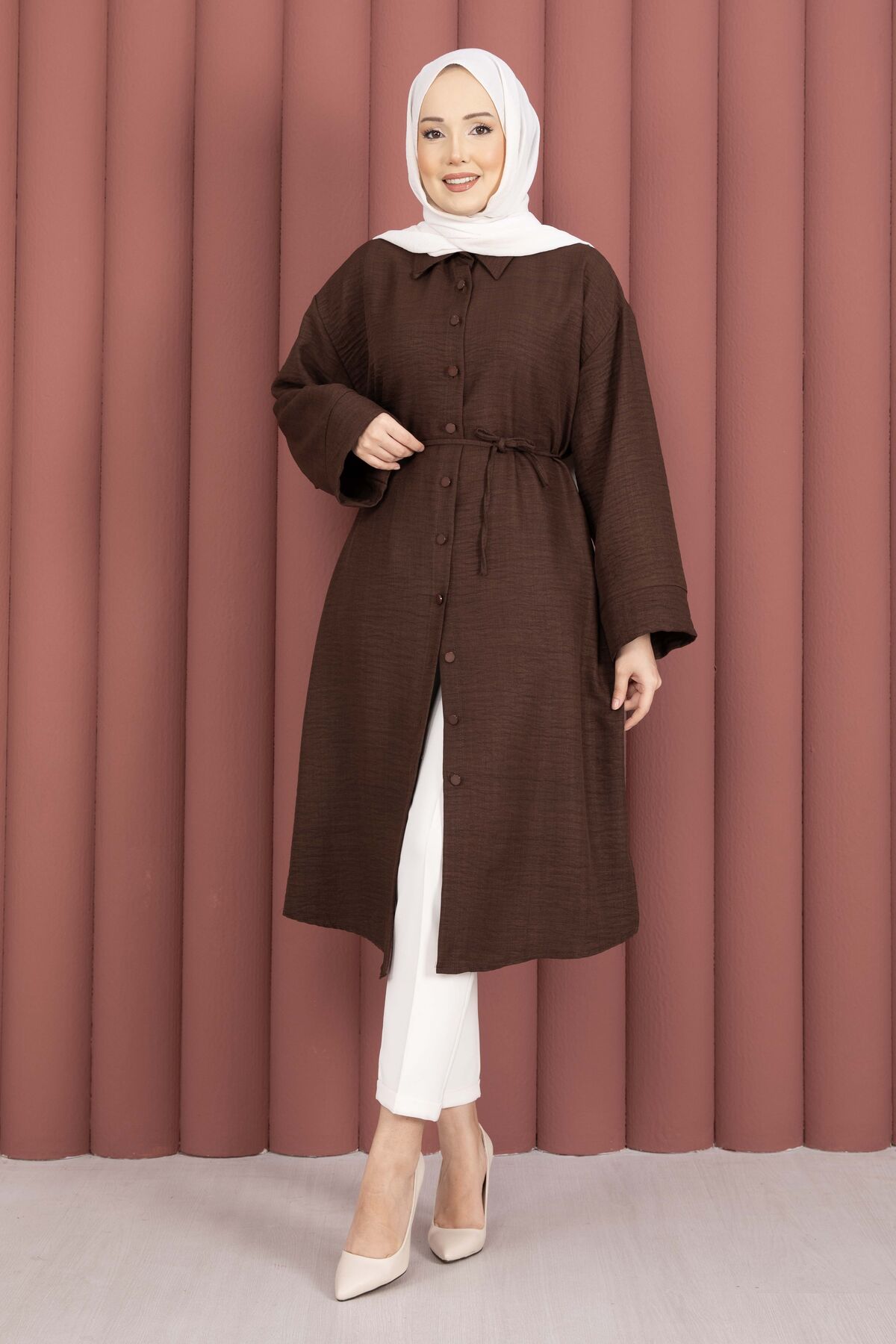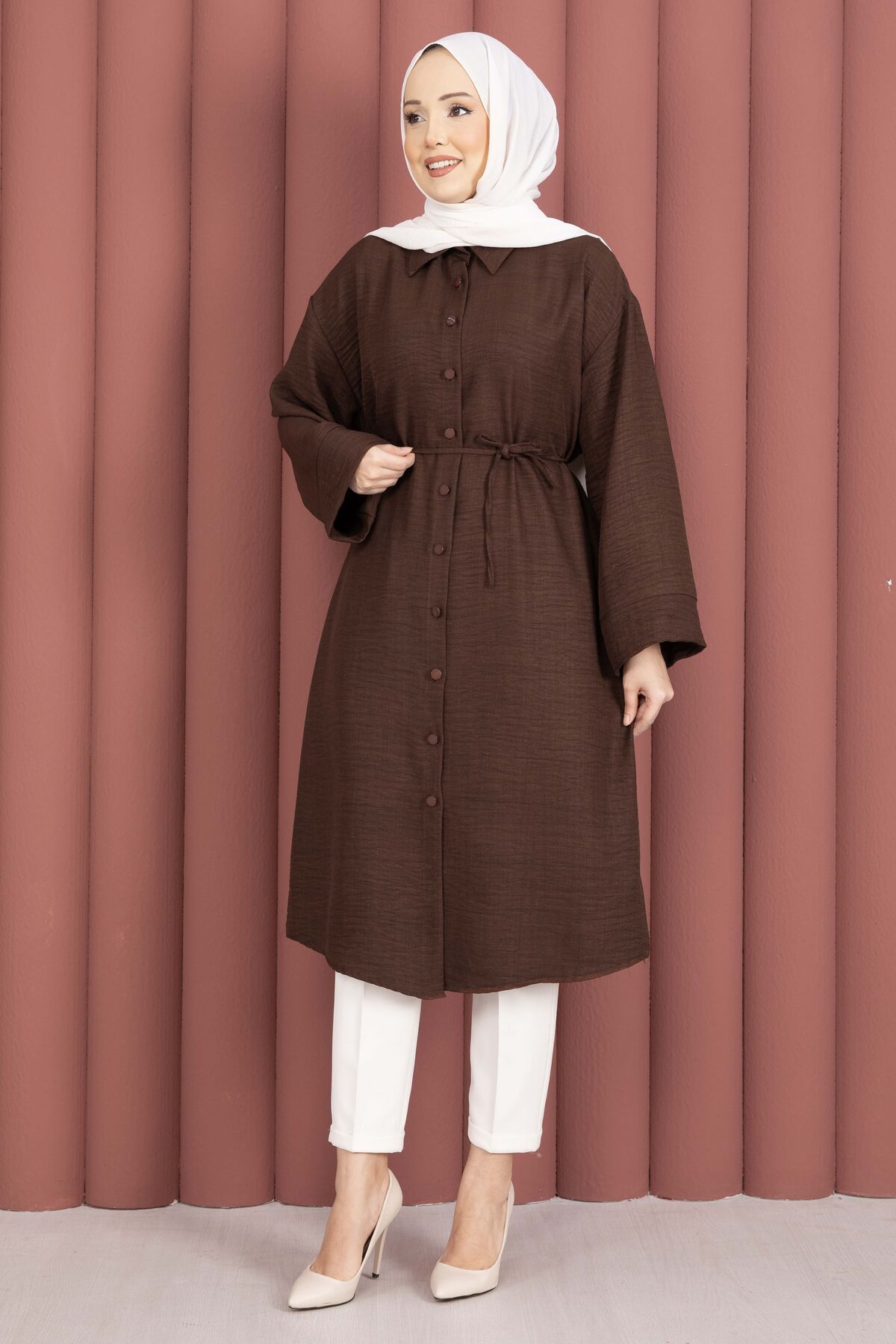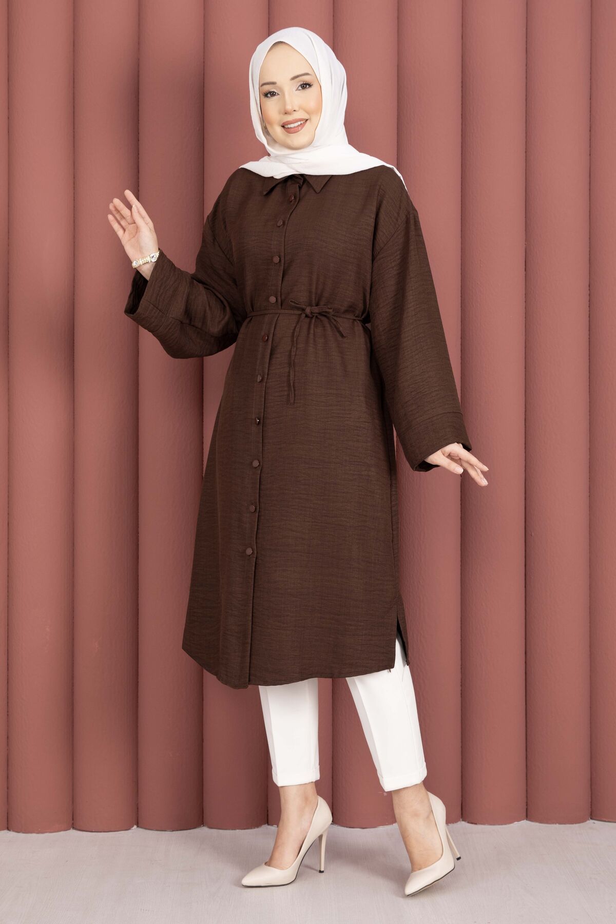 Zamansız ve rahat tasarımıyla öne çıkan Bağcıklı Boydan Düğmeli Tunik Gömlek, doğal dokulu yapısıyla gün boyu konfor sunar. Boydan düğmeli tasarımı sayesinde hem açık hem kapalı kombinlenebilir. Seyyar kuşağı ile isteğe göre bel vurgusu yapılabilir.
