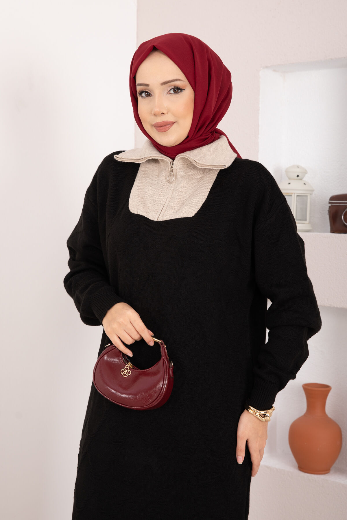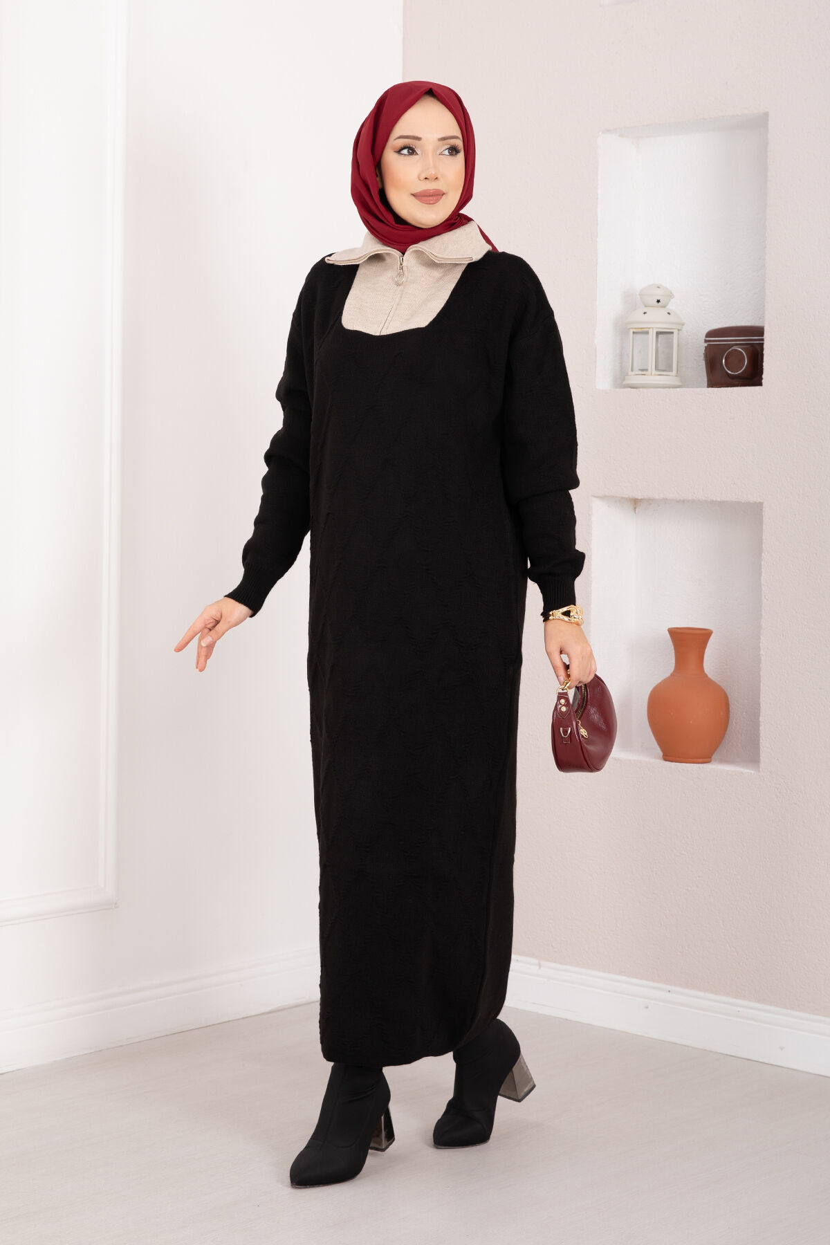Baklava Desen Garnili Triko Elbise Siyah - Taş Yorumları