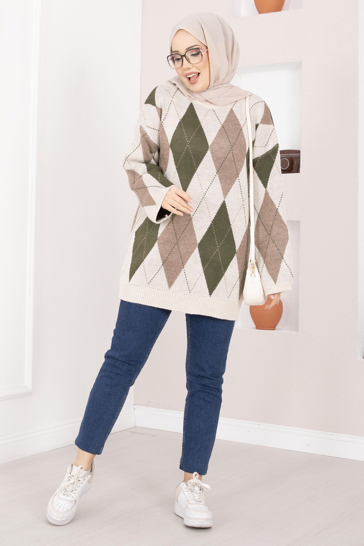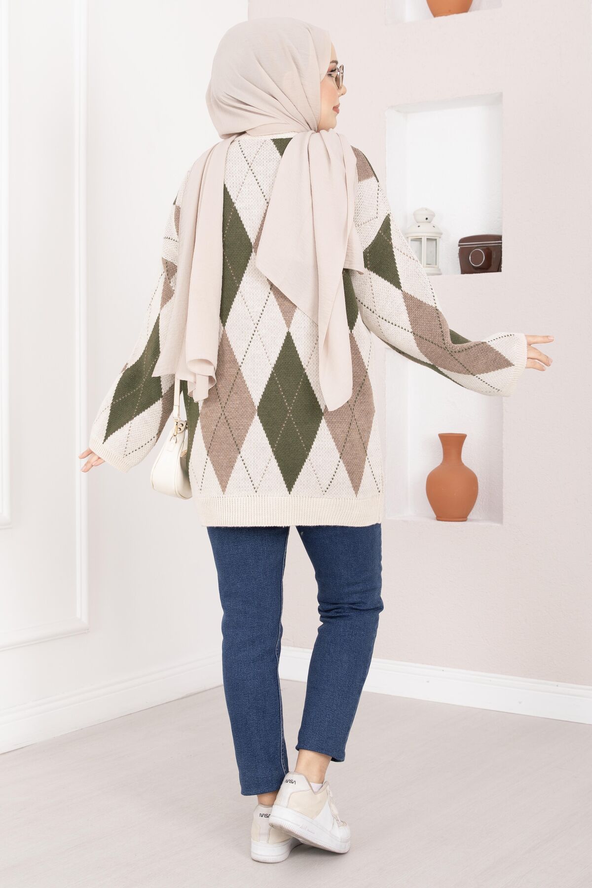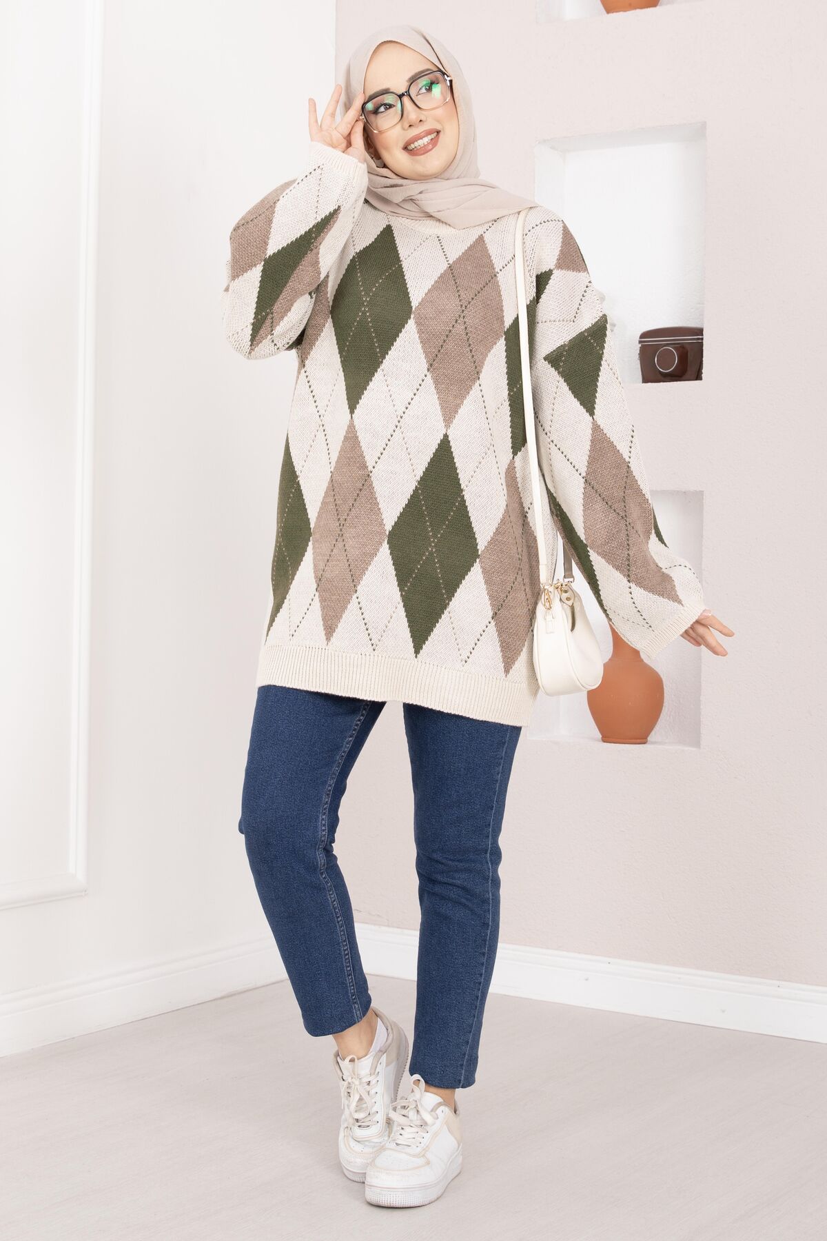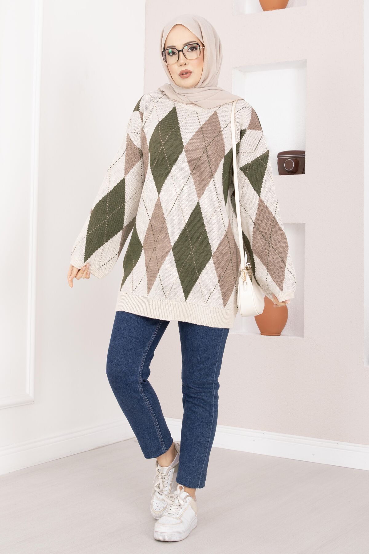 Modern baklava desen dokusuyla öne çıkan bu oversize triko kazak, rahatlığı ve şıklığı bir arada sunan zamansız bir parçadır. Yumuşak dokulu triko kumaşı sayesinde gün boyu konfor sağlarken, oversize kesimi ile modern ve salaş bir duruş kazandırır.