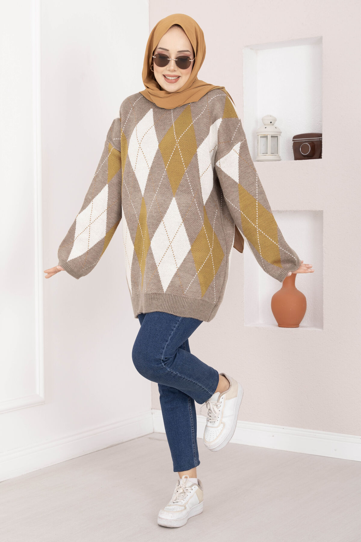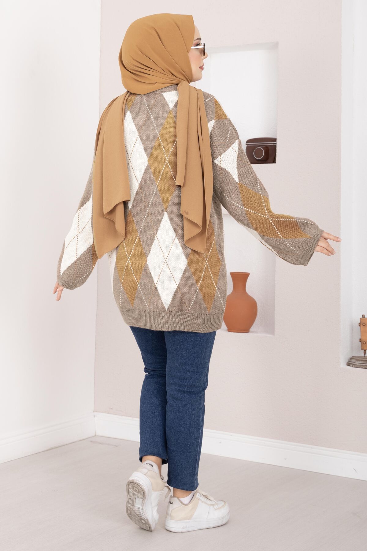 Modern baklava desen dokusuyla öne çıkan bu oversize triko kazak, rahatlığı ve şıklığı bir arada sunan zamansız bir parçadır. Yumuşak dokulu triko kumaşı sayesinde gün boyu konfor sağlarken, oversize kesimi ile modern ve salaş bir duruş kazandırır.