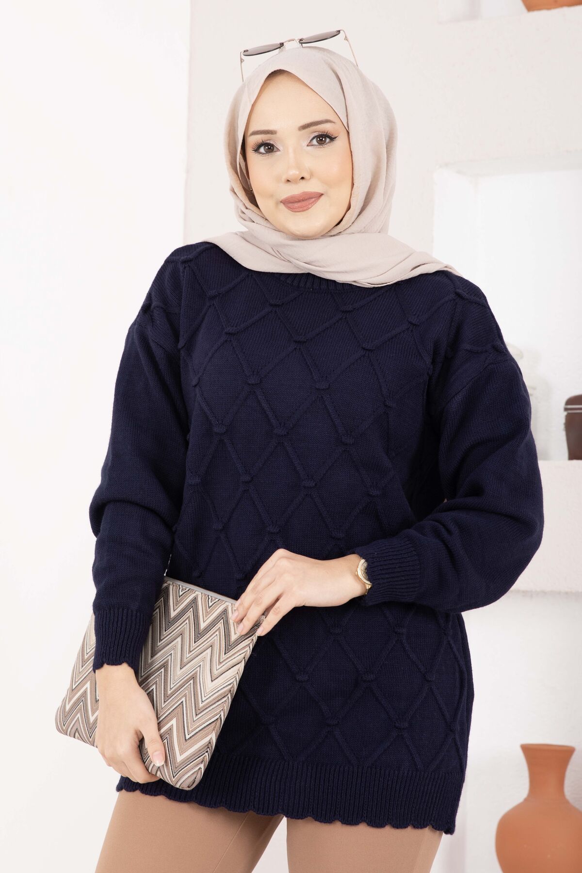 Baklava Desen Ponpon Detaylı Triko Kazak Lacivert Yorumları
