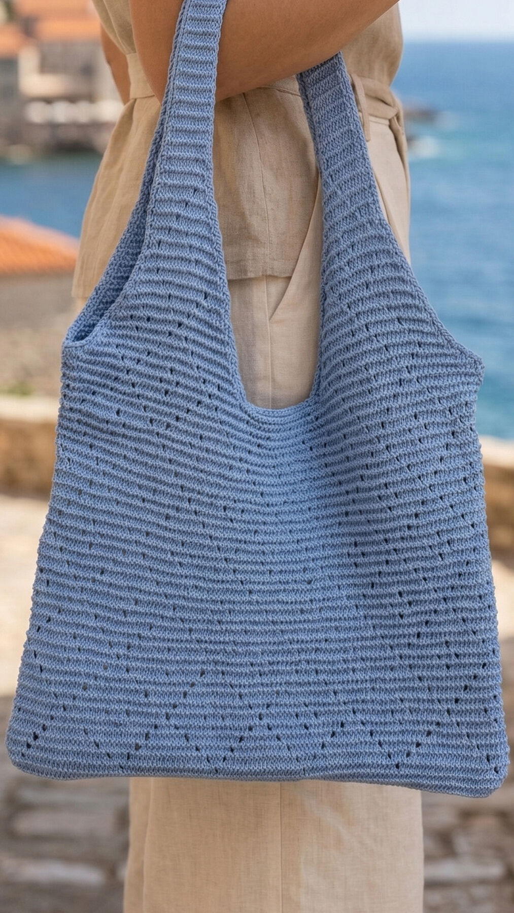 Hafif ve şık tasarımıyla yaz kombinlerinizin vazgeçilmezi olacak bu örme çanta, hem plaj hem de günlük kullanım için idealdir. Baklava desenleriyle modern ve şık bir hava katar. Dayanıklı ve esnek yapısıyla eşyalarınızı rahatlıkla taşımanızı sağlar.