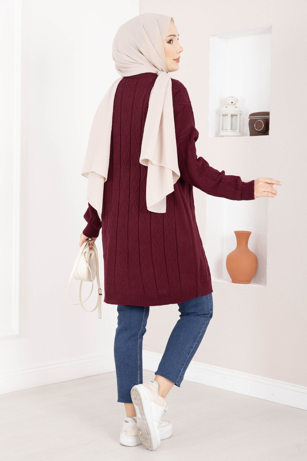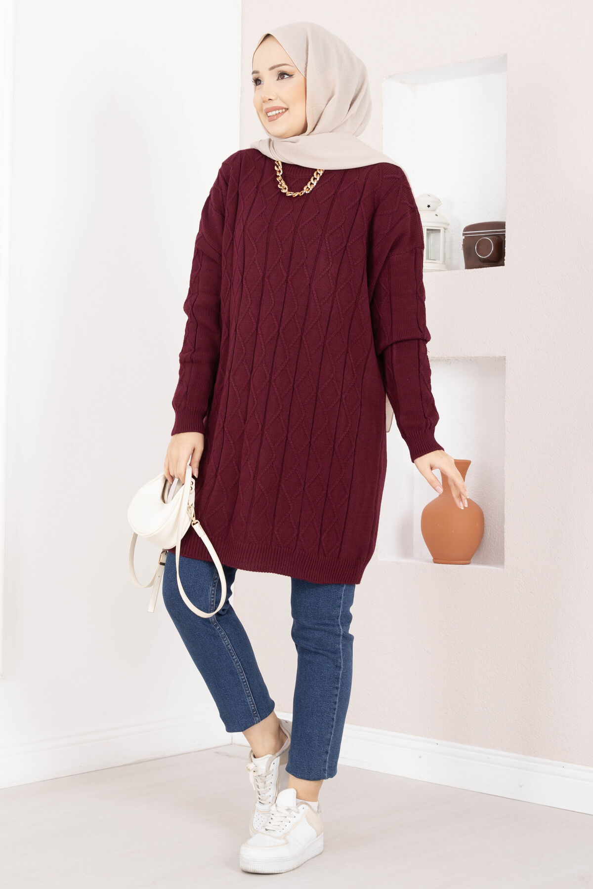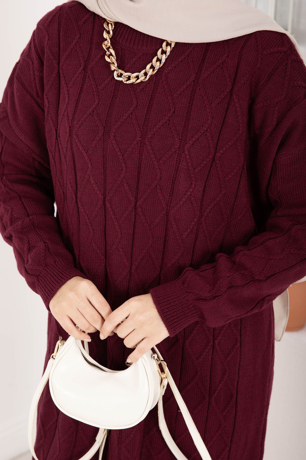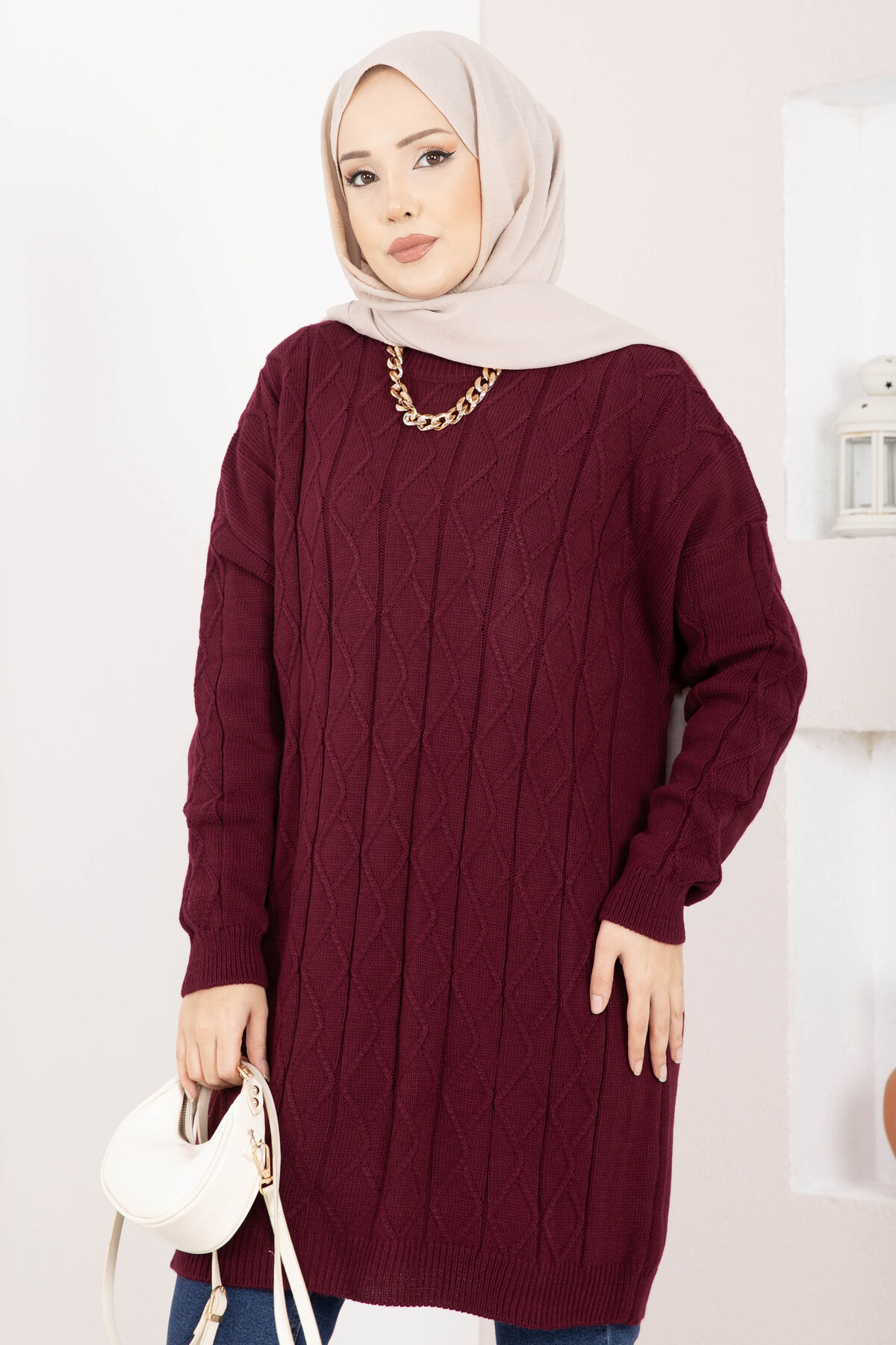 Baklava Örgü Triko Tunik Bordo