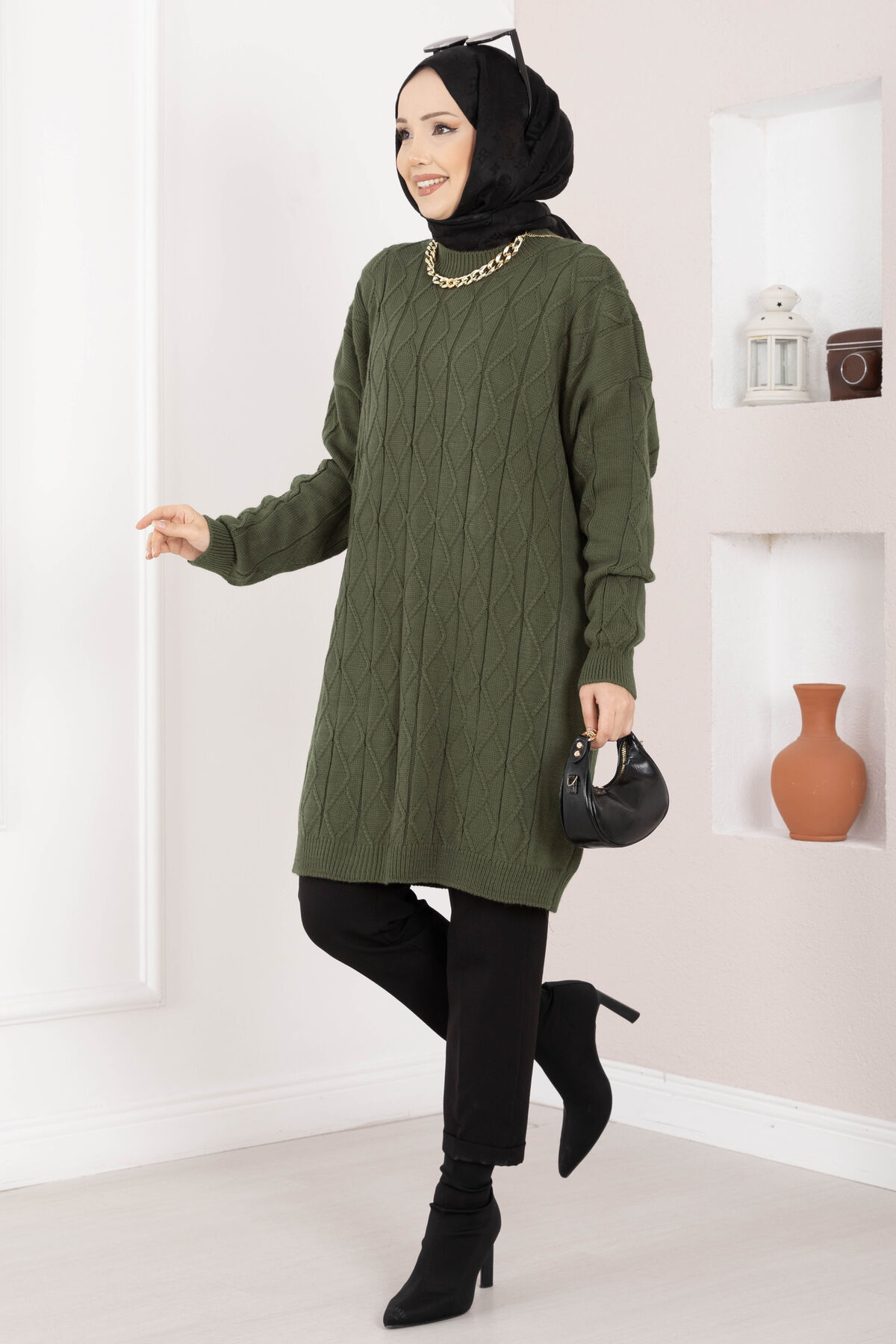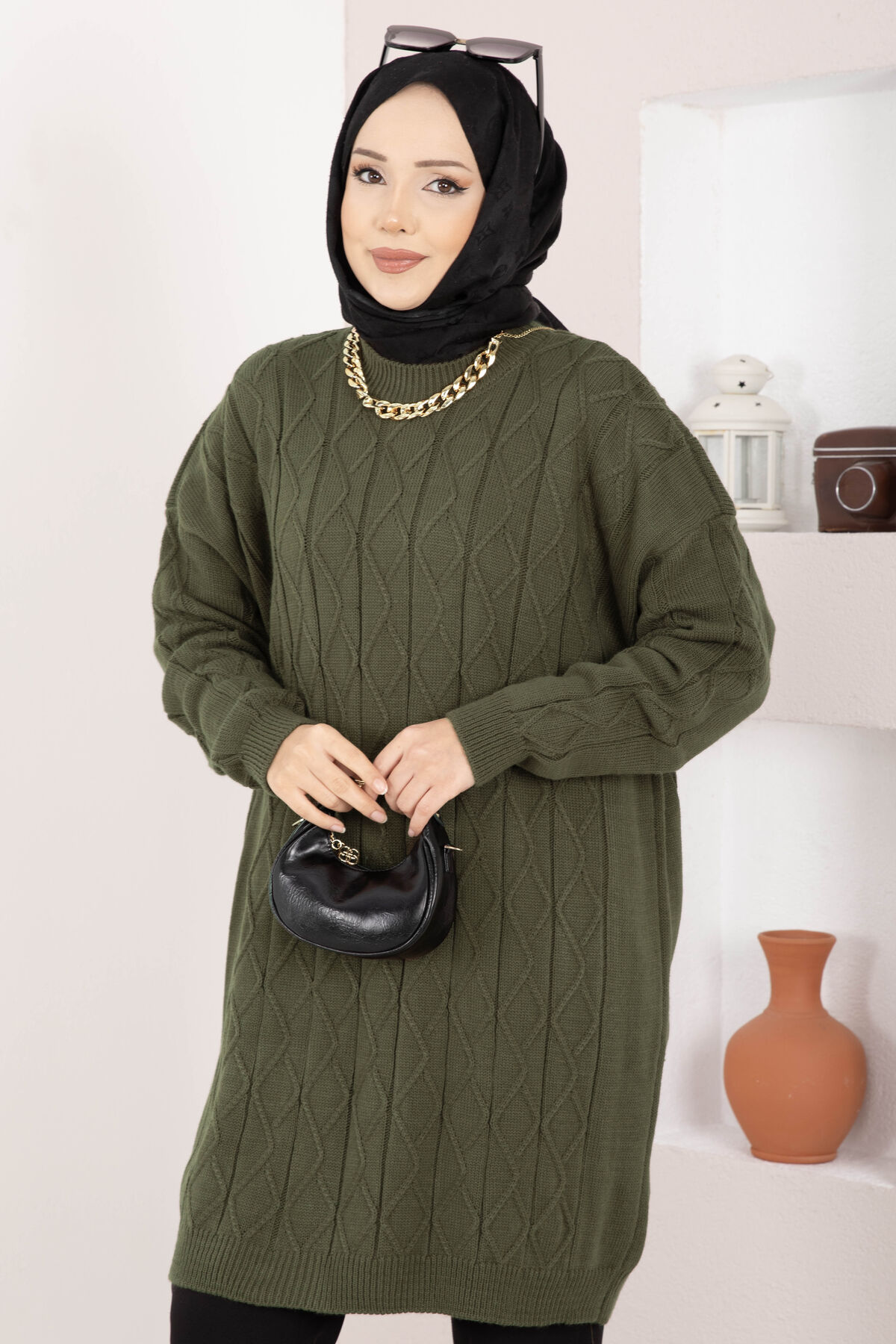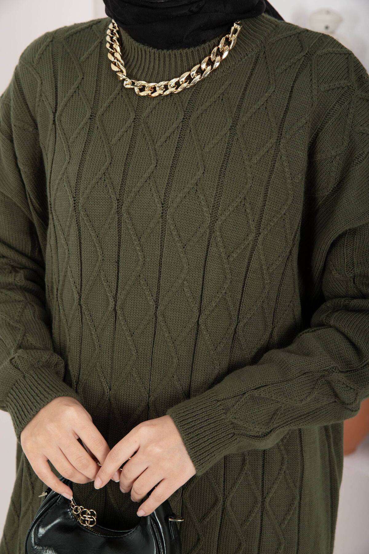 Baklava Örgü Triko Tunik Haki
