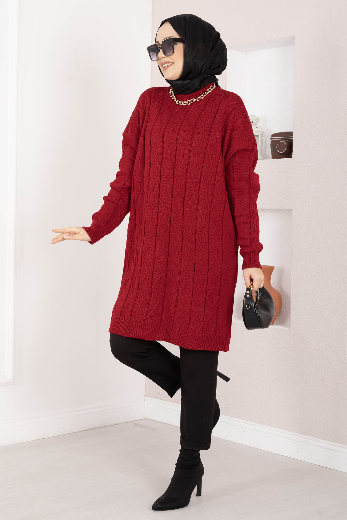 Soğuk havalarda hem sıcak hem de şık bir görünüm sunan Baklava Örgü Triko Tunik, zarif baklava örgü deseniyle klasik ve modern tarzı bir araya getirir. Yumuşak ve kalın dokulu triko kumaşı sayesinde kış aylarında sıcak tutarken, rahat kalıbı ile gün boyu konfor sağlar. Günlük kombinlerden ofis stiline kadar geniş bir kullanım alanına sahiptir.