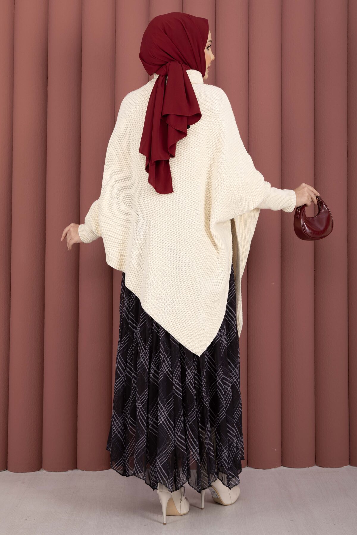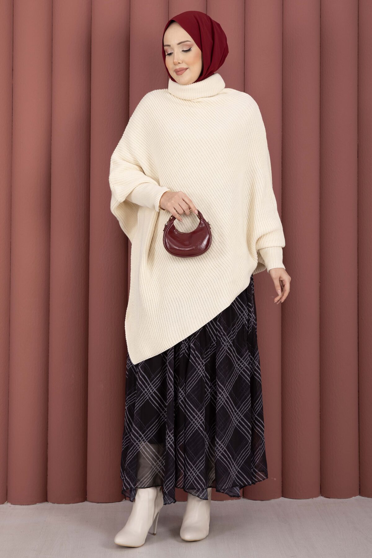 Balıkçı Yaka Asimetrik Triko Kazak Ekru