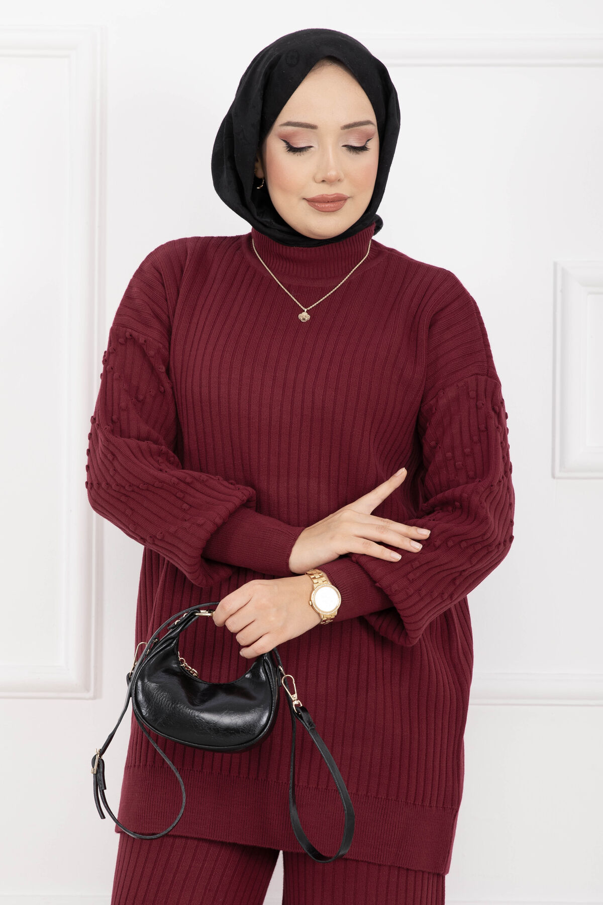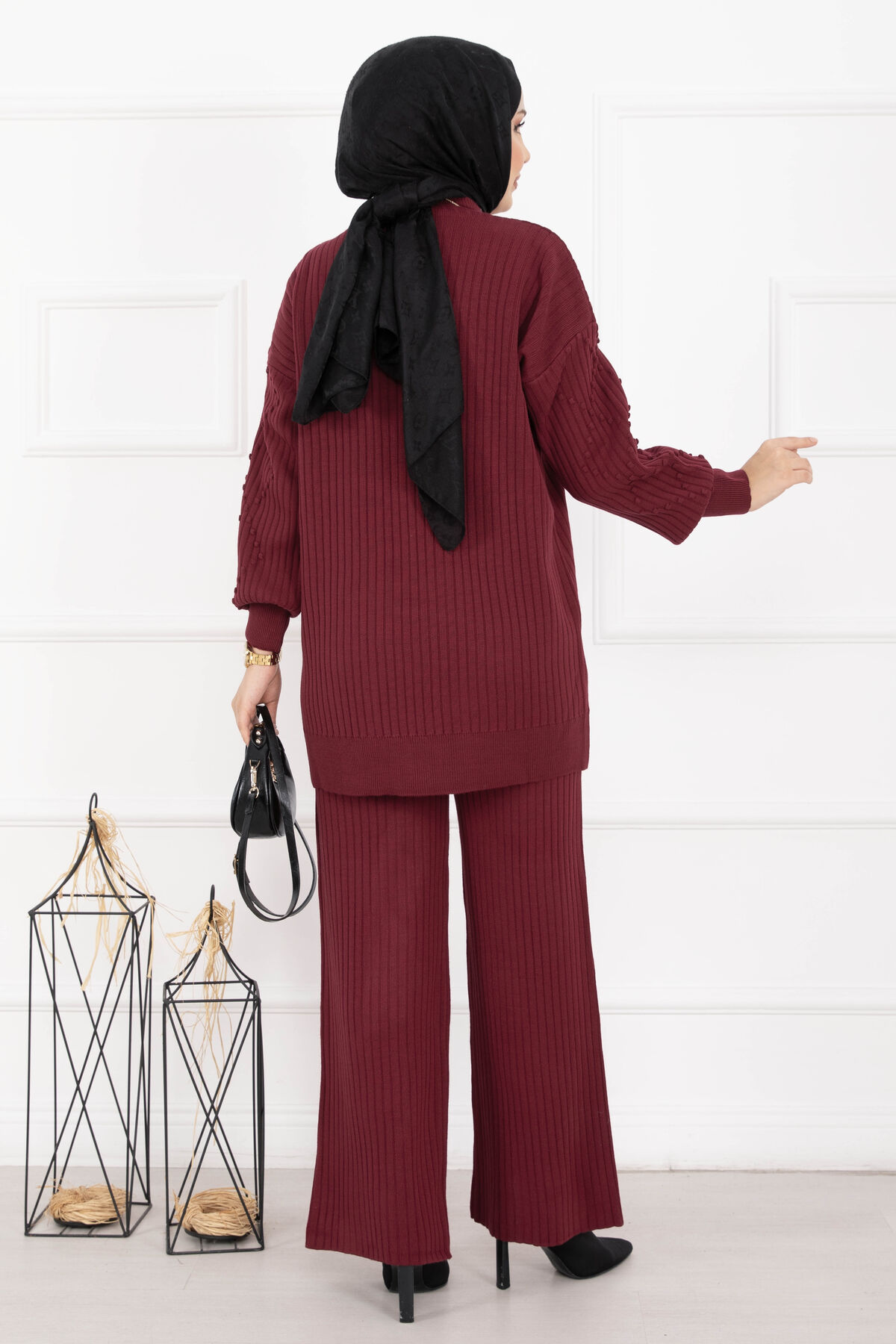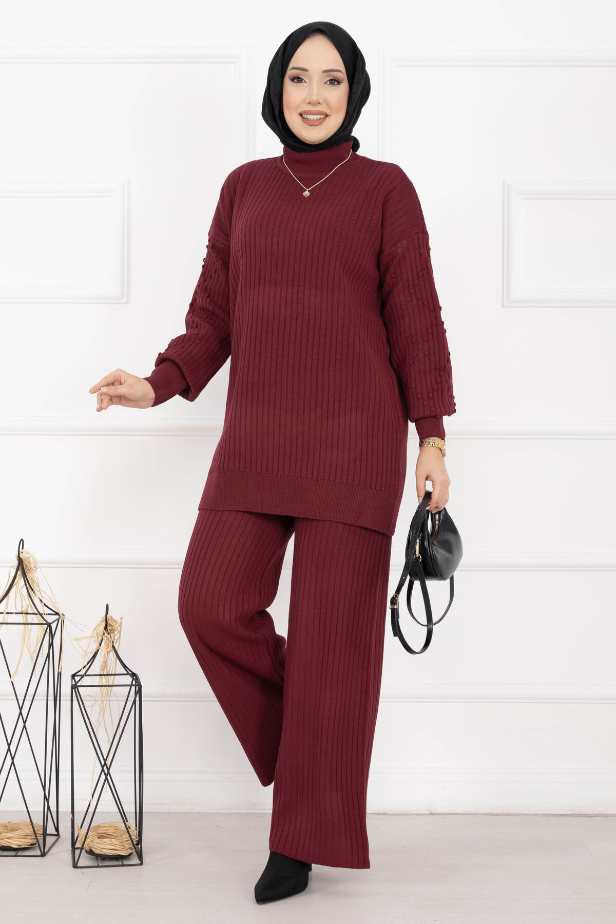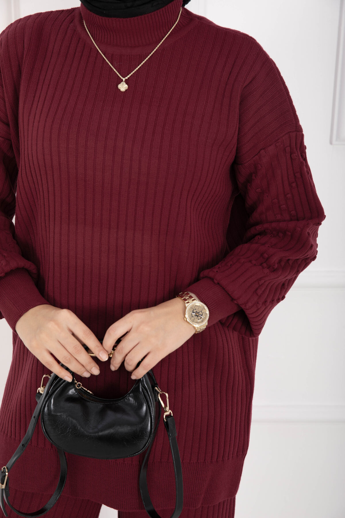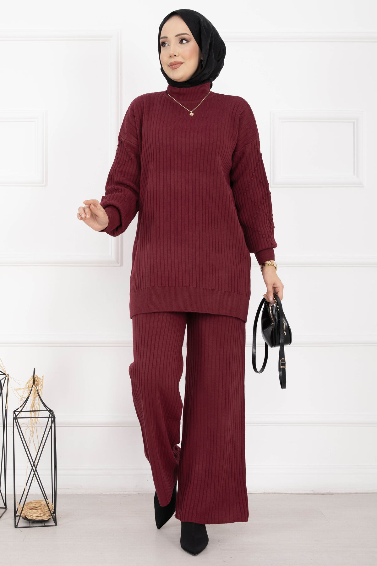 Balıkçı Yaka Fitilli Triko İkili Takım Bordo