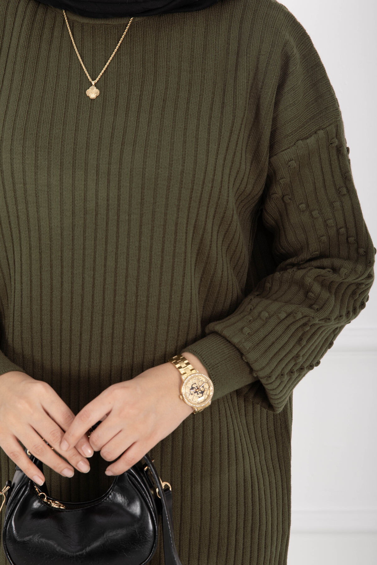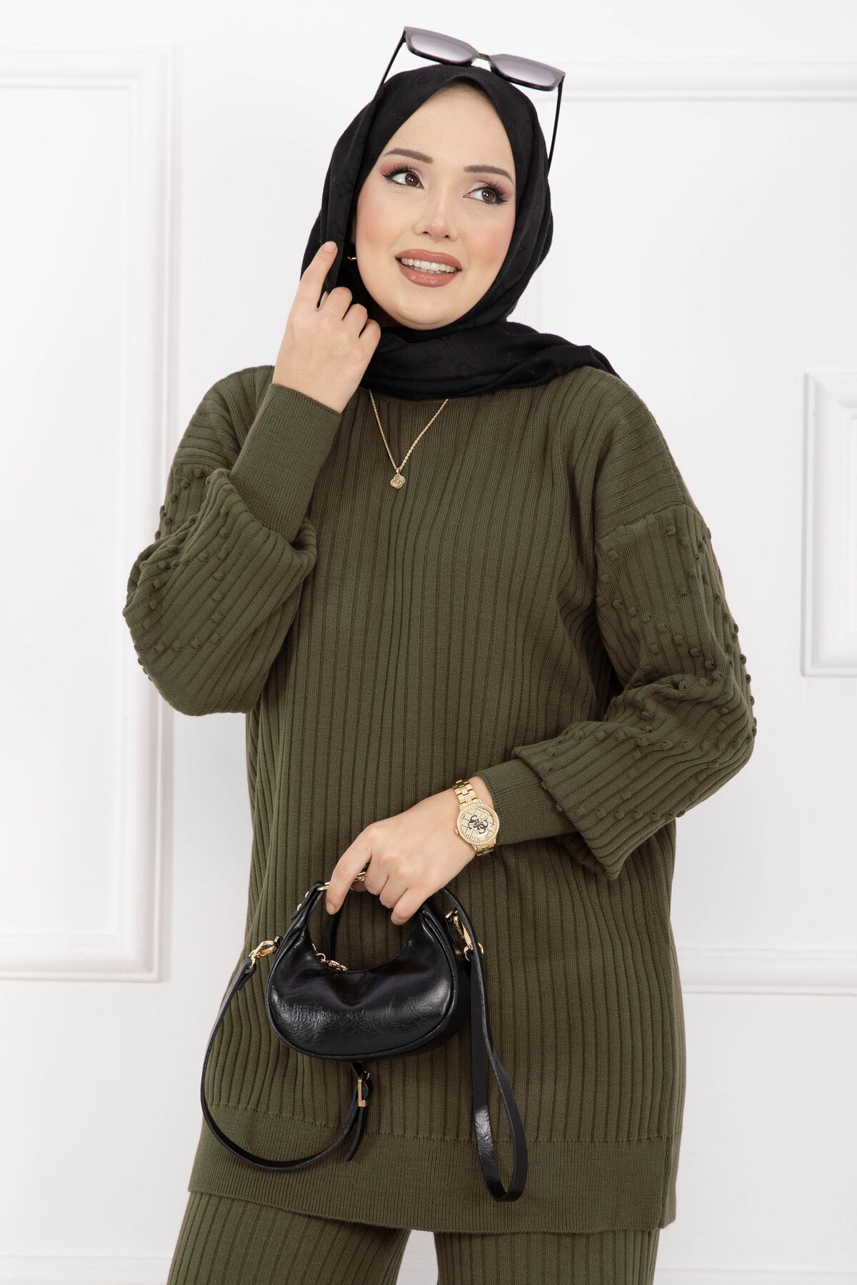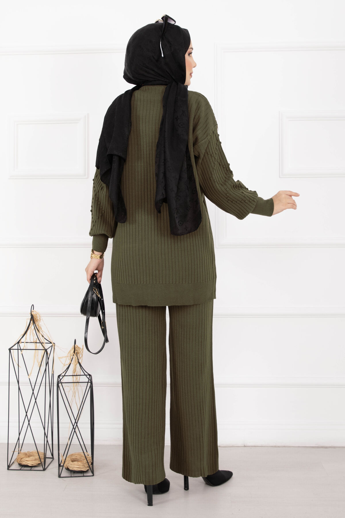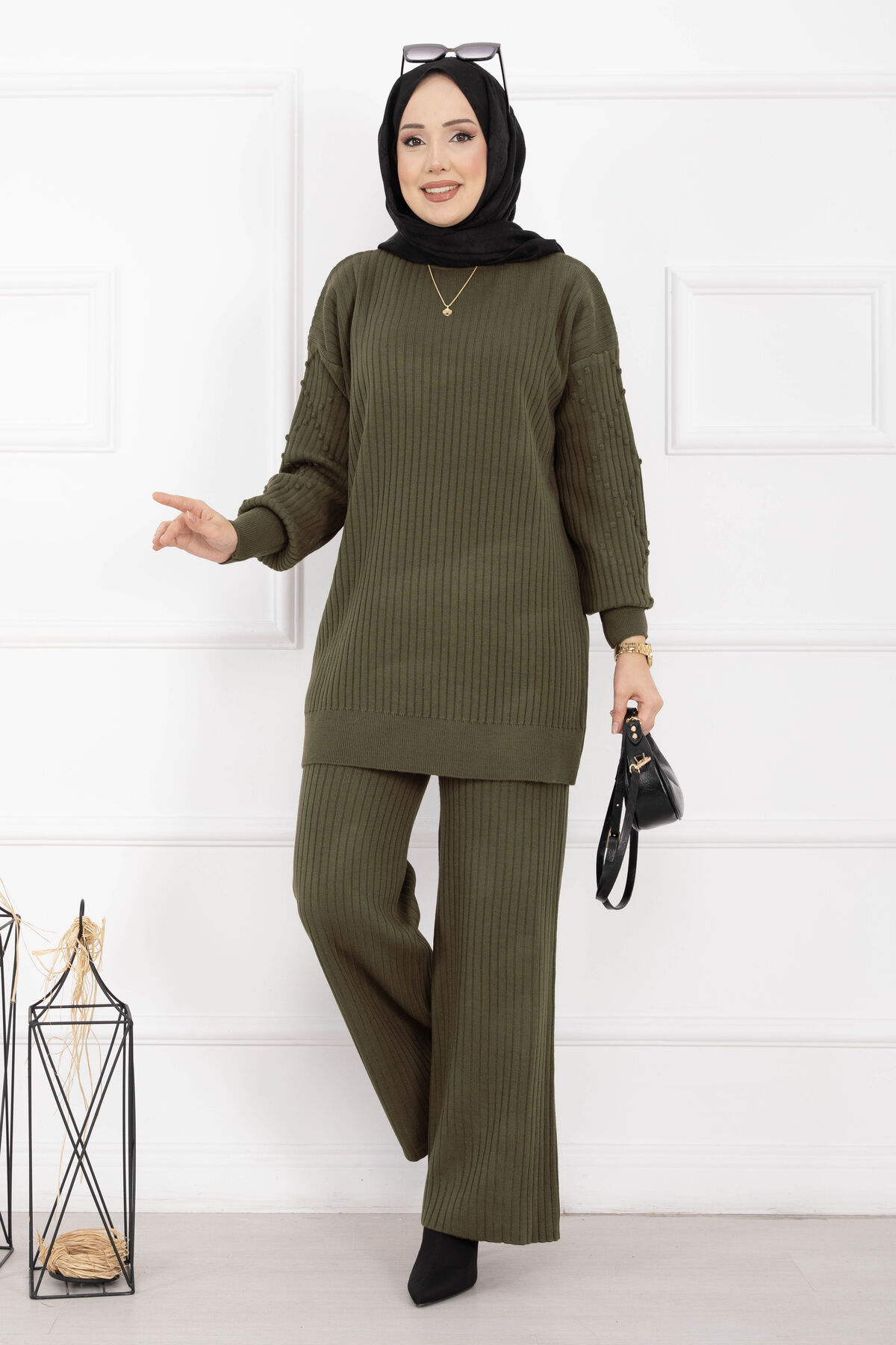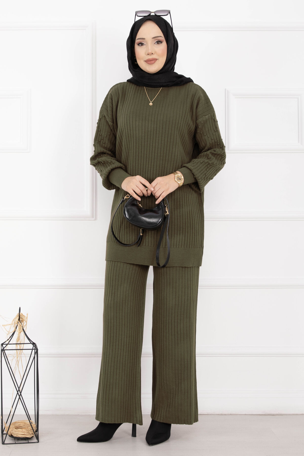 Balıkçı Yaka Fitilli Triko İkili Takım Haki