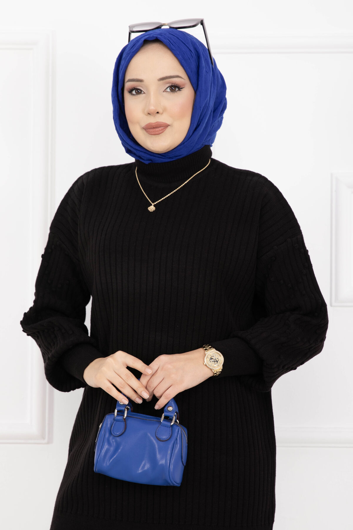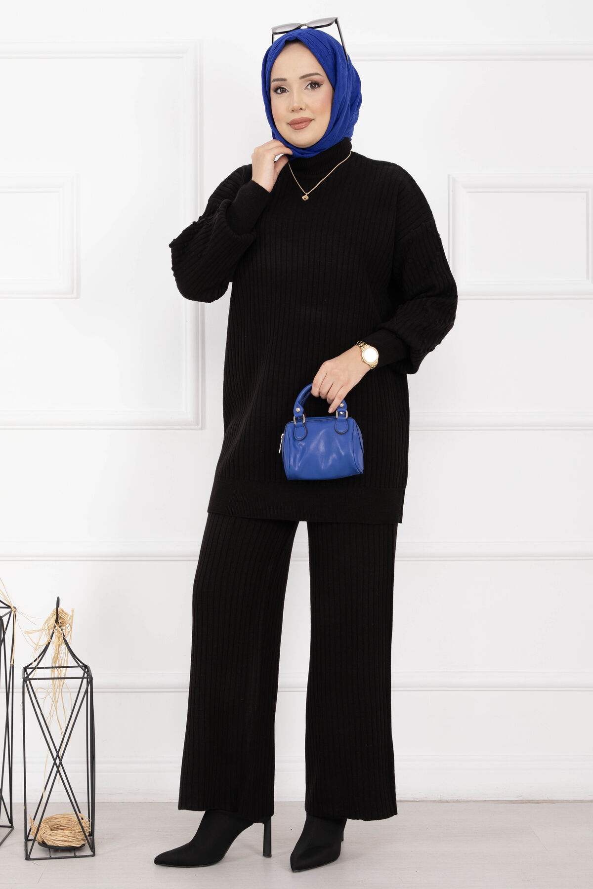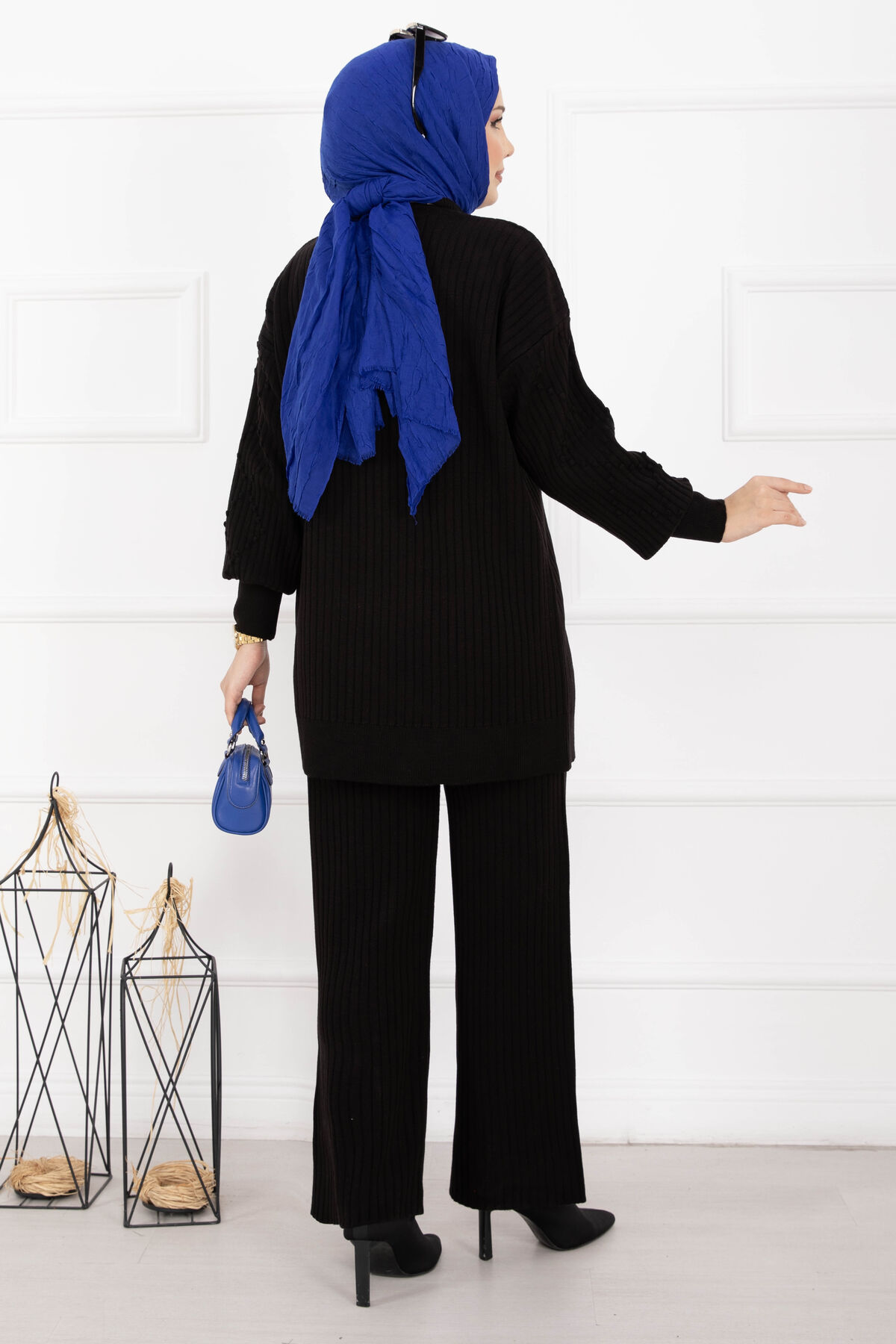 Balıkçı Yaka Fitilli Triko İkili Takım Siyah
