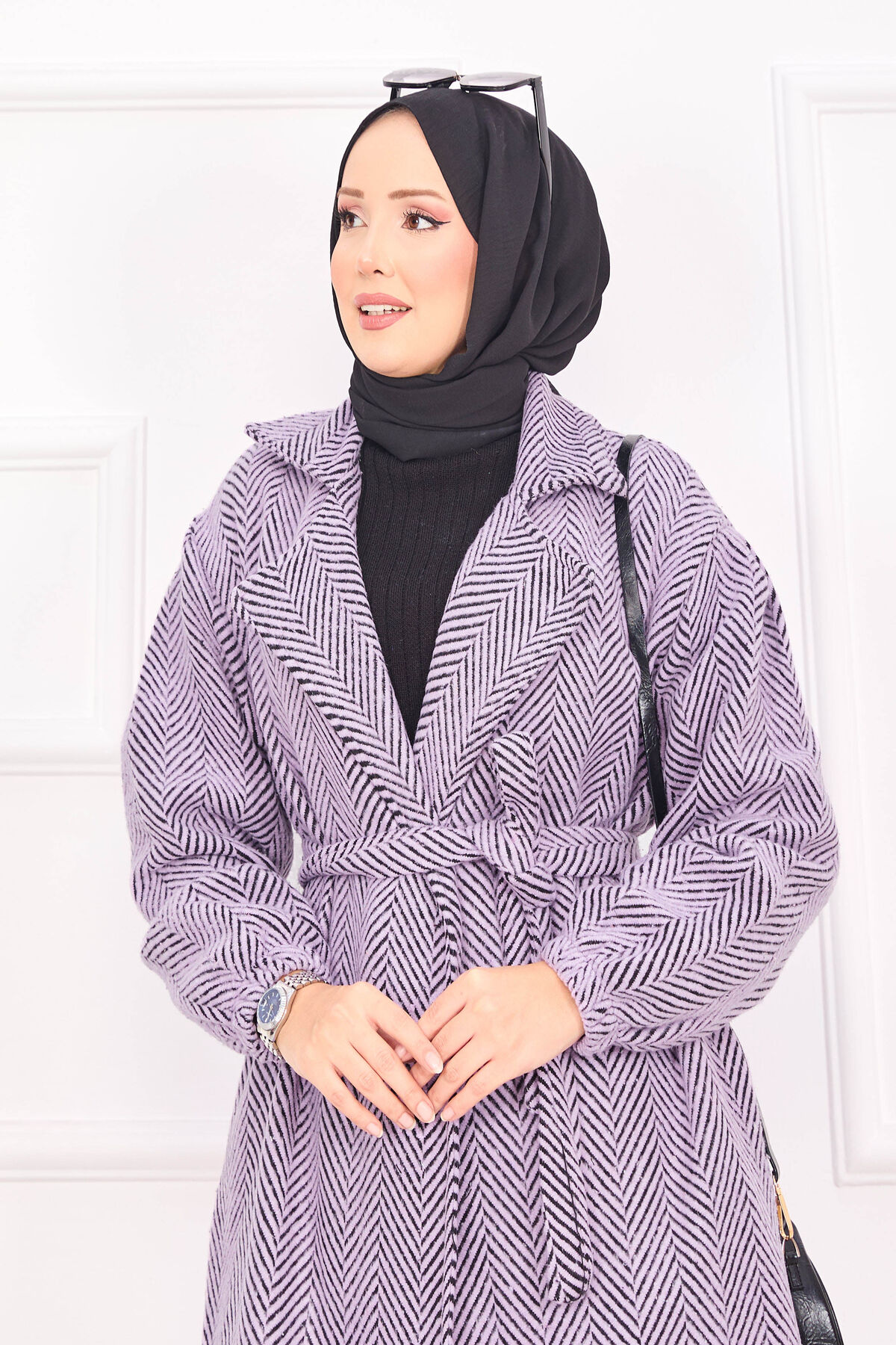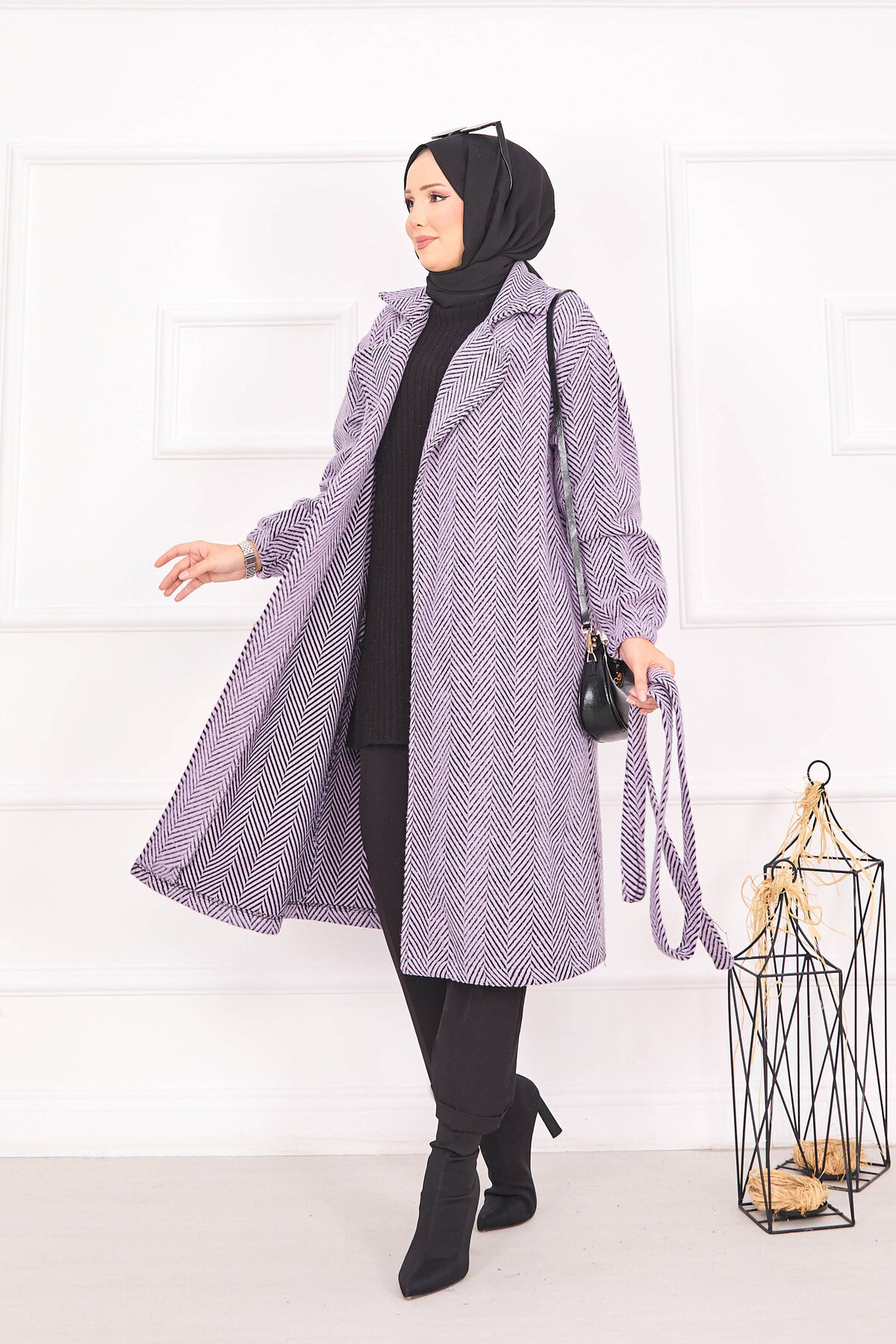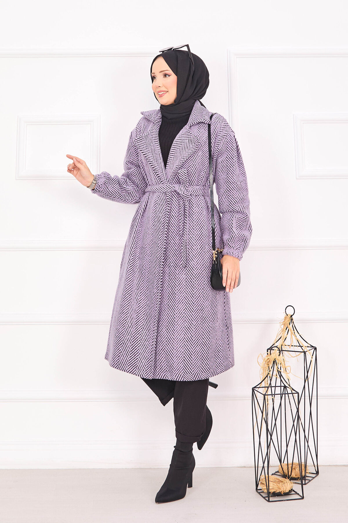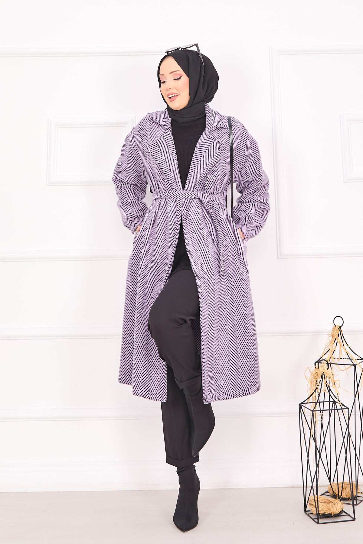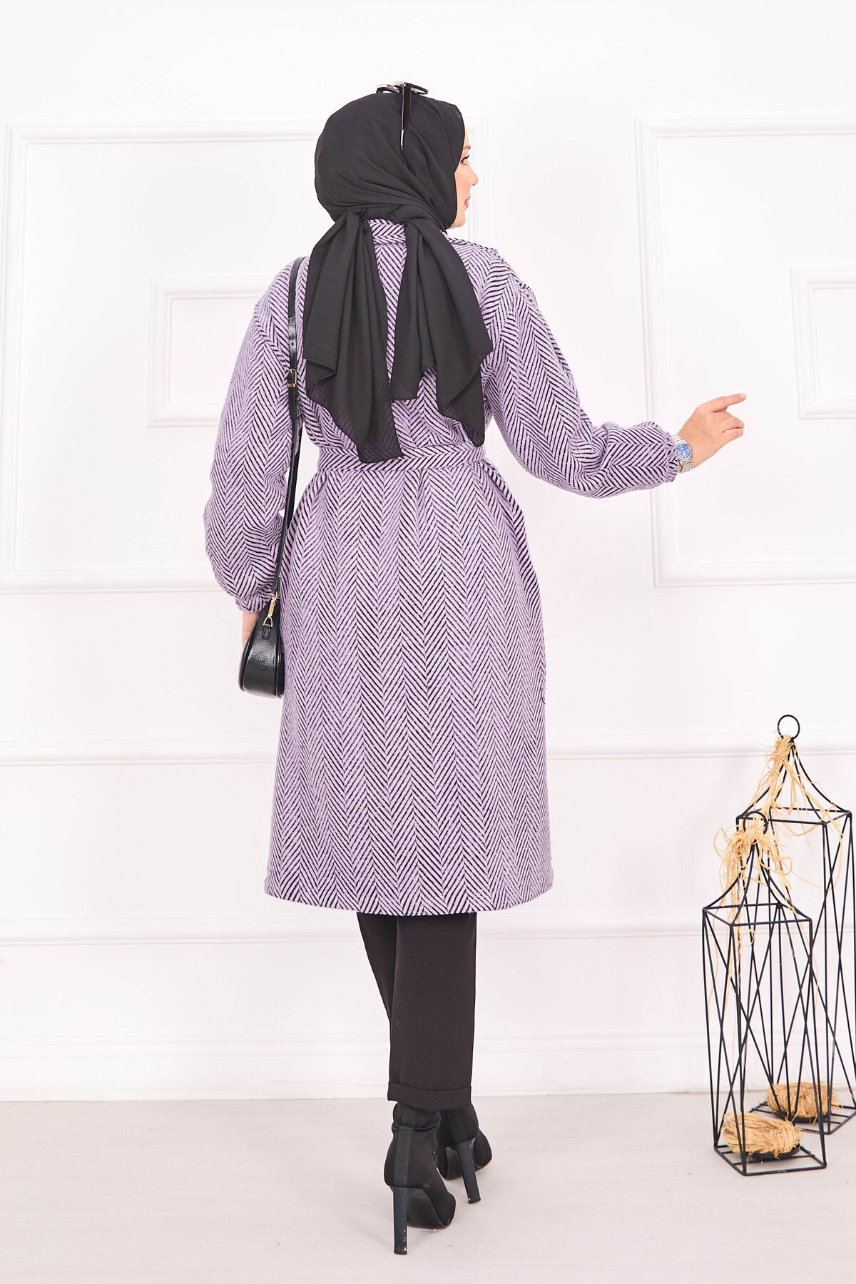 Balıksırtı Desenli Kaban Lila