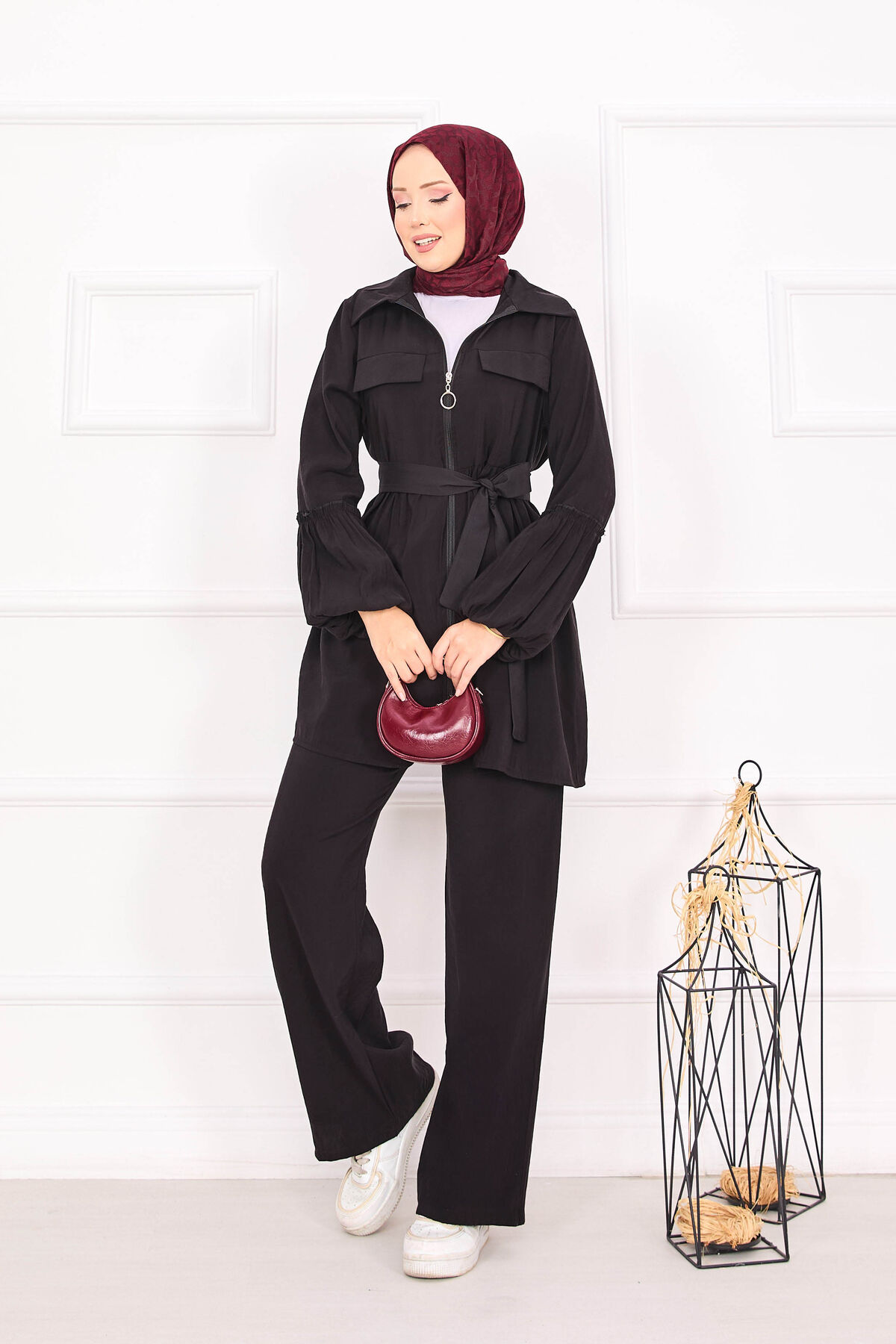 Balon Kol Fermuarlı Tesettür Takım Siyah Yorumları