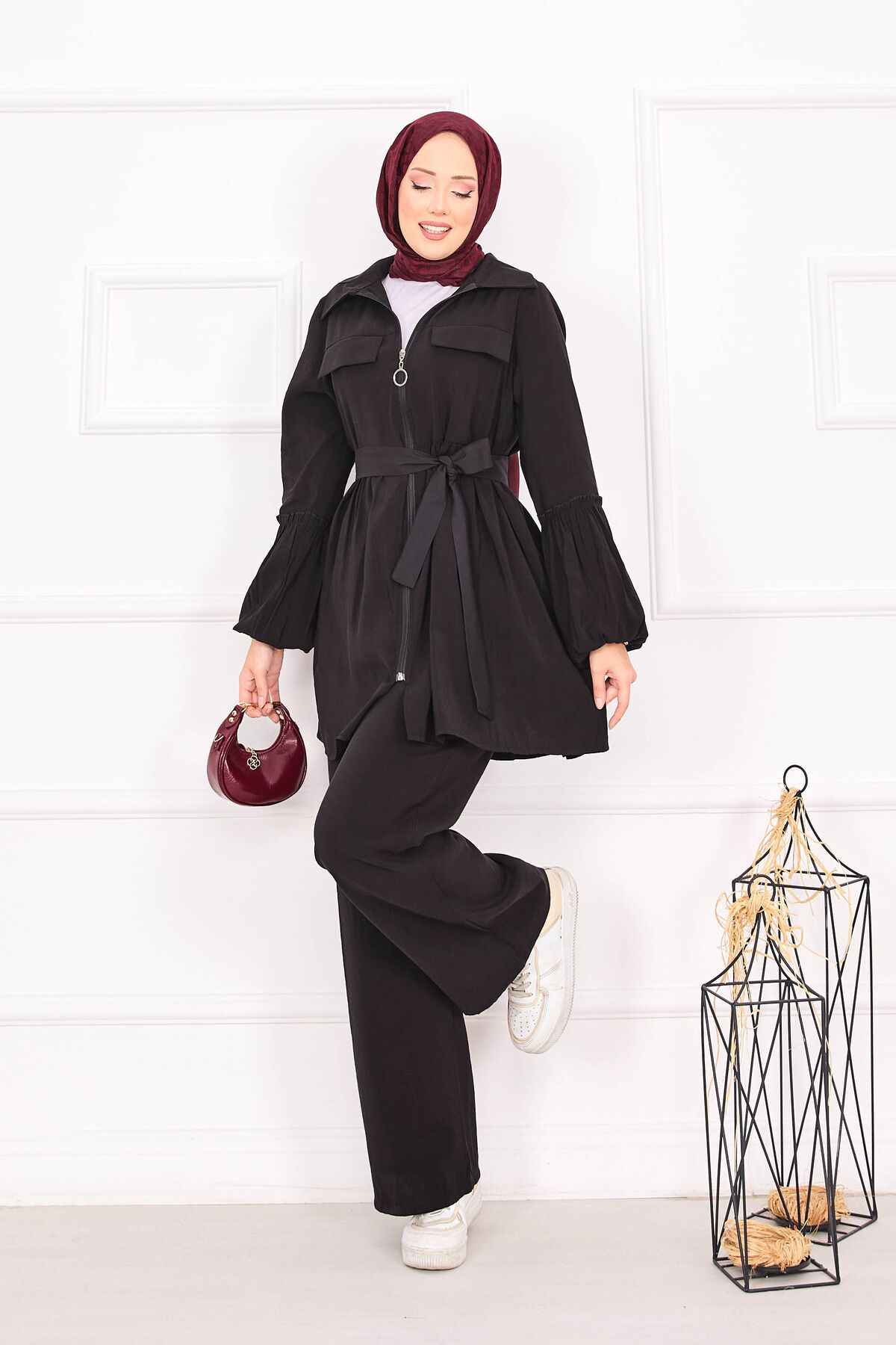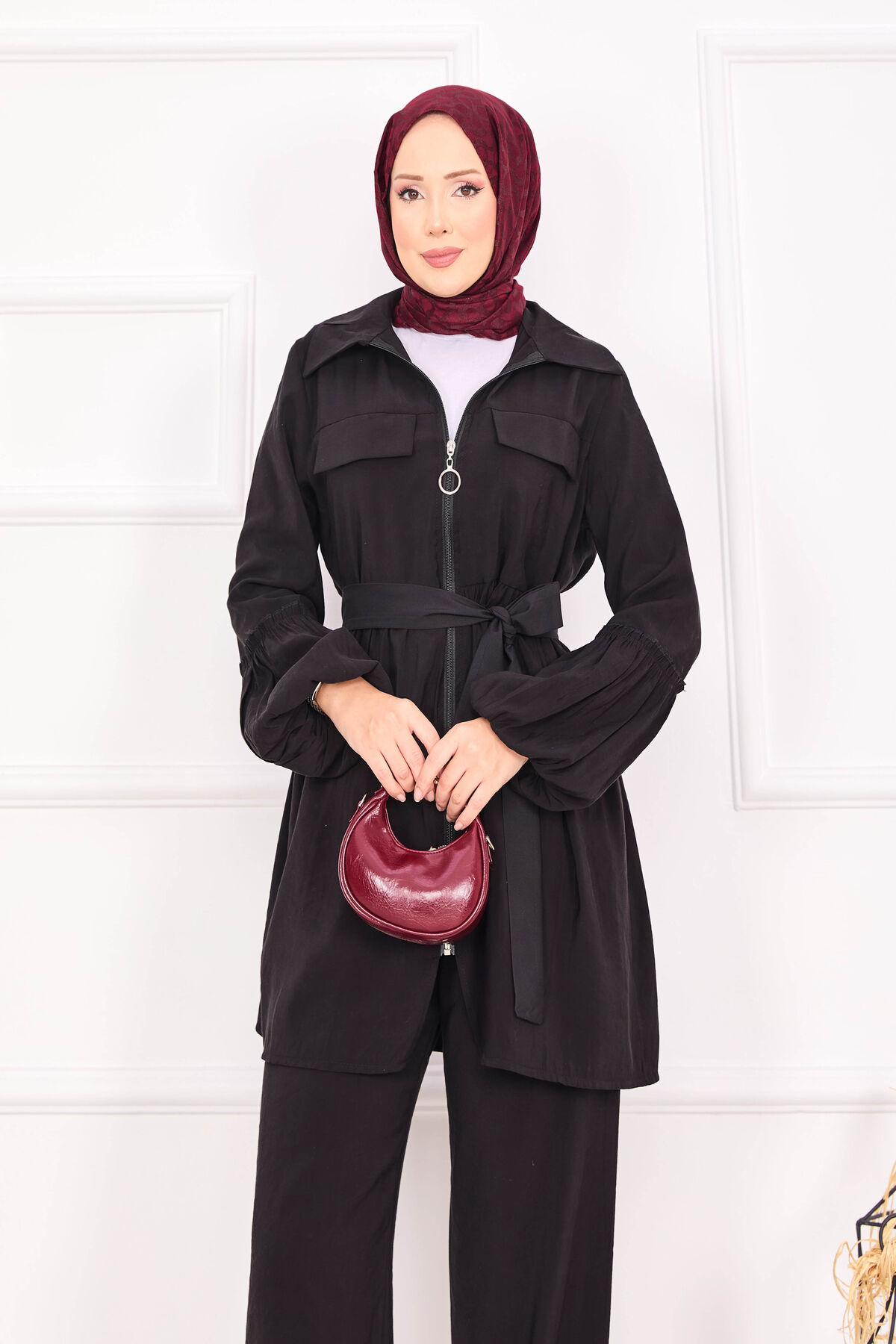 Balon Kol Fermuarlı Tesettür Takım Siyah