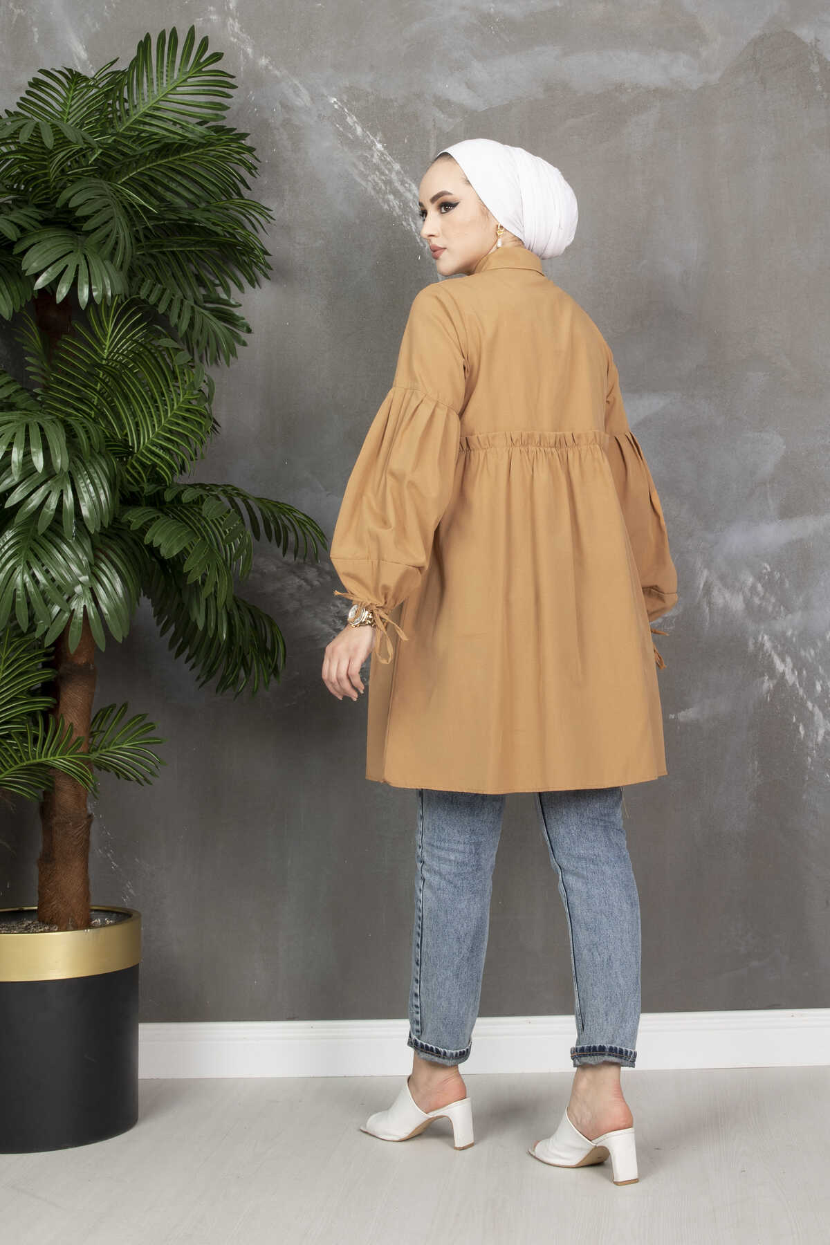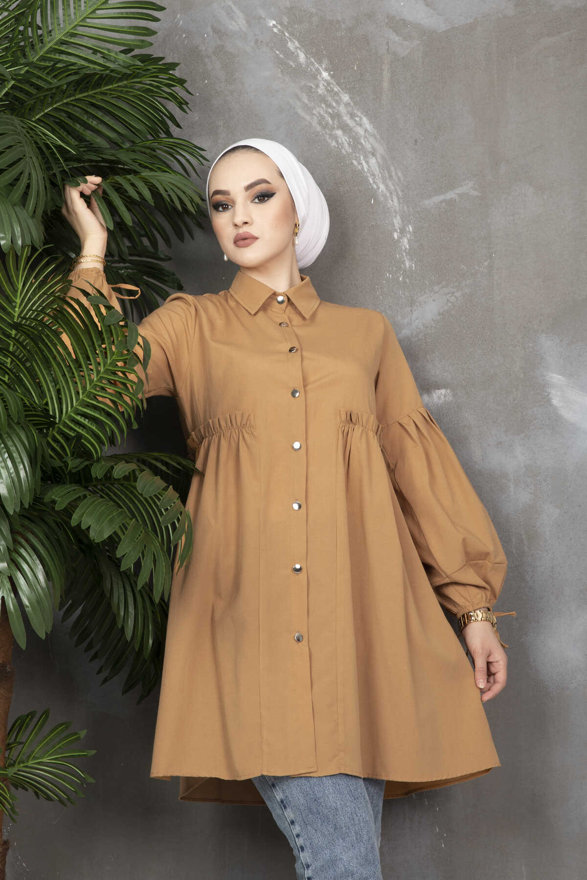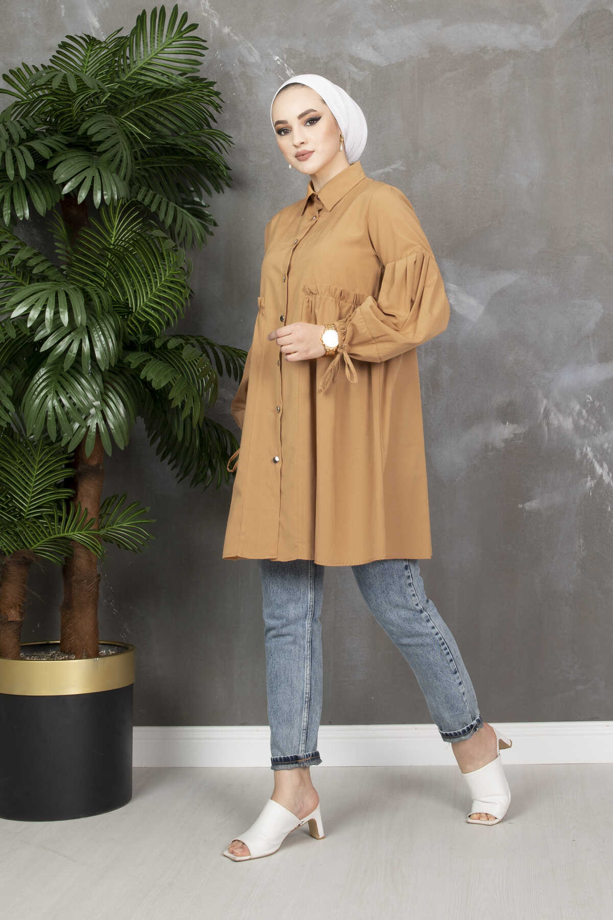 Balon Kol Poplin Tesettür Gömlek Camel Yorumları