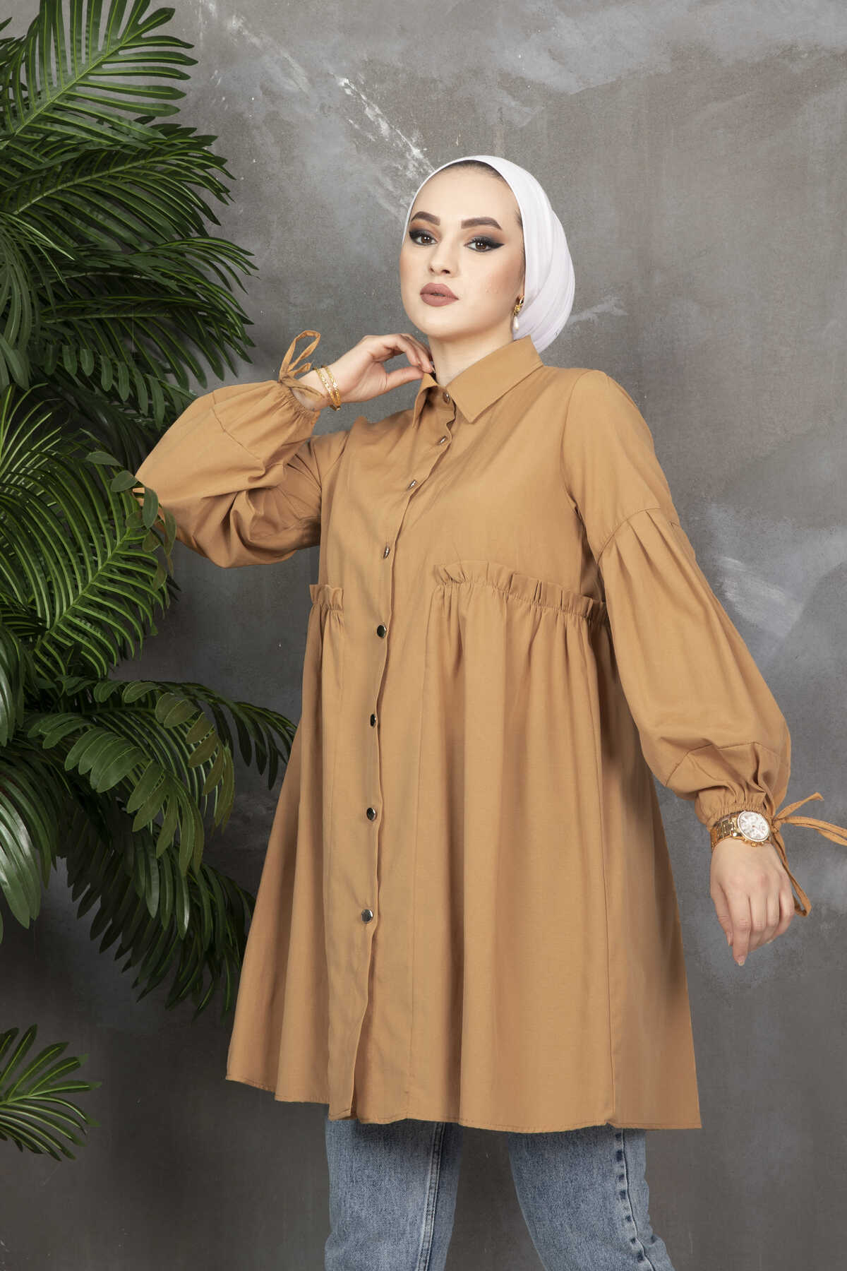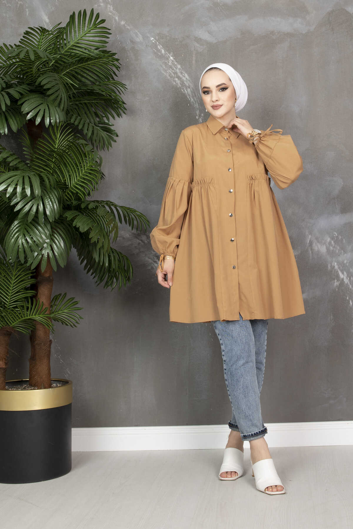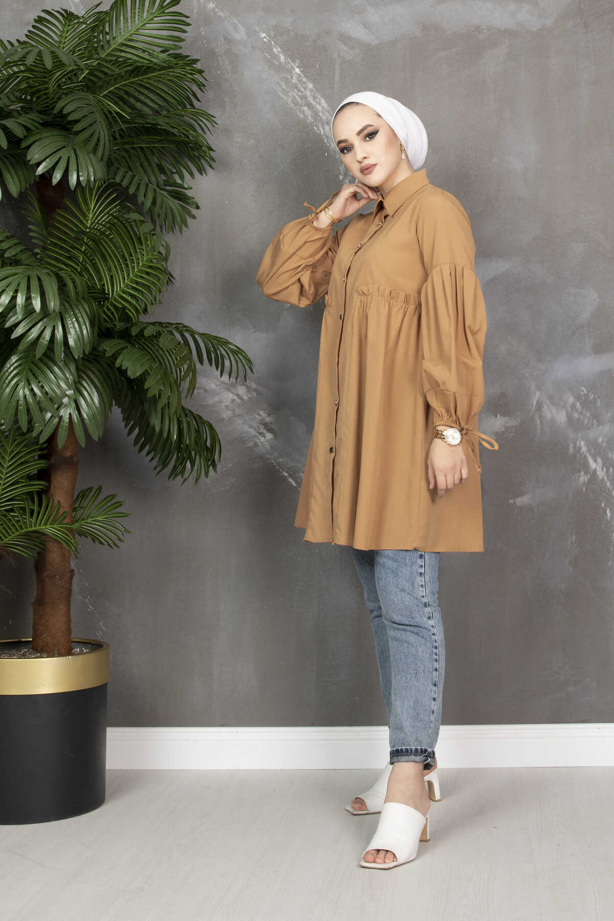 Balon Kol Poplin Tesettür Gömlek Camel Yorumları