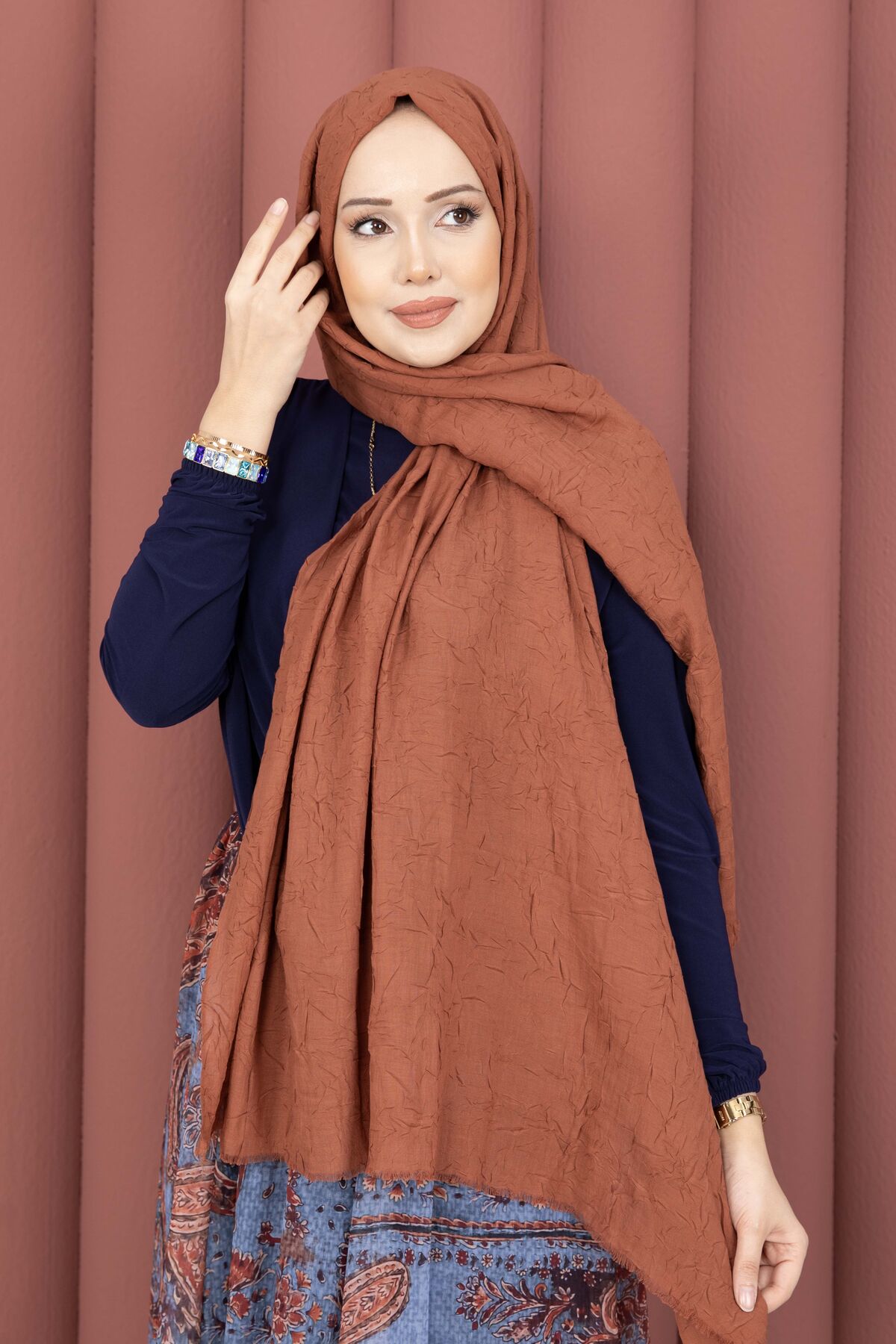 Esnek yapısı sayesinde kırışmaya dayanıklı ve nefes alıcı özelliğe sahiptir. Ağırlık yapmayan kumaş özelliği ile sık ve uzun süreli kullanıma uygundur. Kırışma ve başta kayma yapmaz. Özel günlerinizde, günlük hayatta ve her mevsimde, geniş renk çeşidiyle rahatlıkla kullanacaksınız.