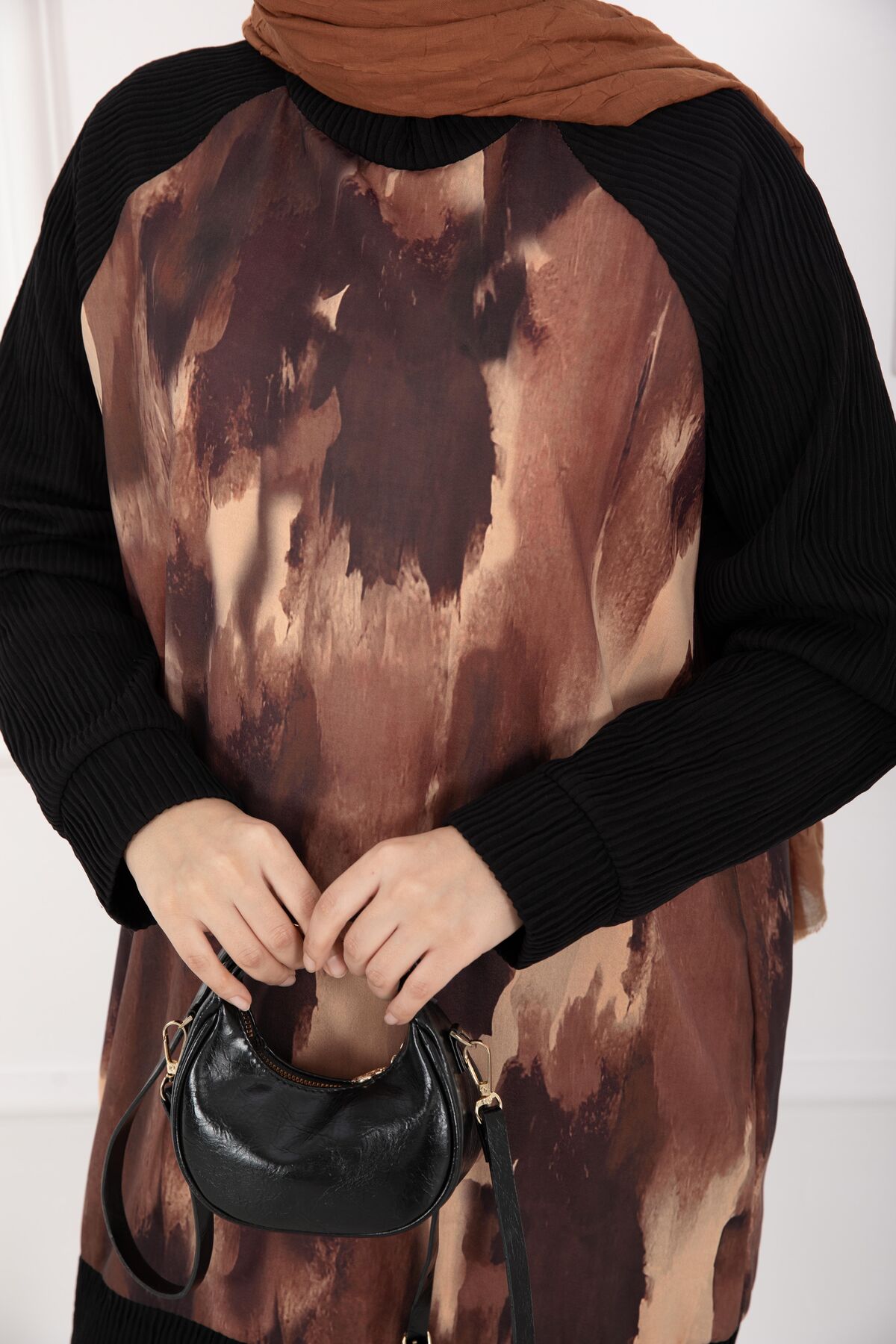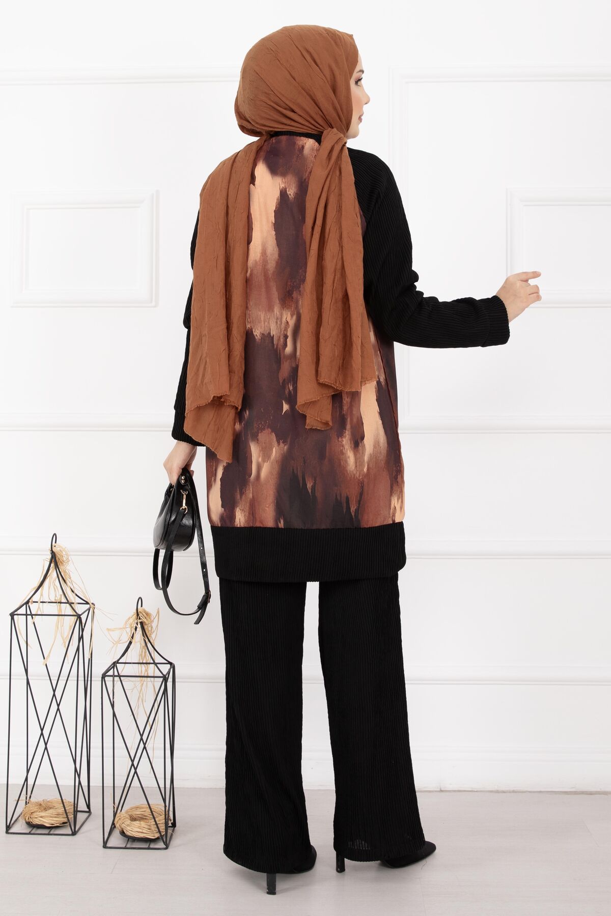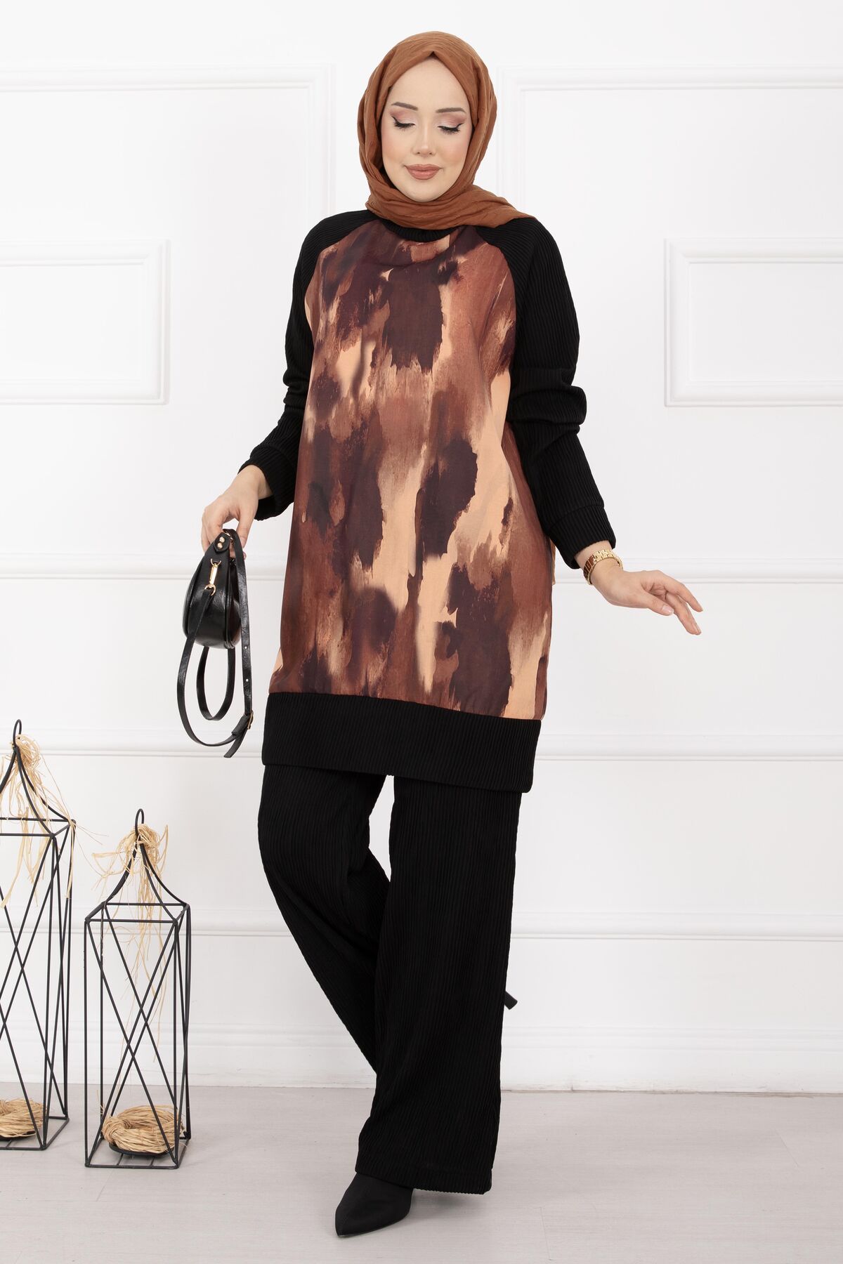 Batik Desen Ribanalı Tesettür İkili Takım Kiremit