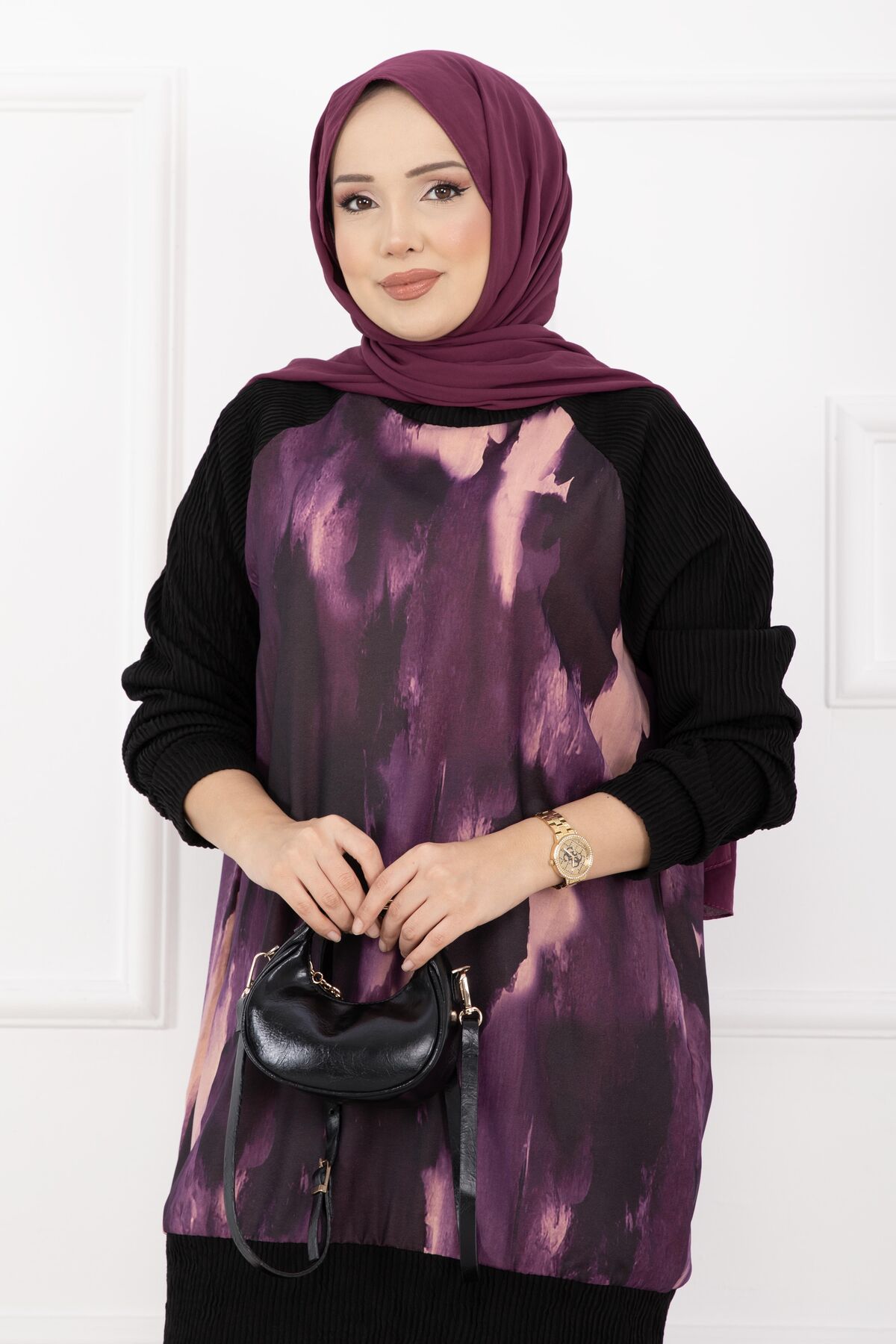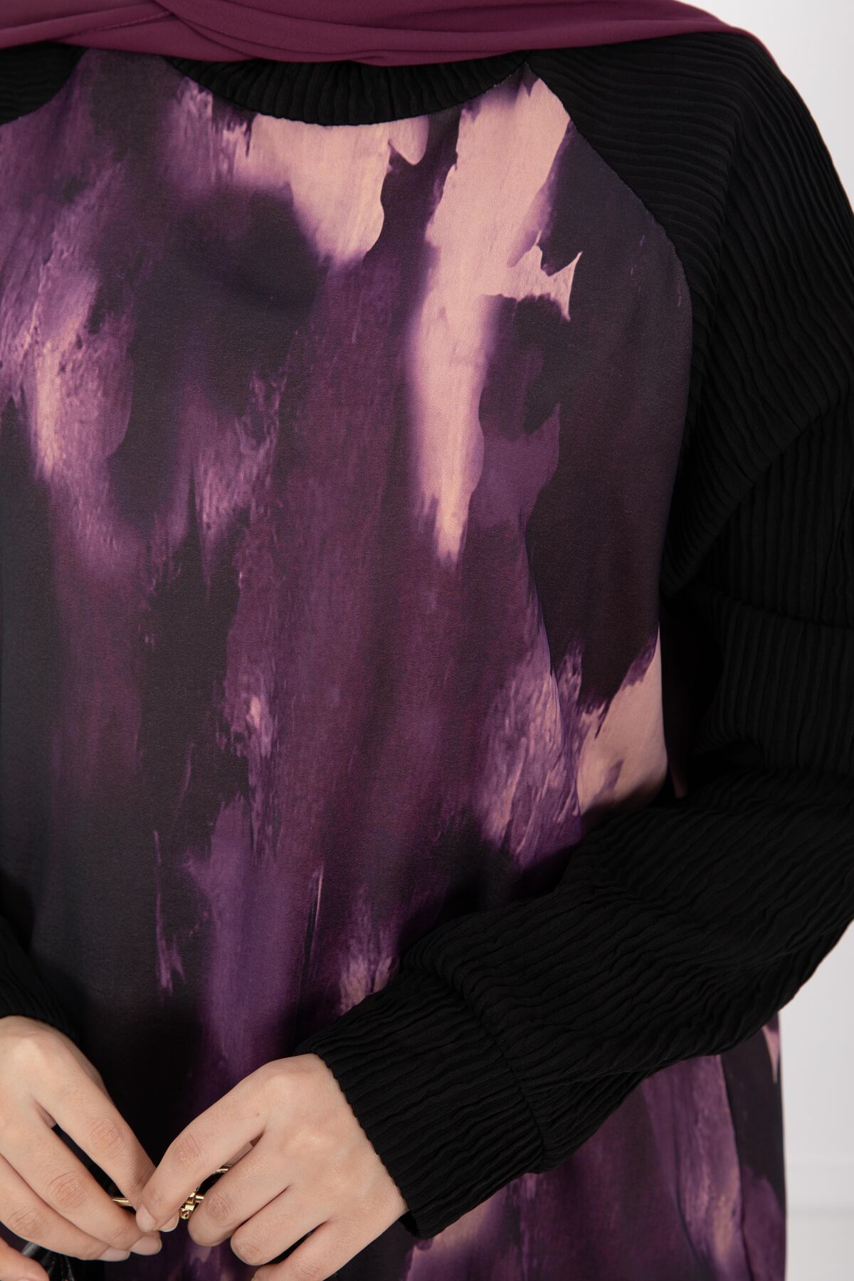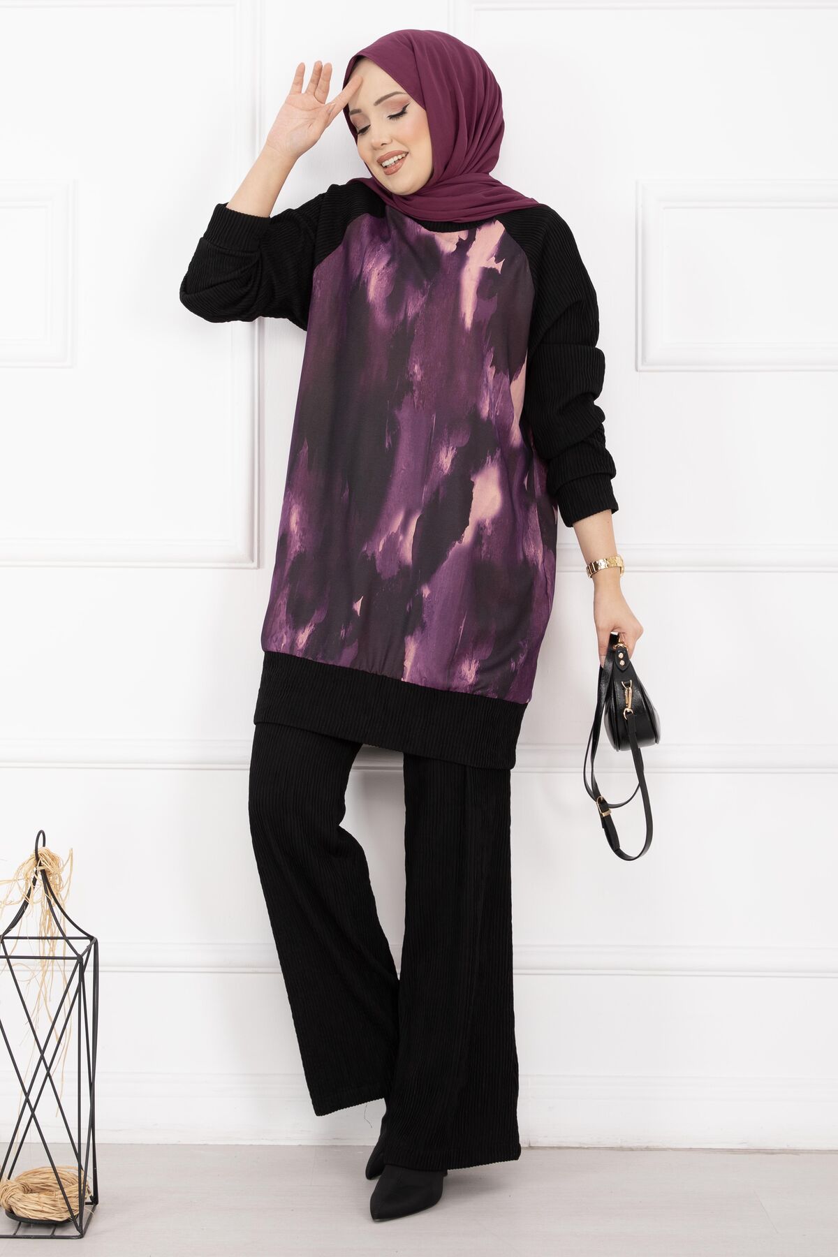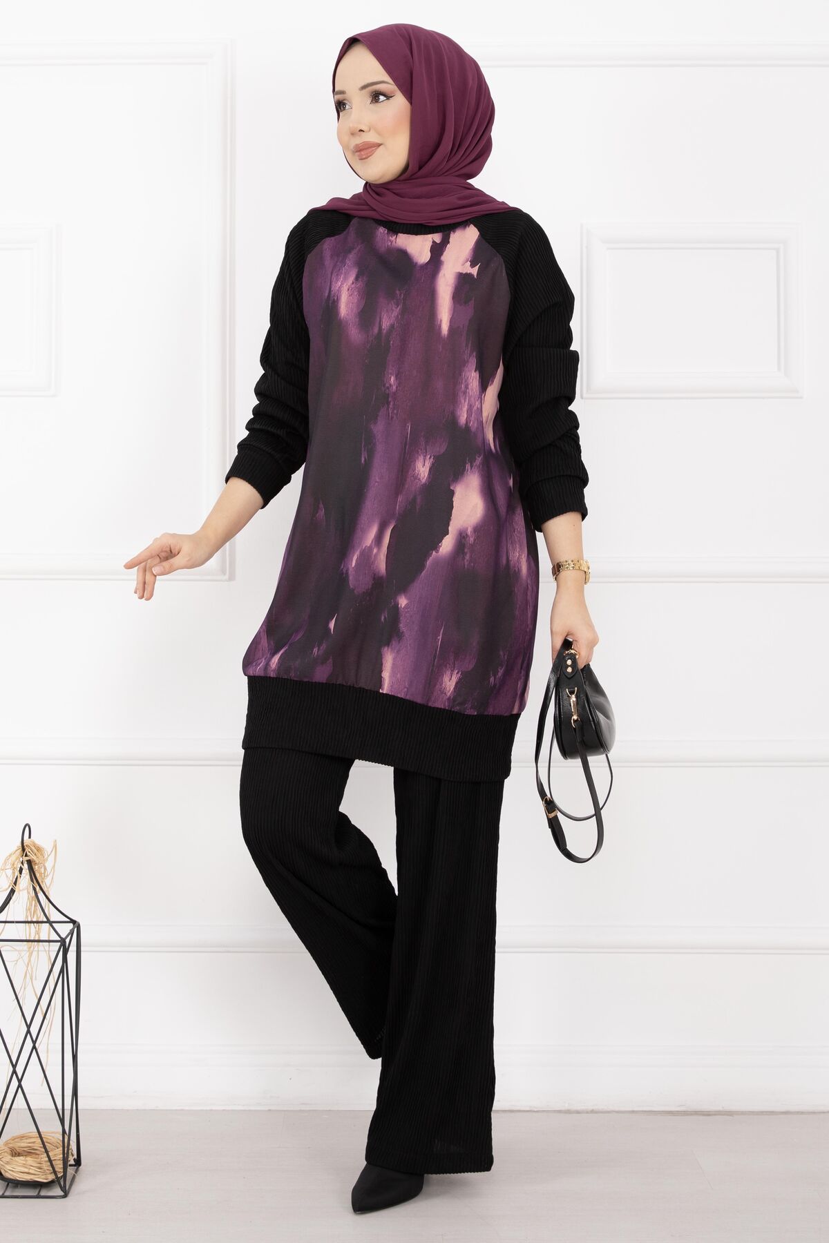 Batik Desen Ribanalı Tesettür İkili Takım Mor