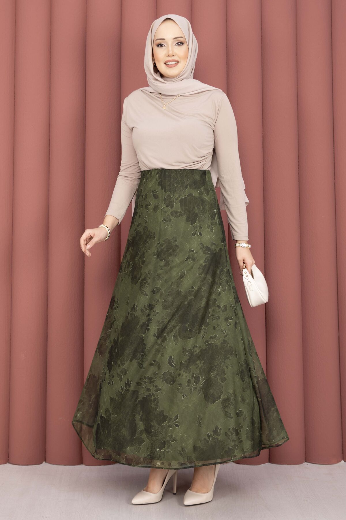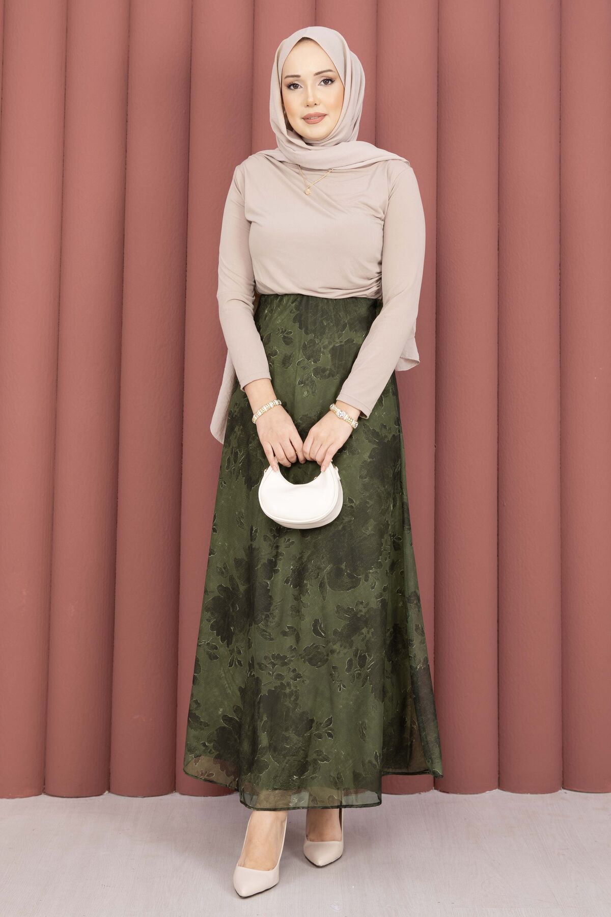Hafif ve akışkan tül dokusuyla öne çıkan Batik Desen Tül Etek, desenli yapısıyla kombinlerinize şık ve modern bir dokunuş katar. Dış yüzeyi düz görünümü ve astarlı yapısı sayesinde rahat ve konforlu bir kullanım sağlar.