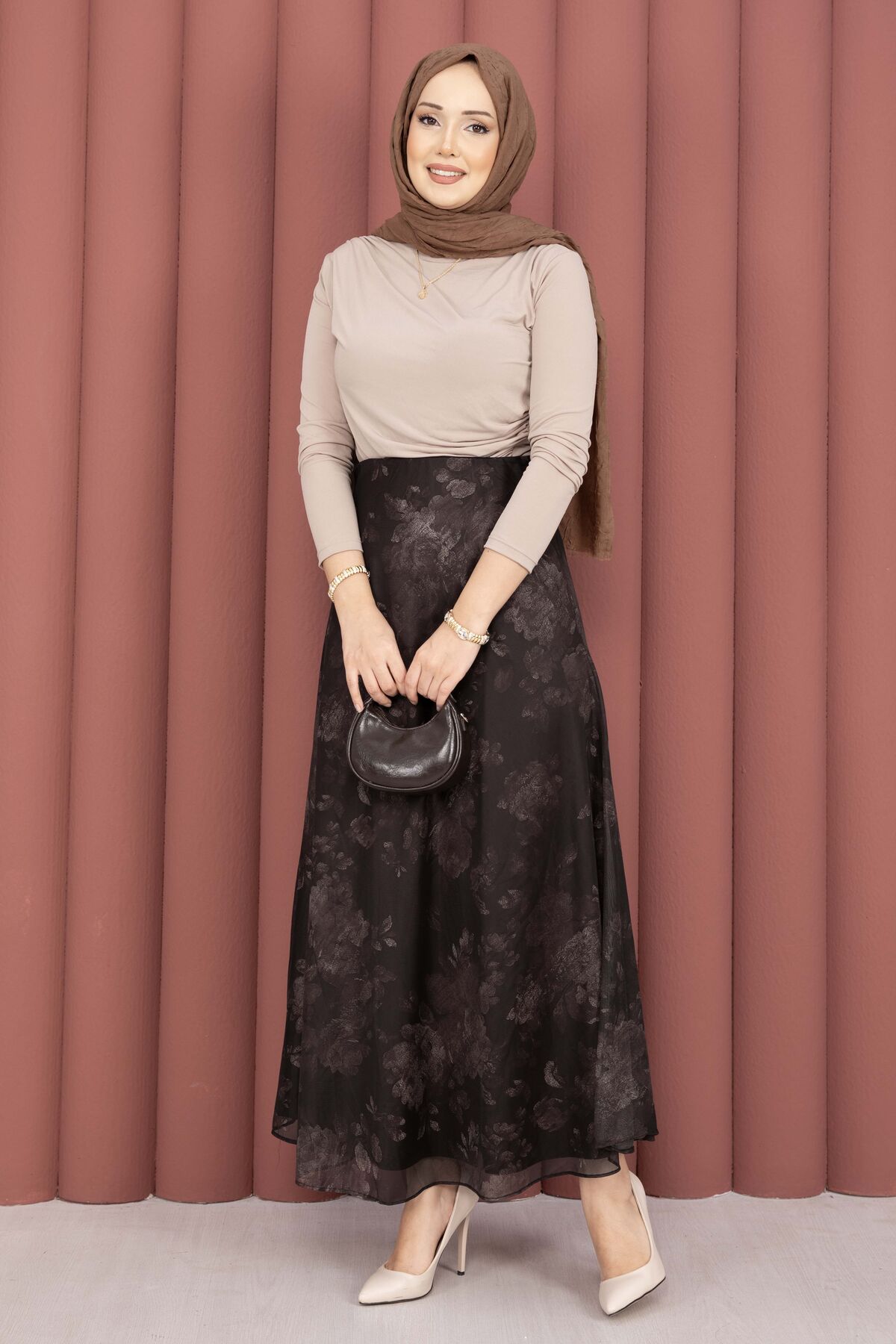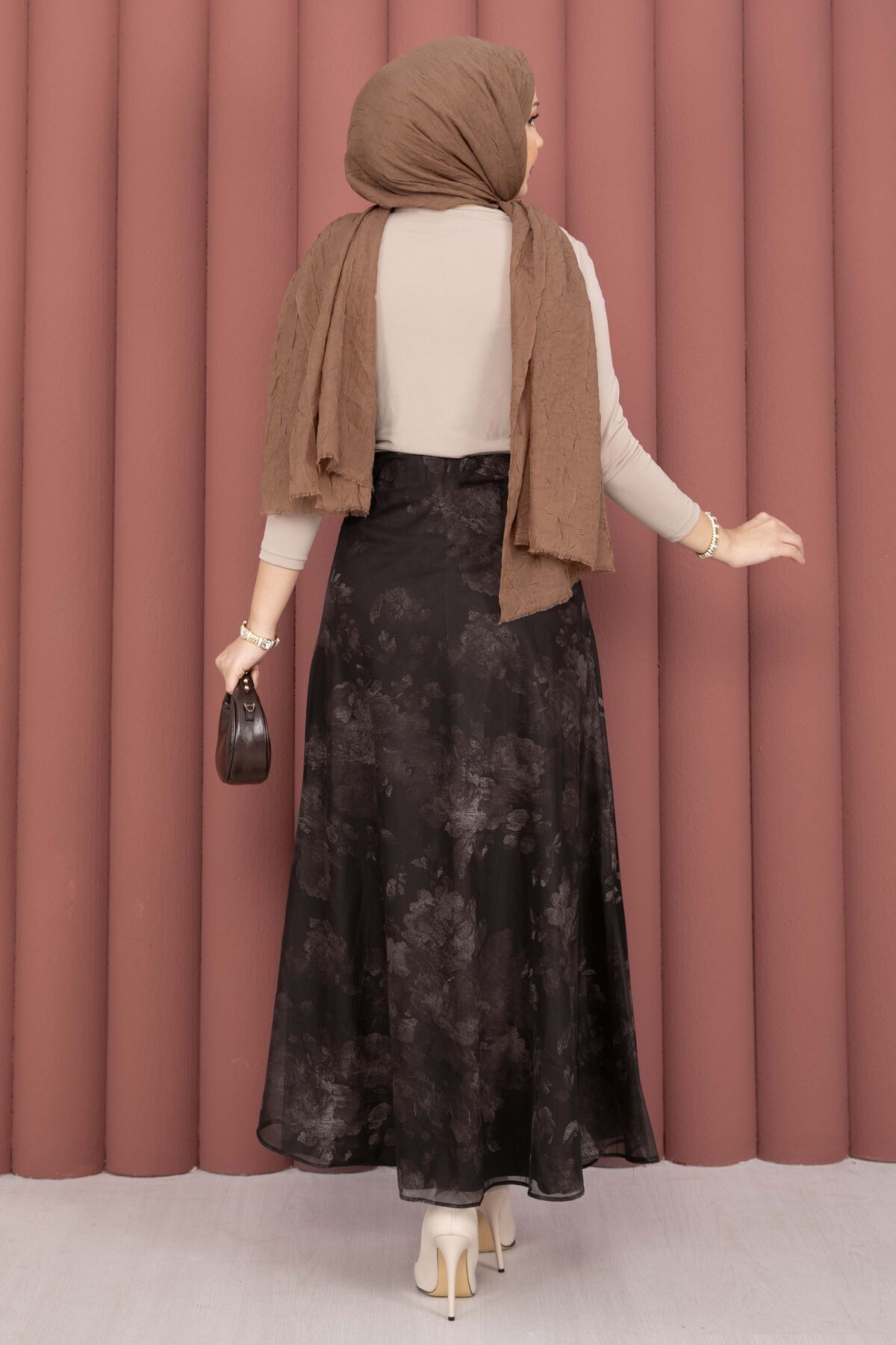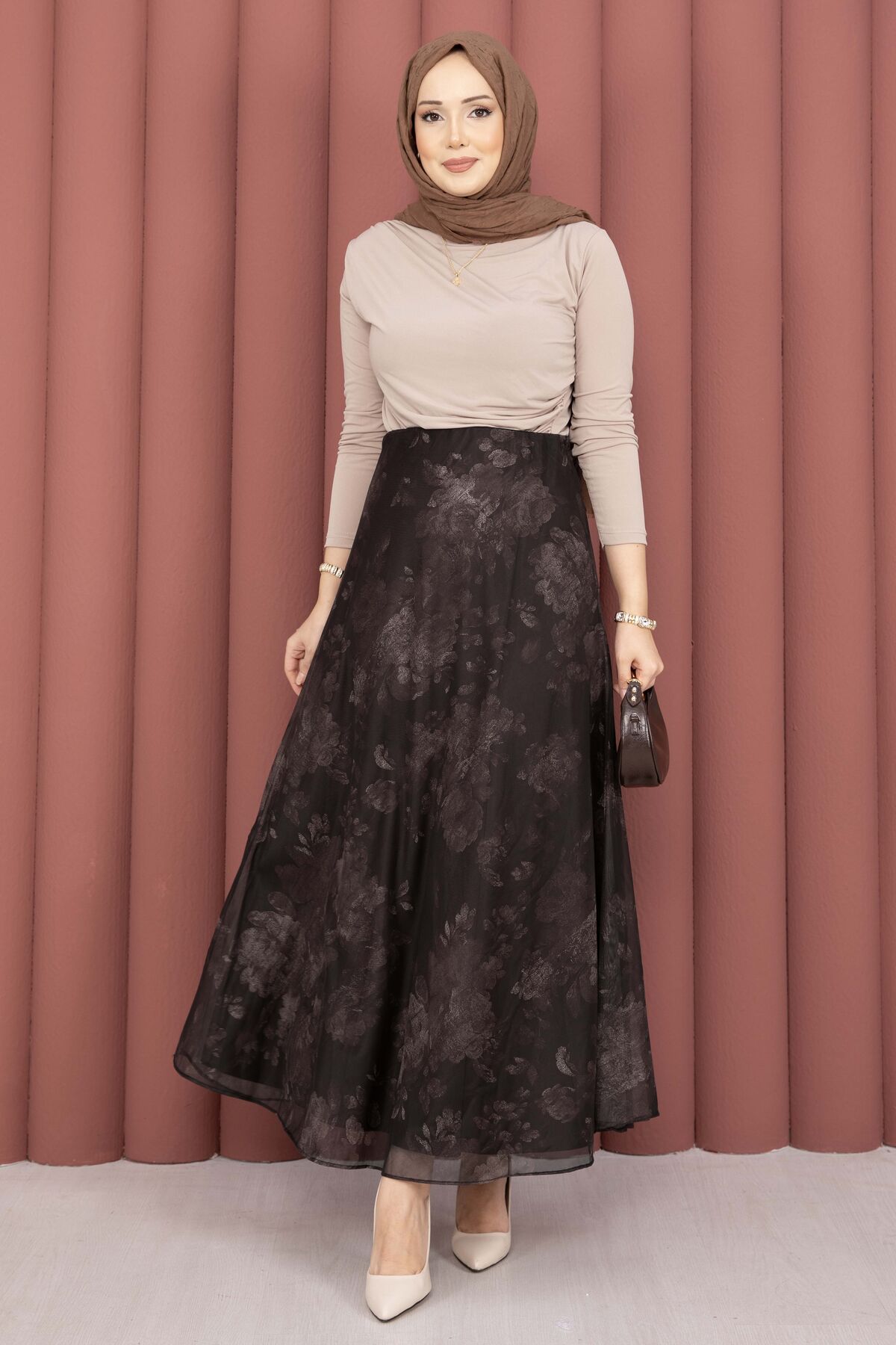 Batik Desen Tül Etek Kahve
