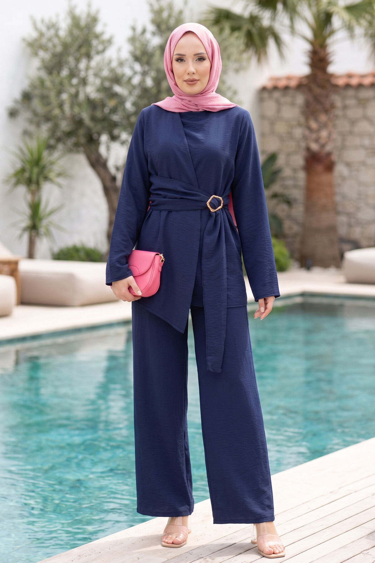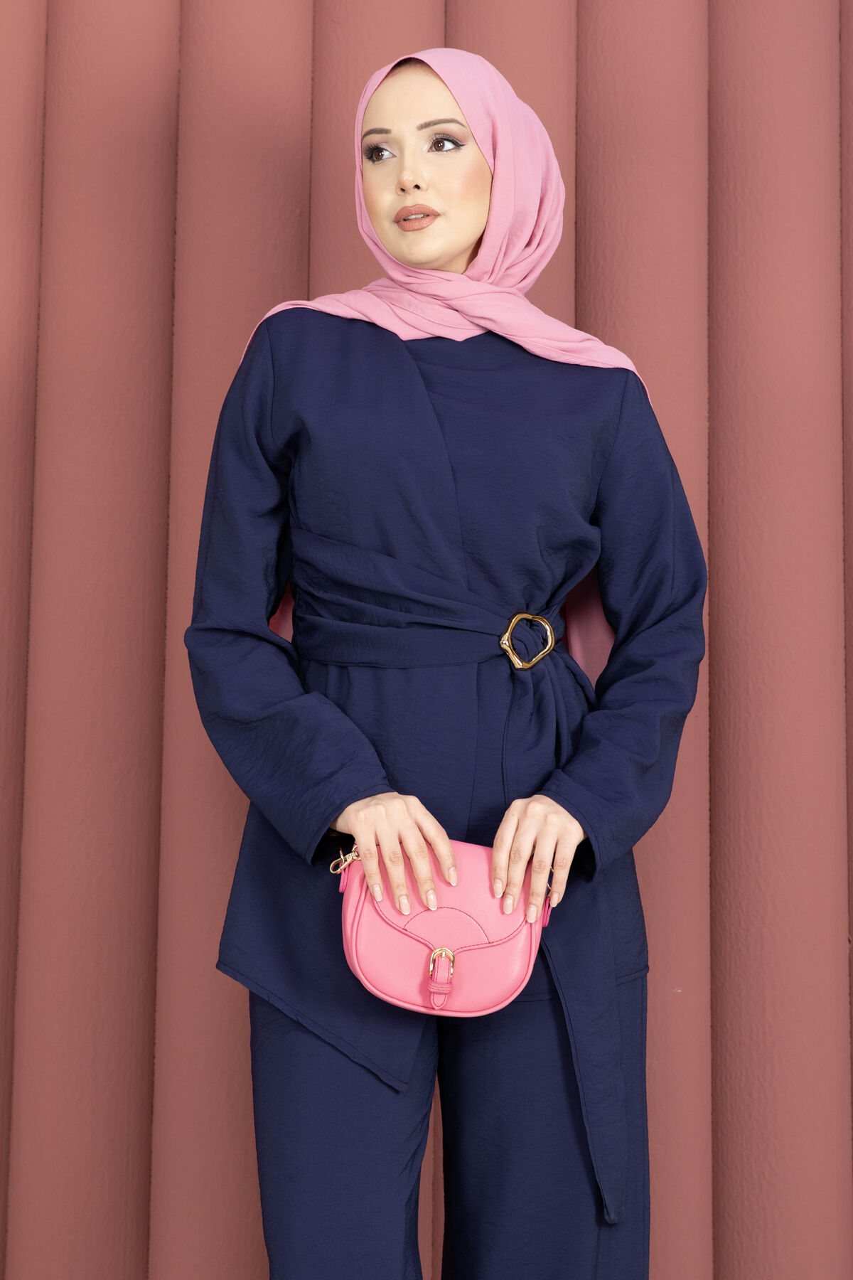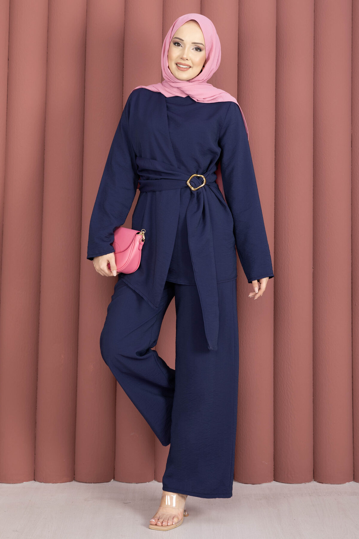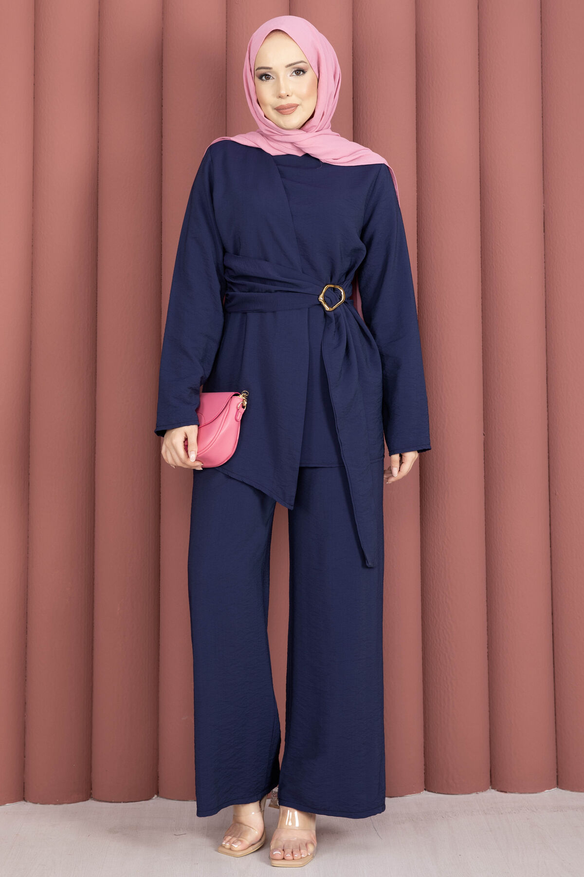 Bel Aksesuar Detaylı Tunik Pantolon İkili Takım Lacivert