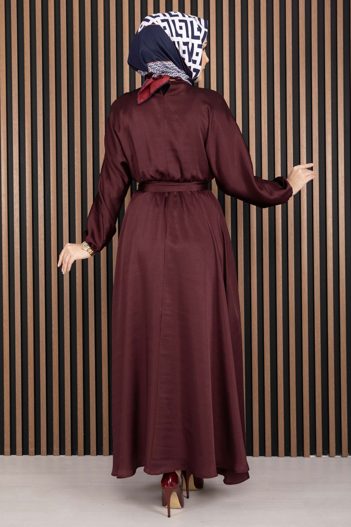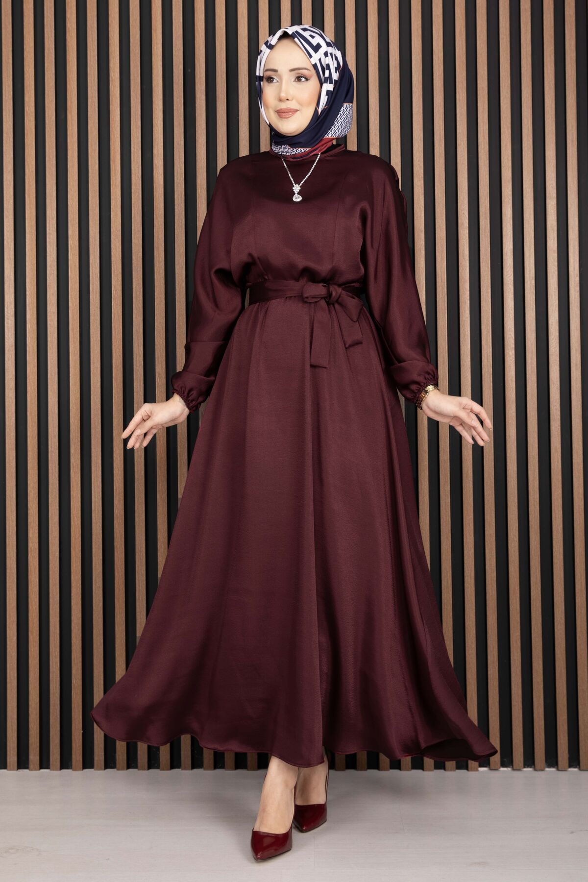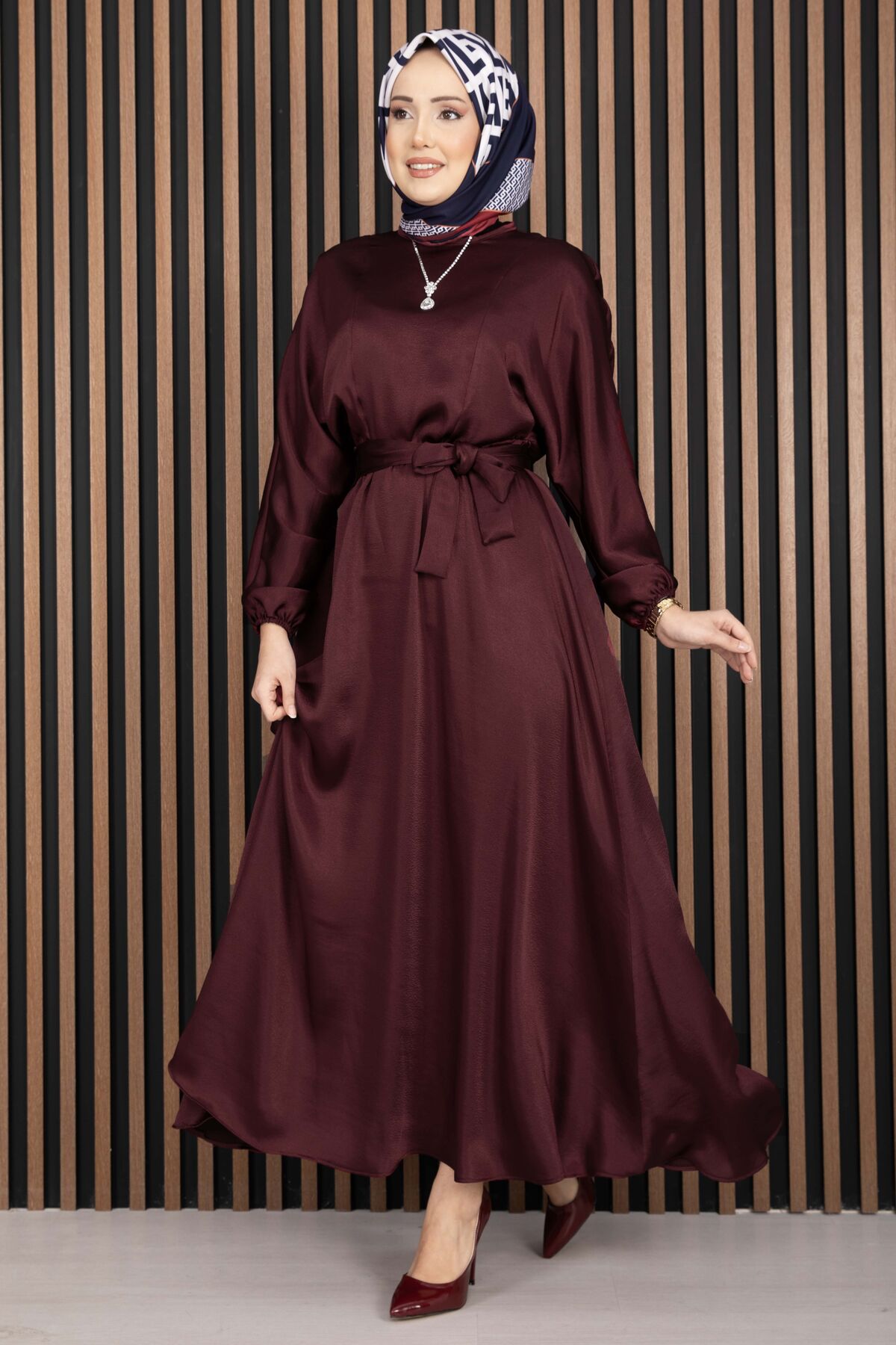 Beli Büzgülü Kuşaklı Tesettür Elbise