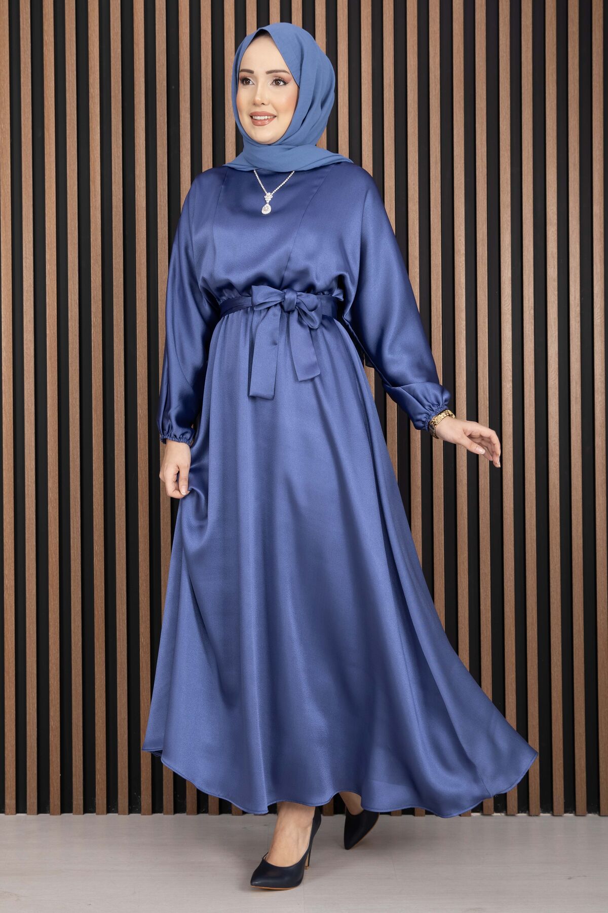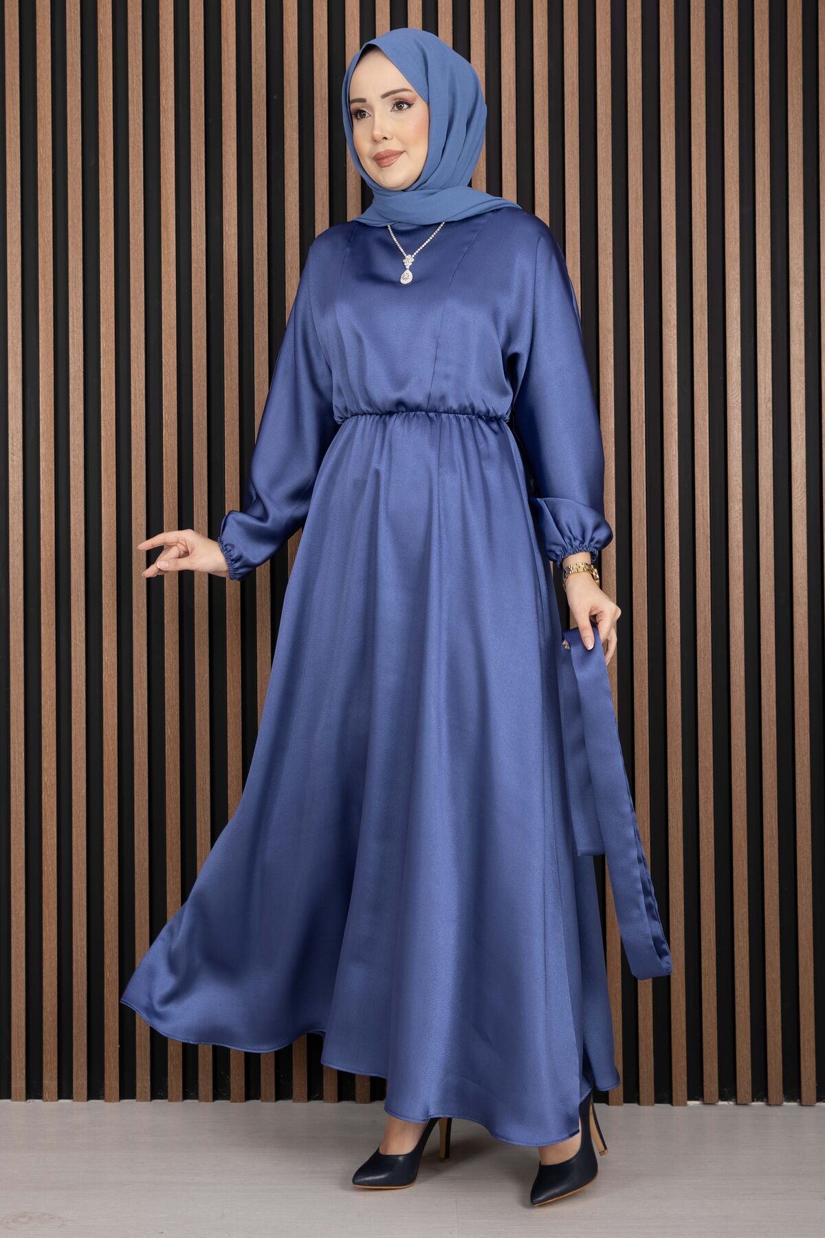 Beli Büzgülü Kuşaklı Tesettür Elbise İndigo Yorumları