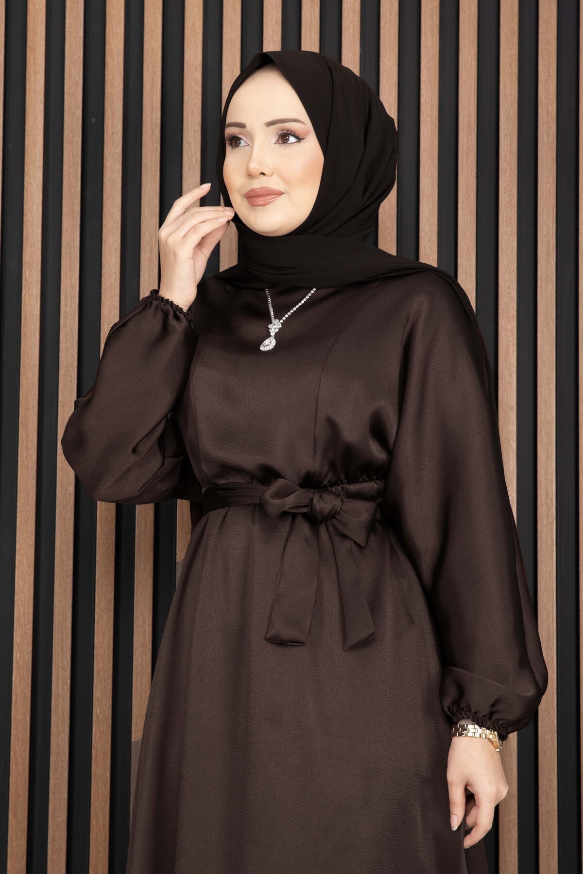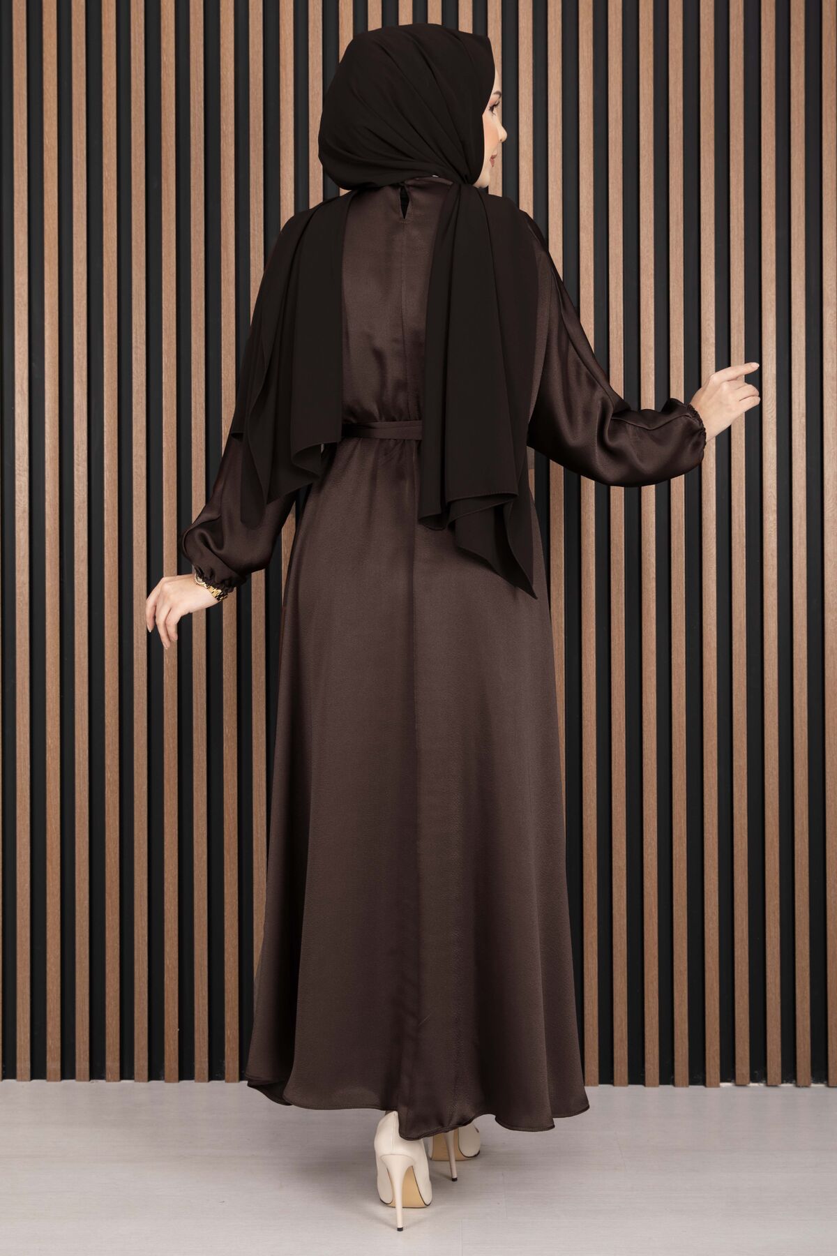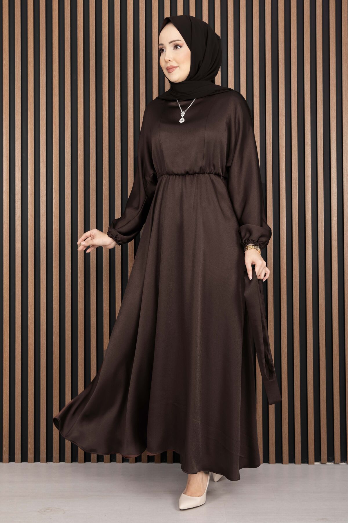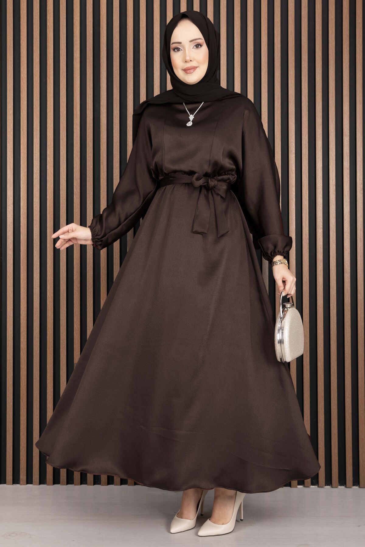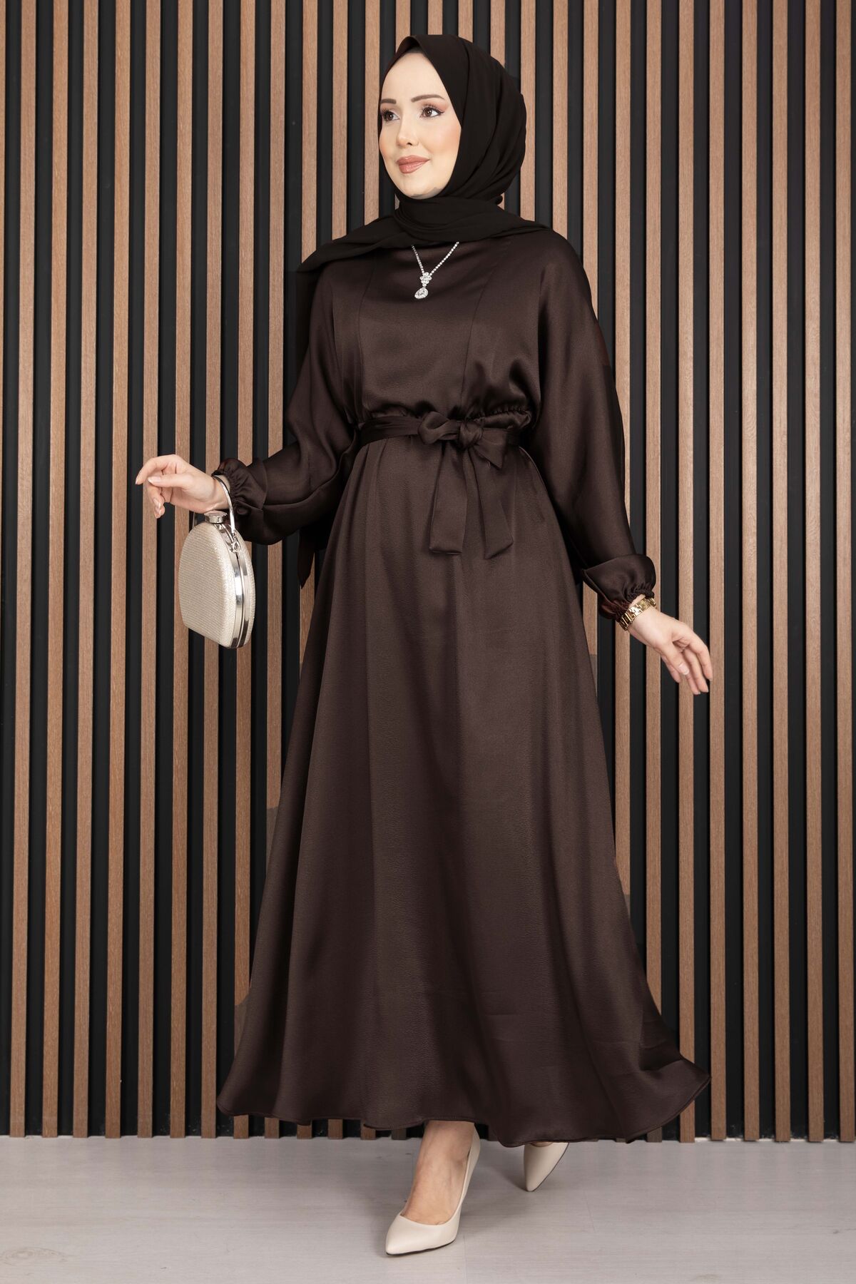 Beli Büzgülü Kuşaklı Tesettür Elbise Kahve Yorumları