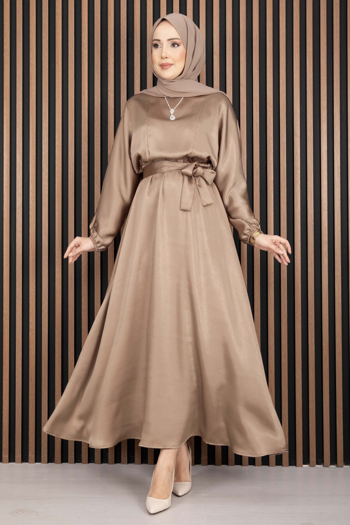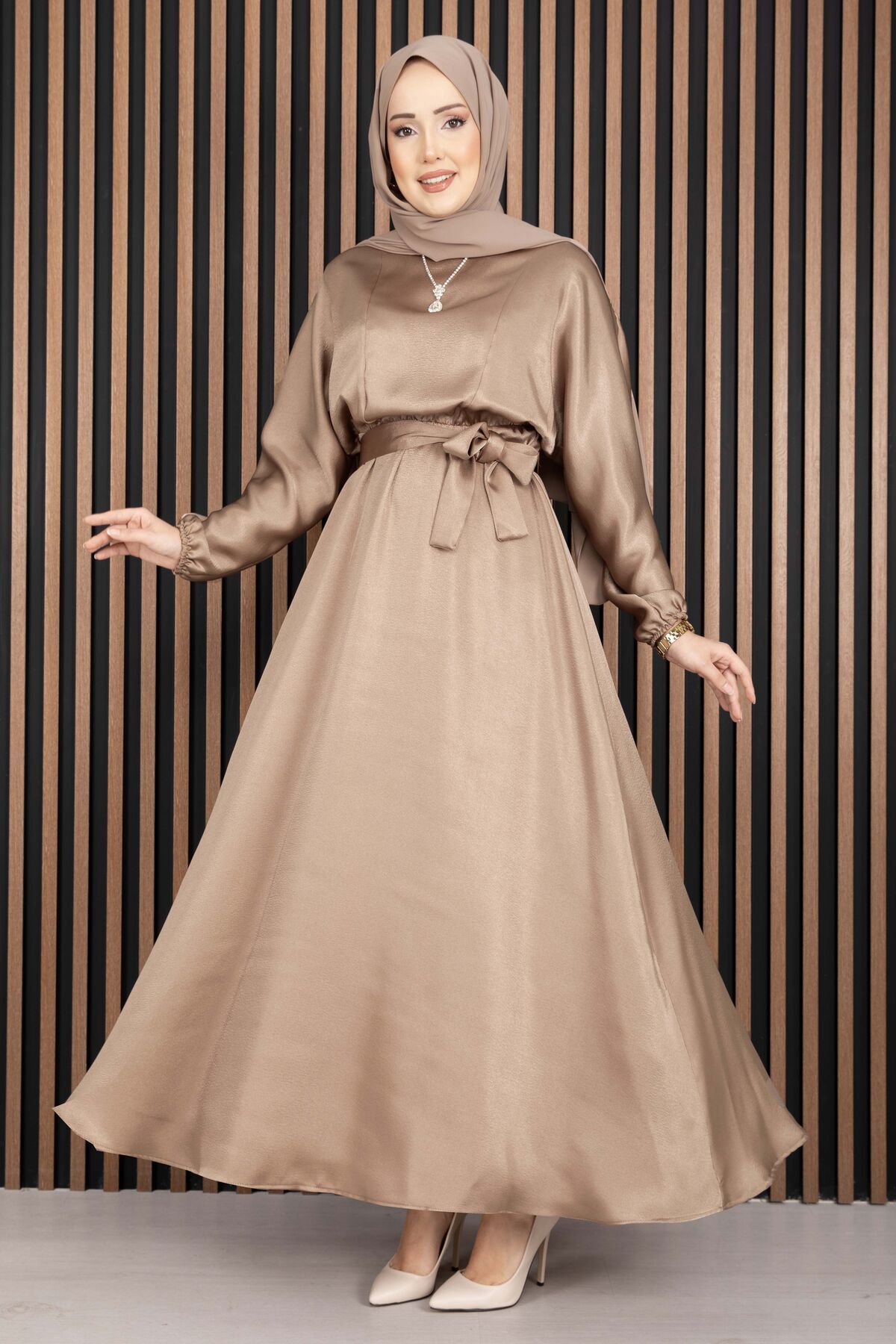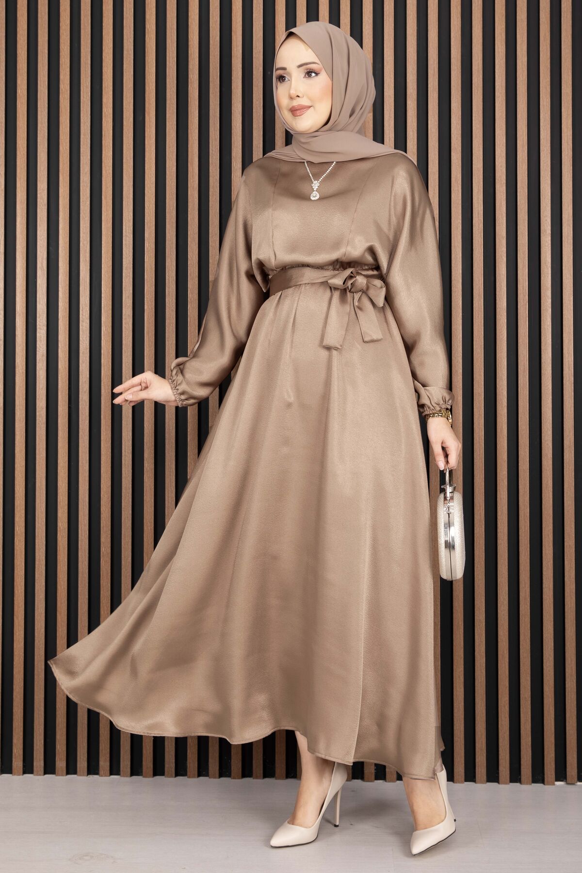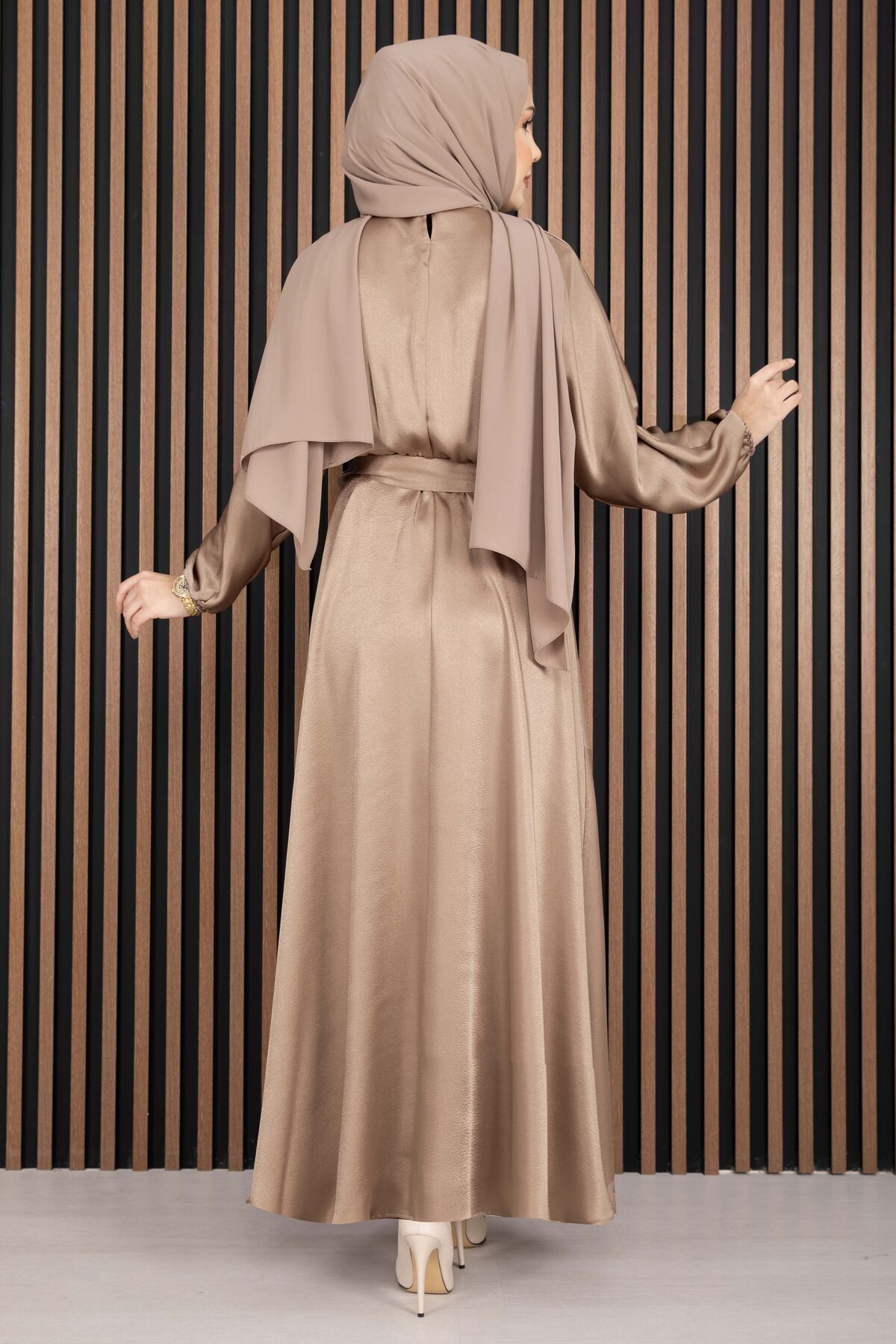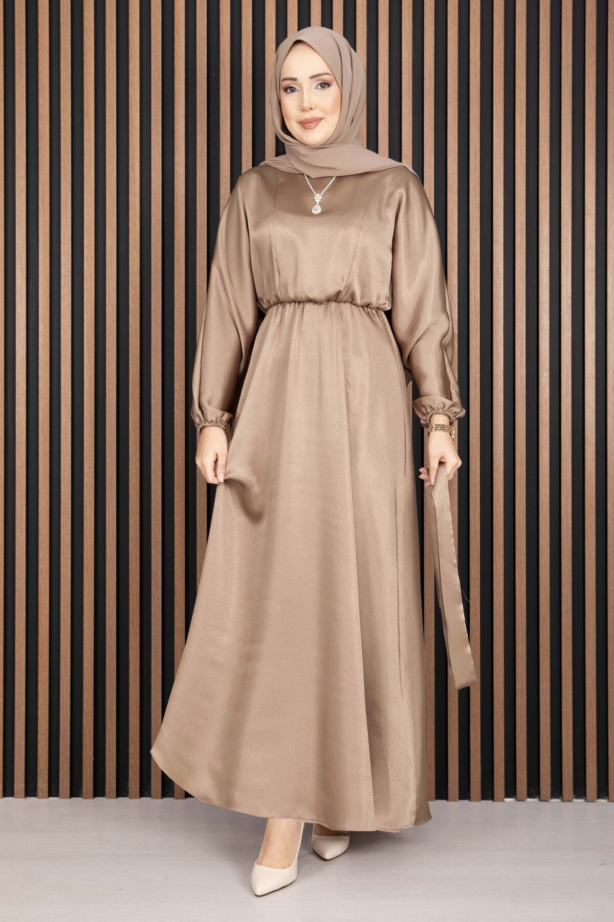 Beli Büzgülü Kuşaklı Tesettür Elbise Vizon Yorumları