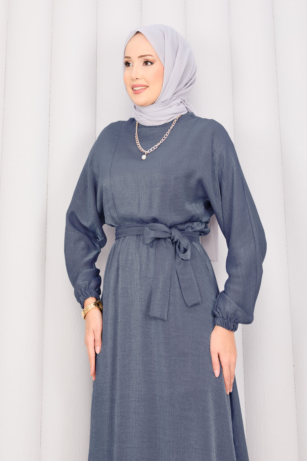 Beli Büzgülü Seyyar Kuşaklı Yarasa Kol Tesettür Elbise Gri Yorumları