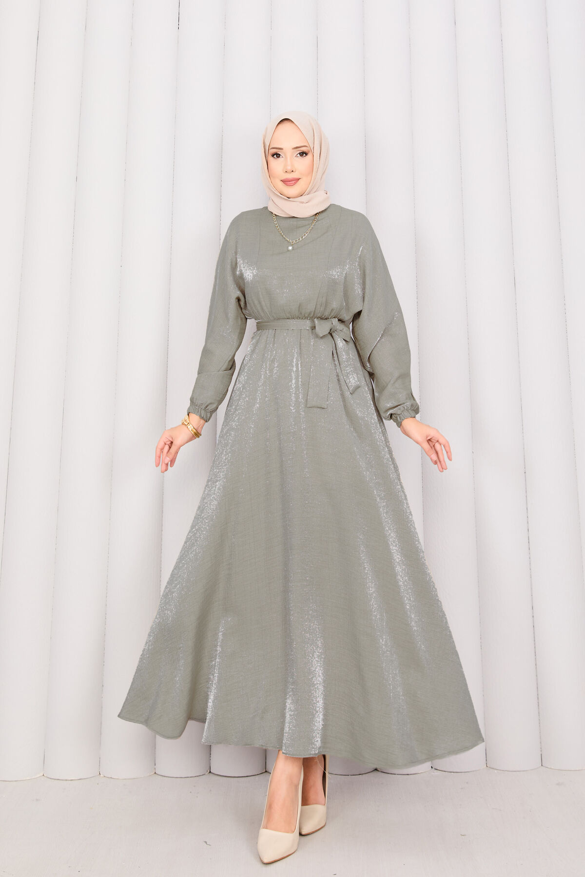 Beli Büzgülü Seyyar Kuşaklı Yarasa Kol Tesettür Elbise Haki Yorumları