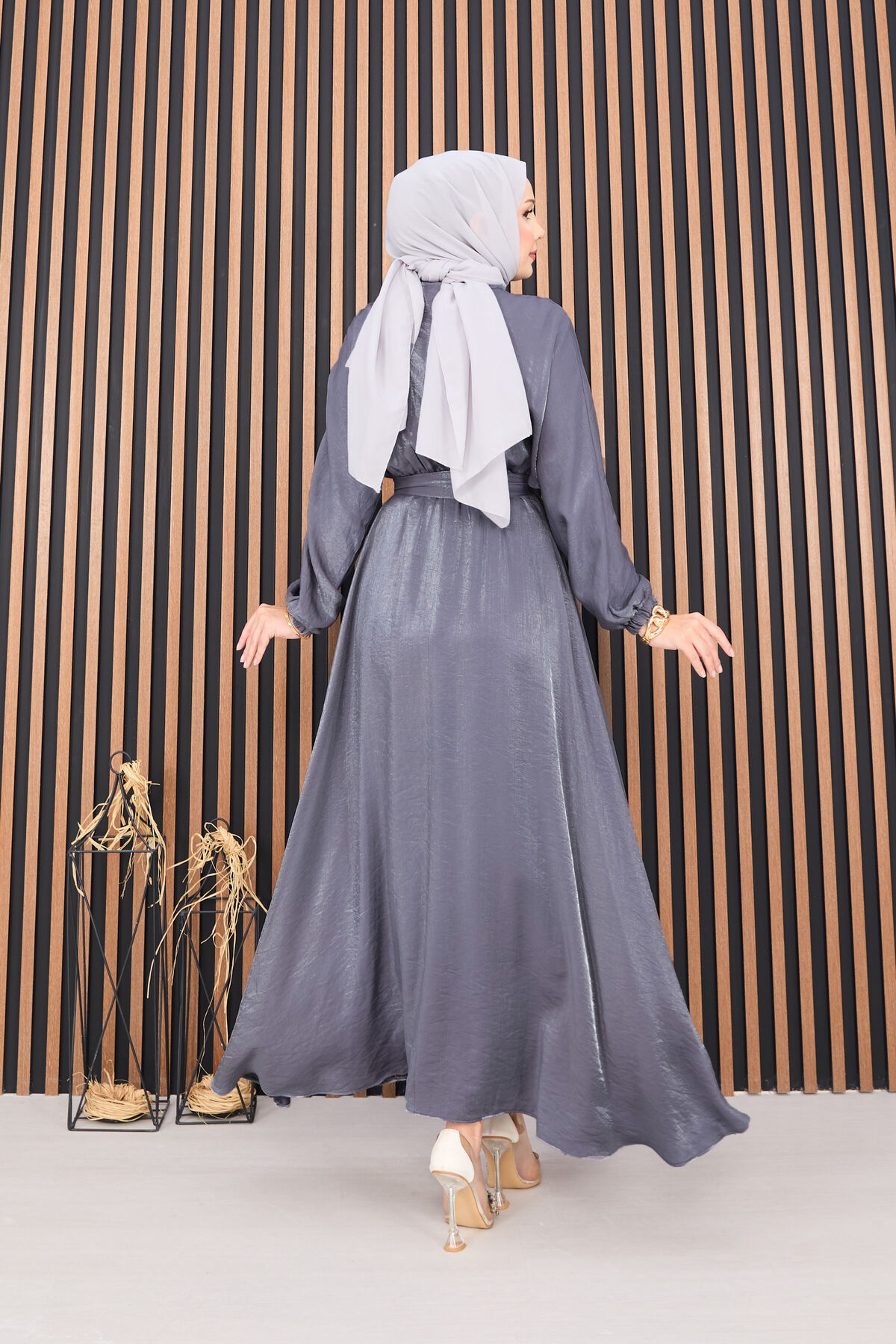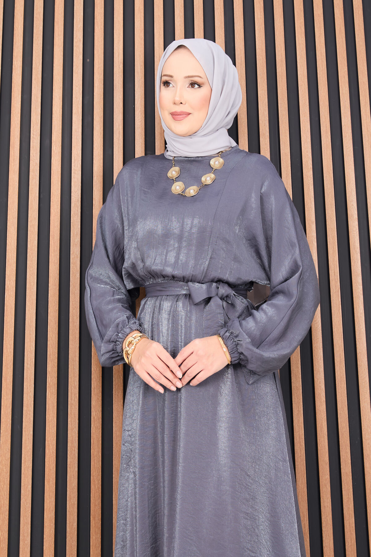 Beli Büzgülü Yarasa Kol Tesettür Elbise Gri Yorumları