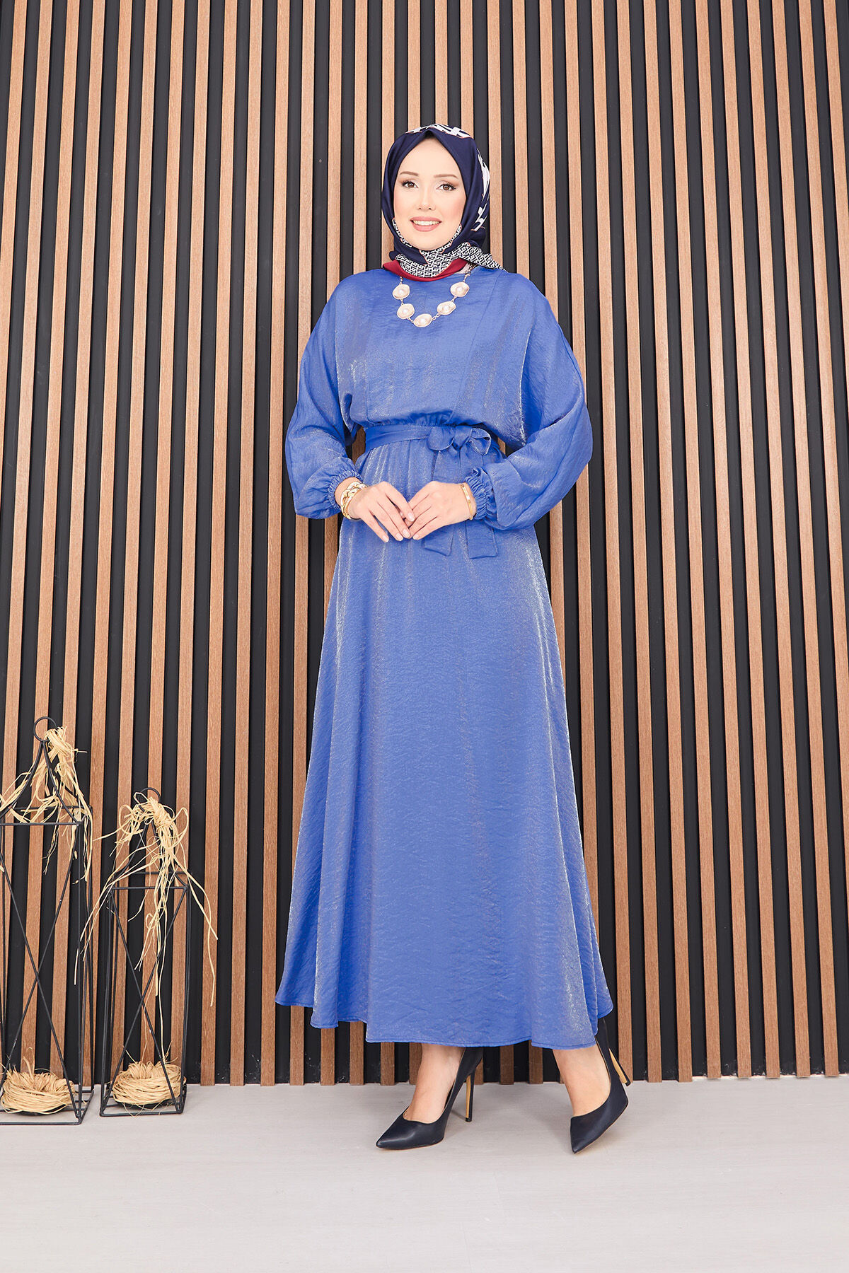 - Ürün mevsimliktir. Seyyar kuşak beli büzgülü yarasa kol tesettür elbise.Kol manşetleri lastik detaylıdır. (KOLYE AKSESUAR AMAÇLIDIR)