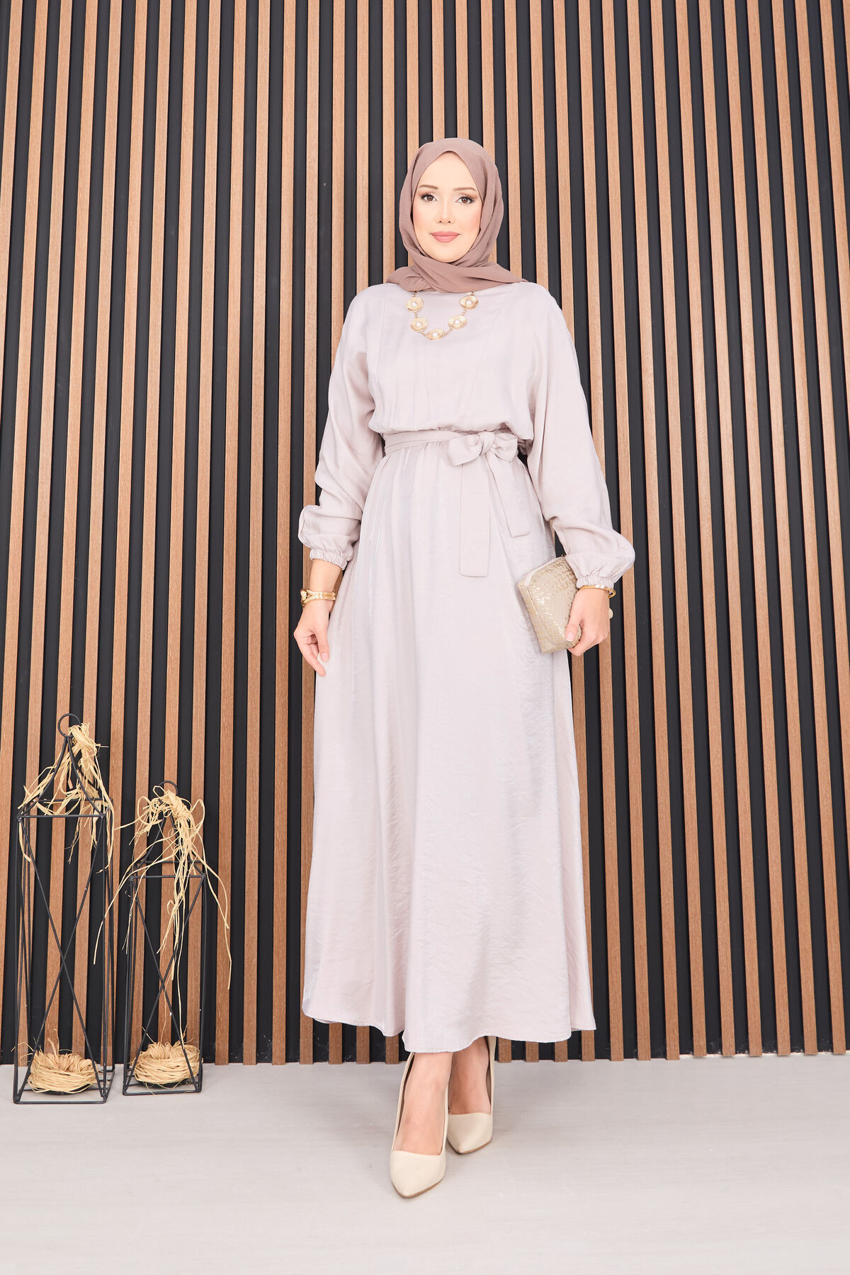 Beli Büzgülü Yarasa Kol Tesettür Elbise Taş Yorumları