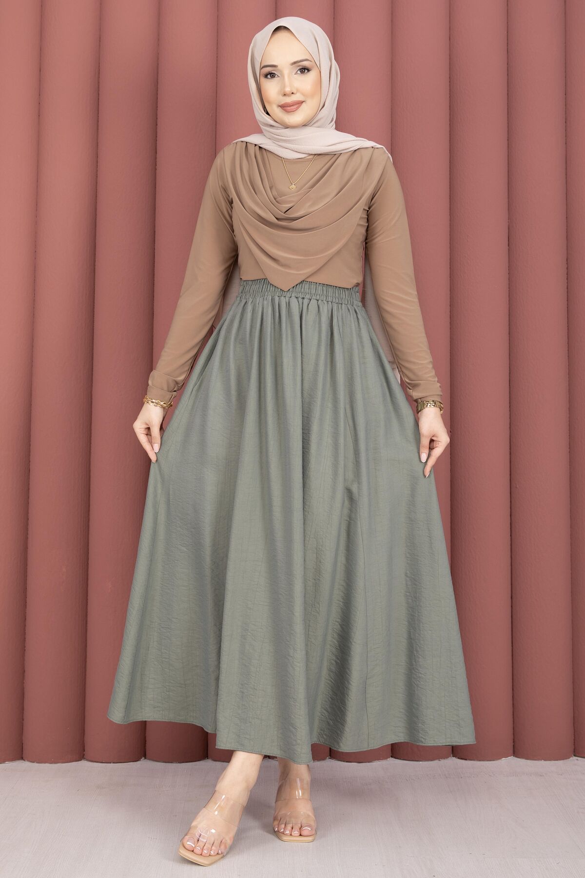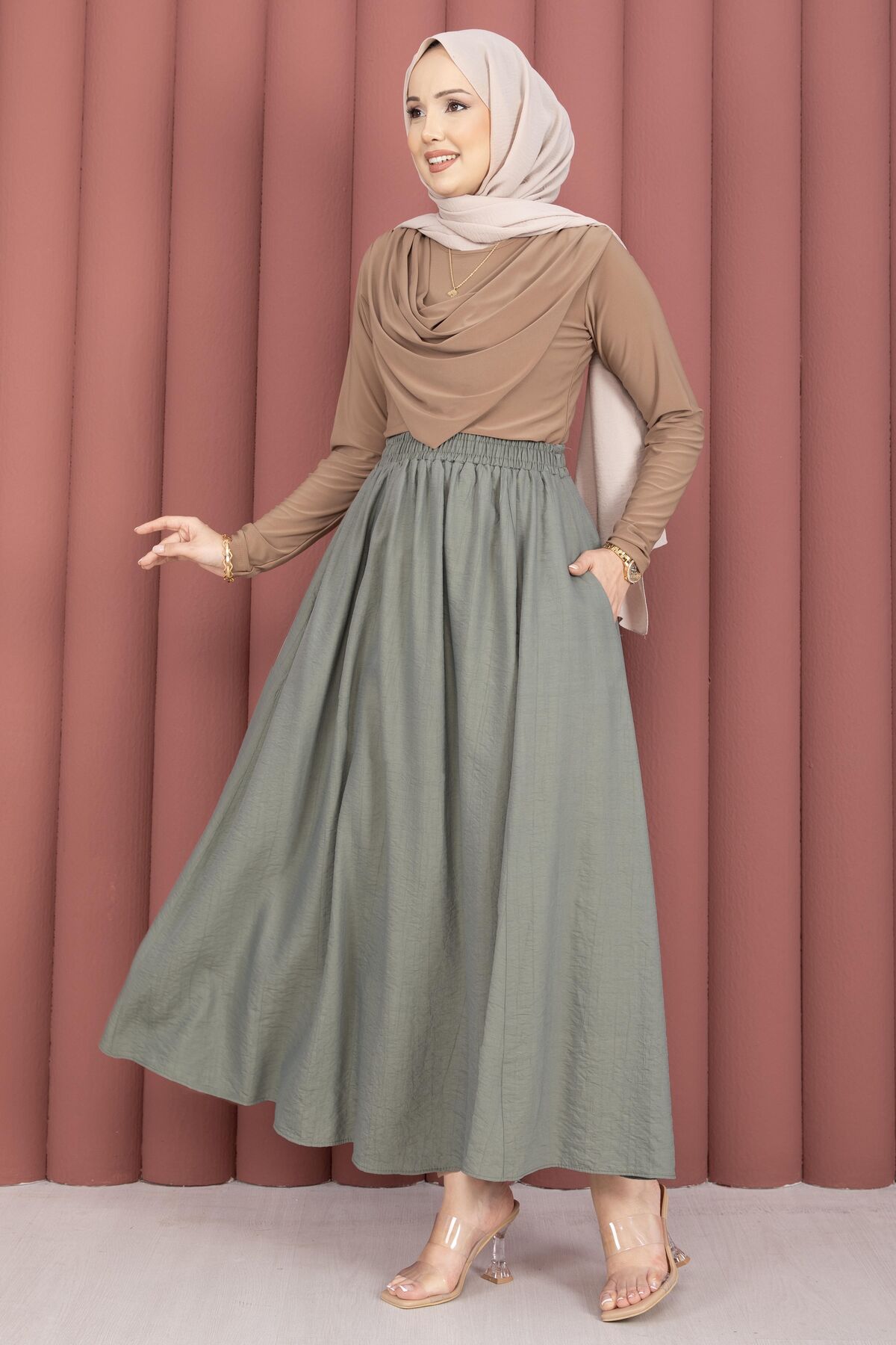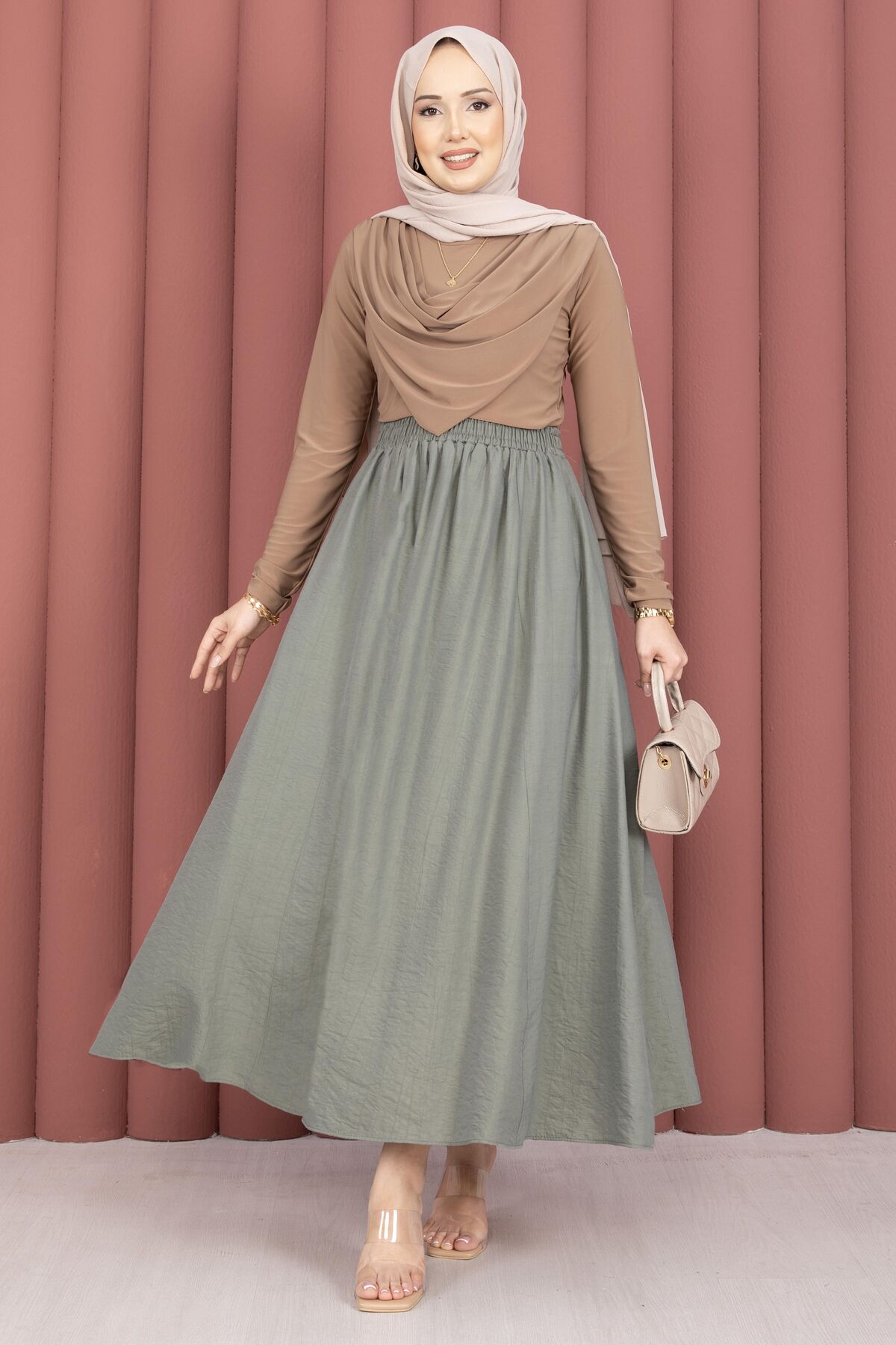 Dört mevsim kullanıma uygun bu etek, hem konforu hem de şıklığı bir arada sunar. Günlük kombinlerde rahatlıkla tercih edilebilecek modern tasarımıyla dolabınızın vazgeçilmez parçalarından biri olmaya adaydır.