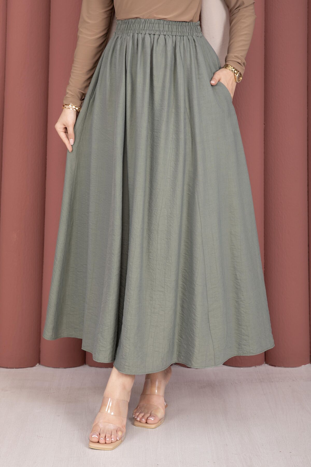 Beli Lastikli Cep Detaylı Etek