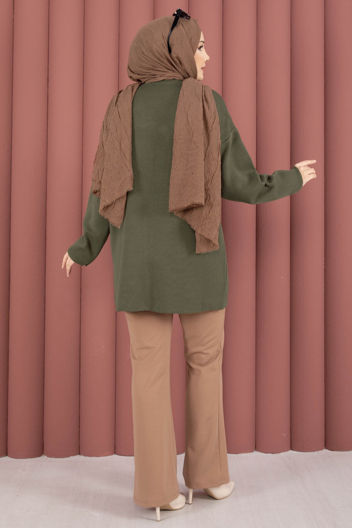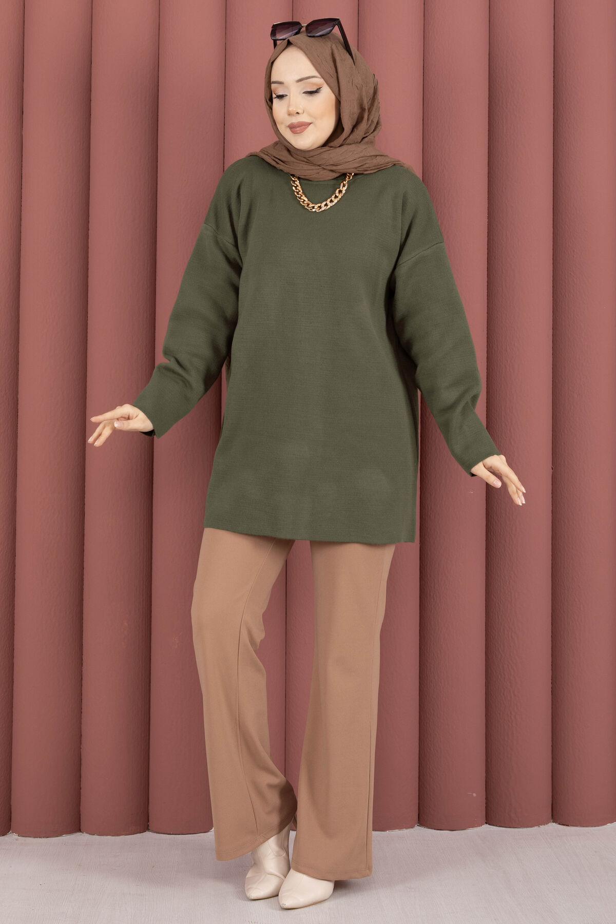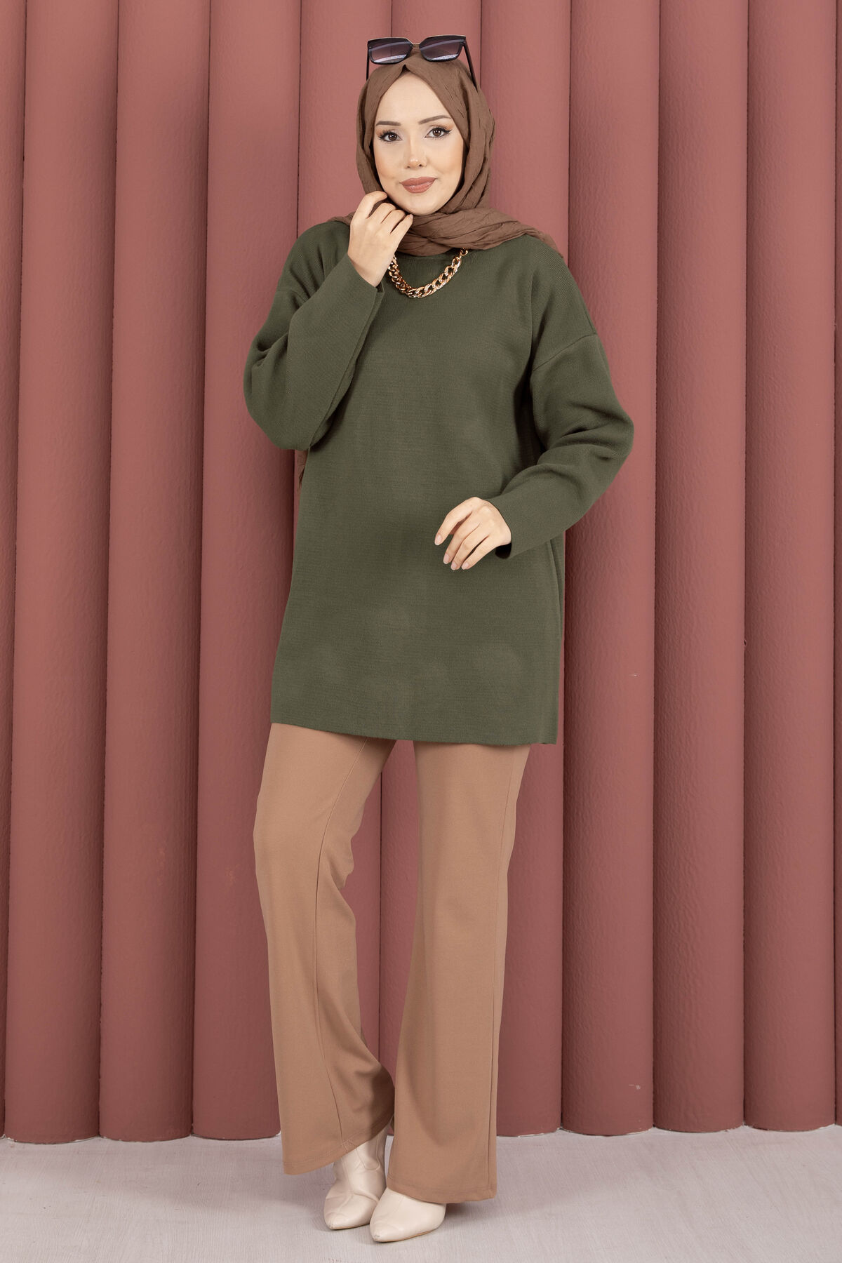 Bisiklet Yaka Salaş Triko Tunik Haki