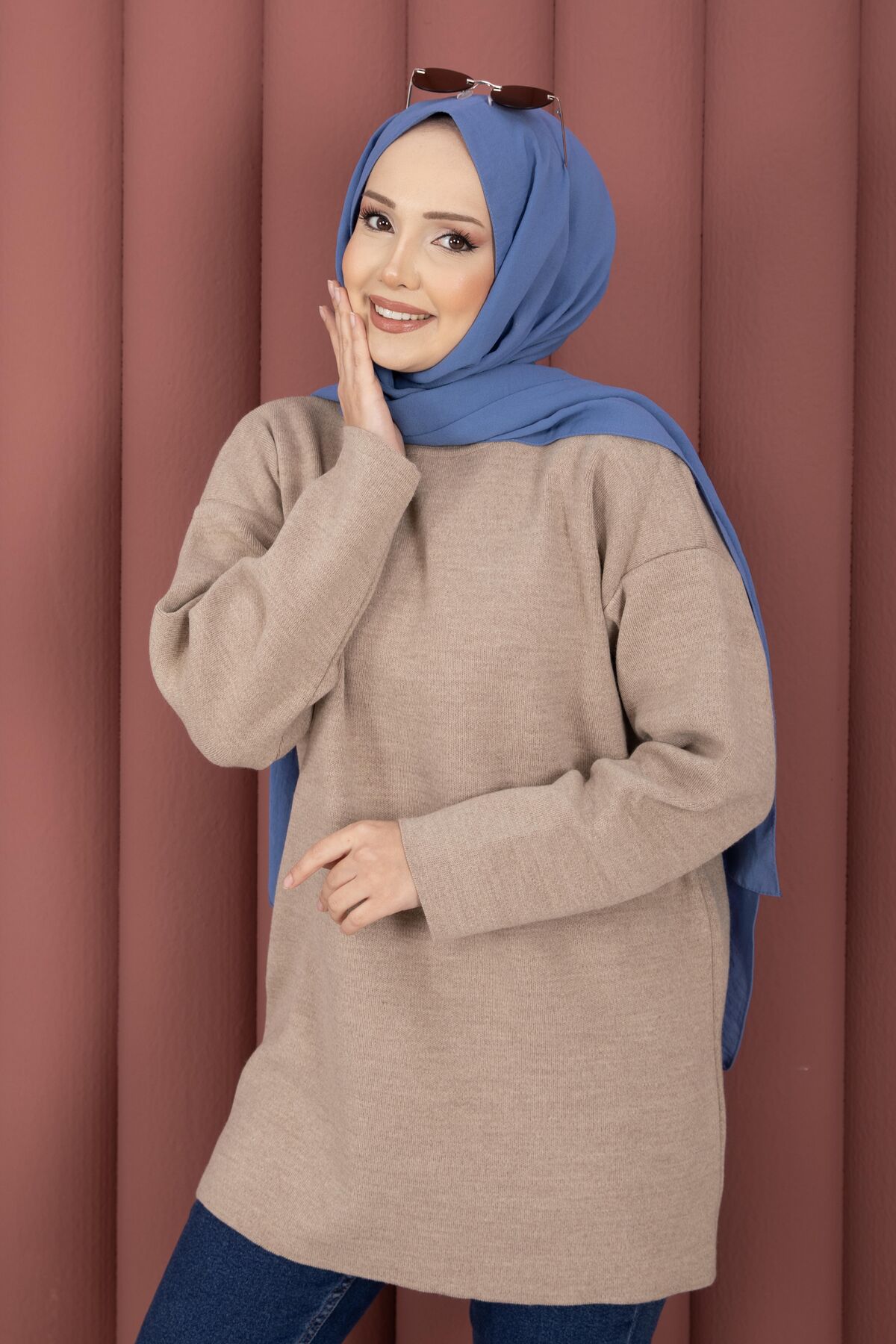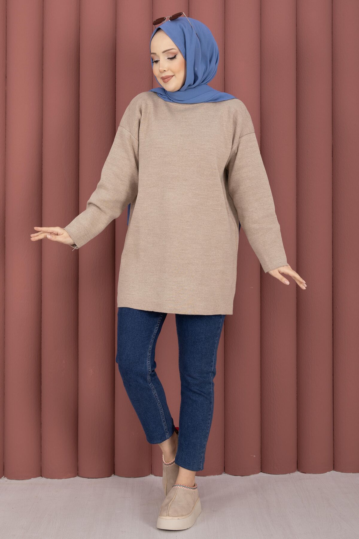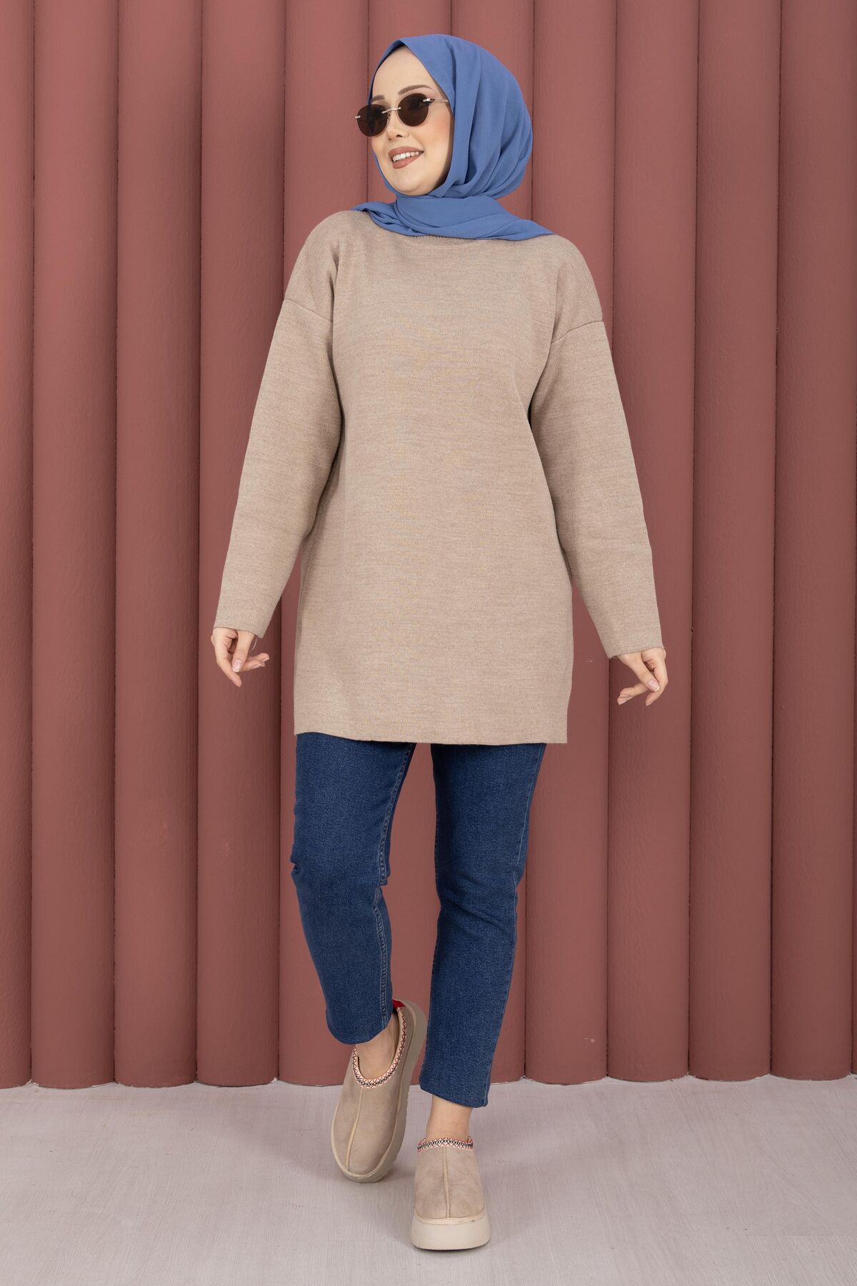 Bisiklet Yaka Salaş Triko Tunik Taş