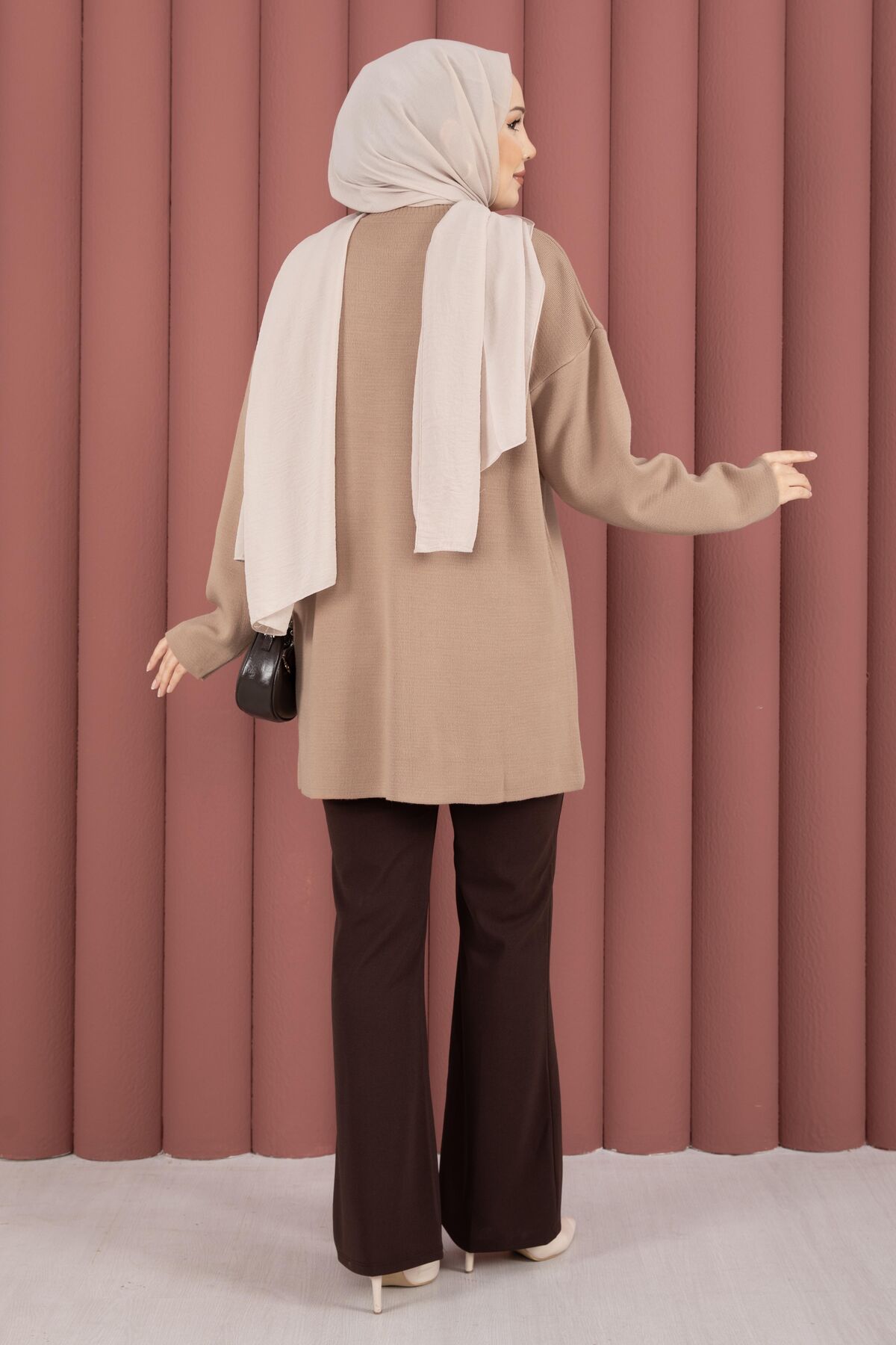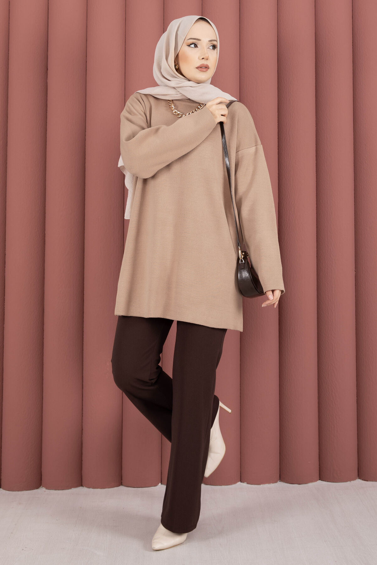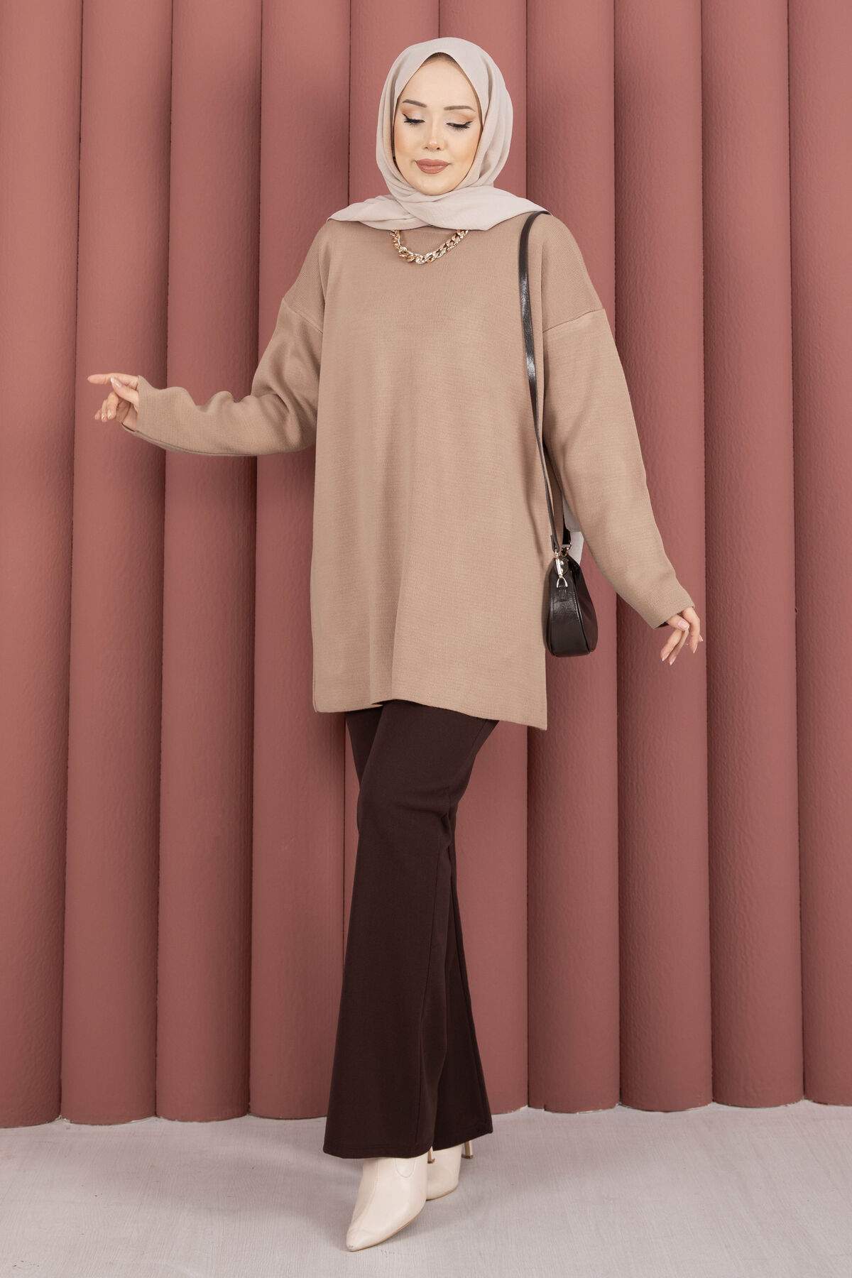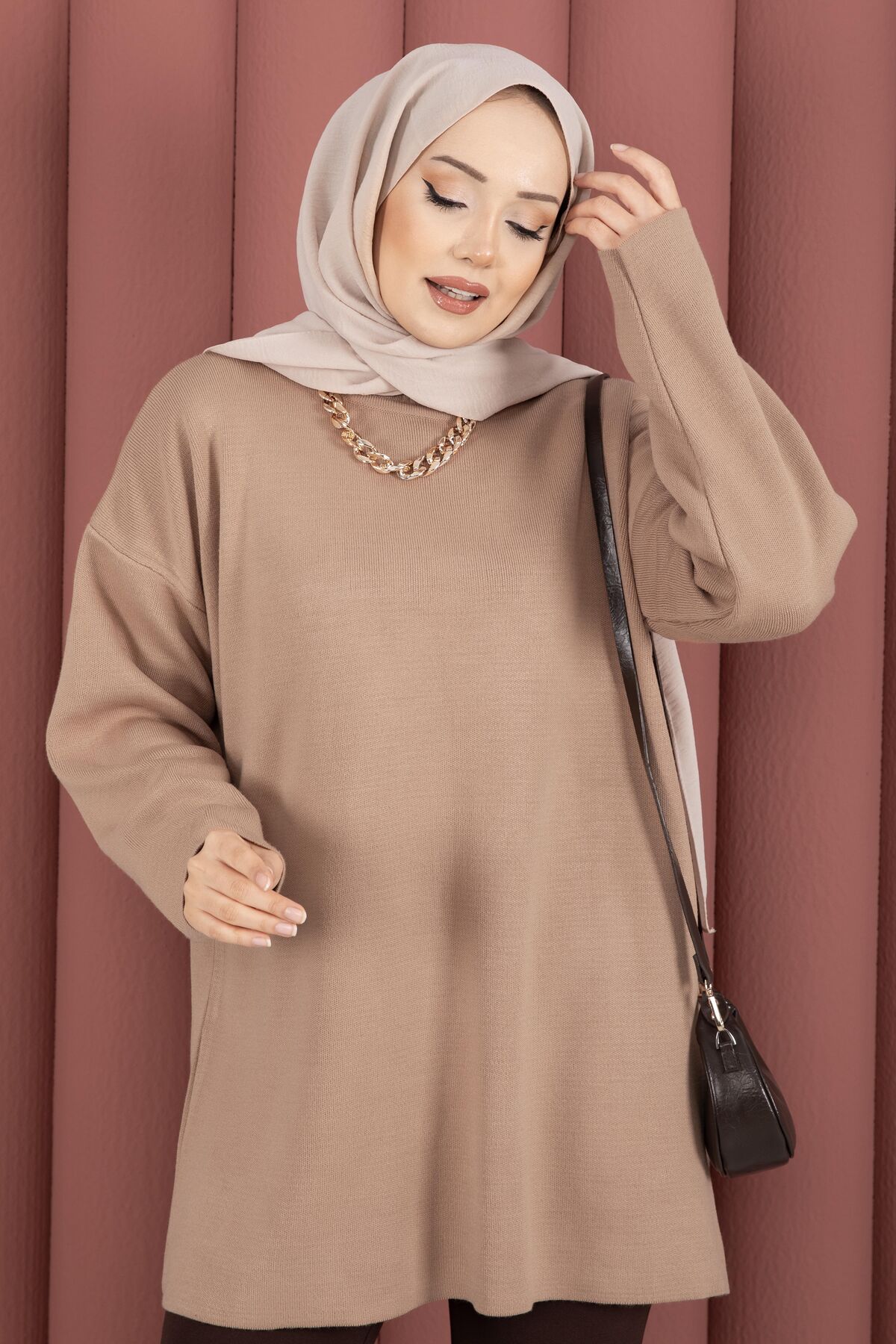 Bisiklet Yaka Salaş Triko Tunik Vizon