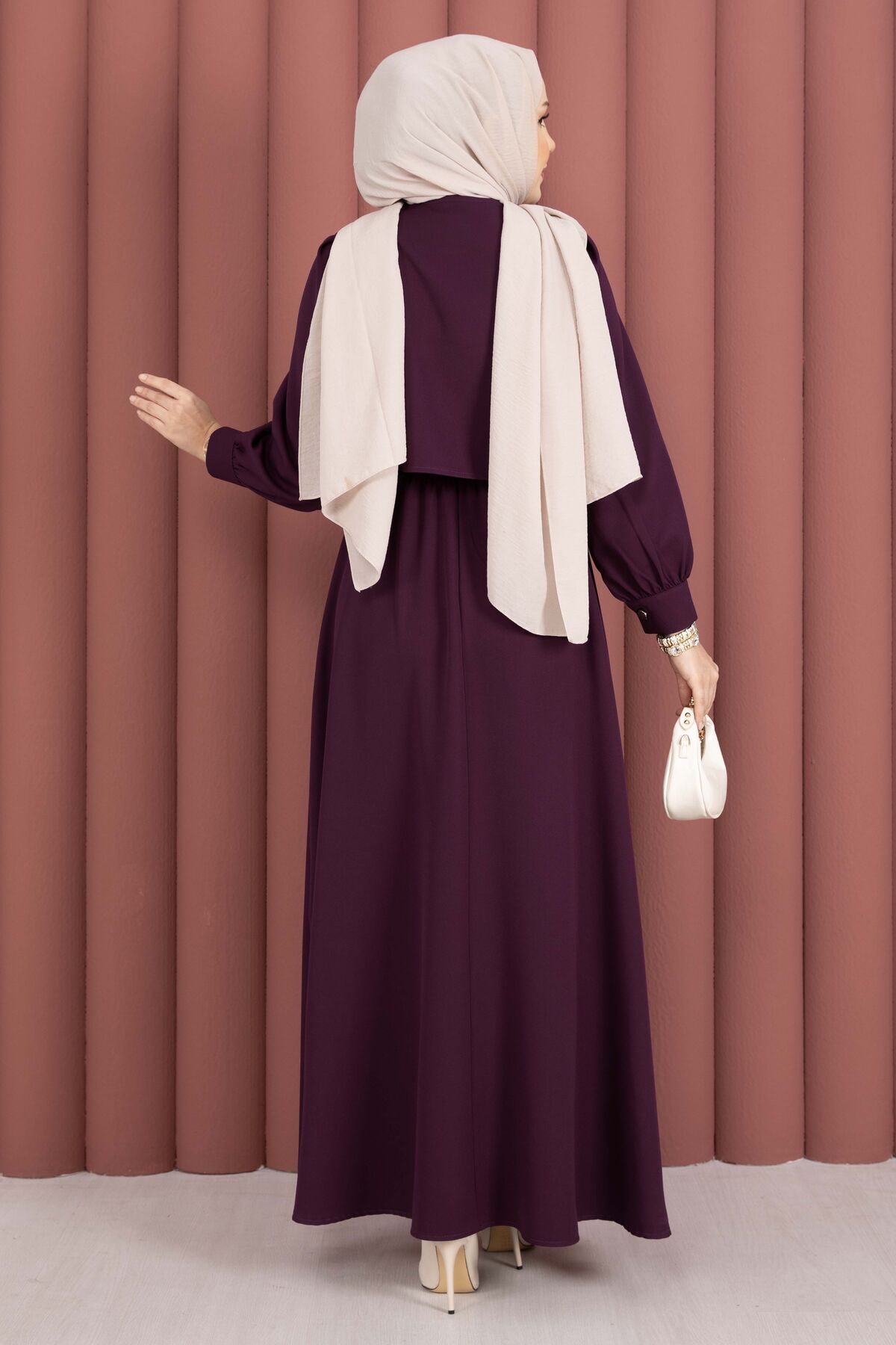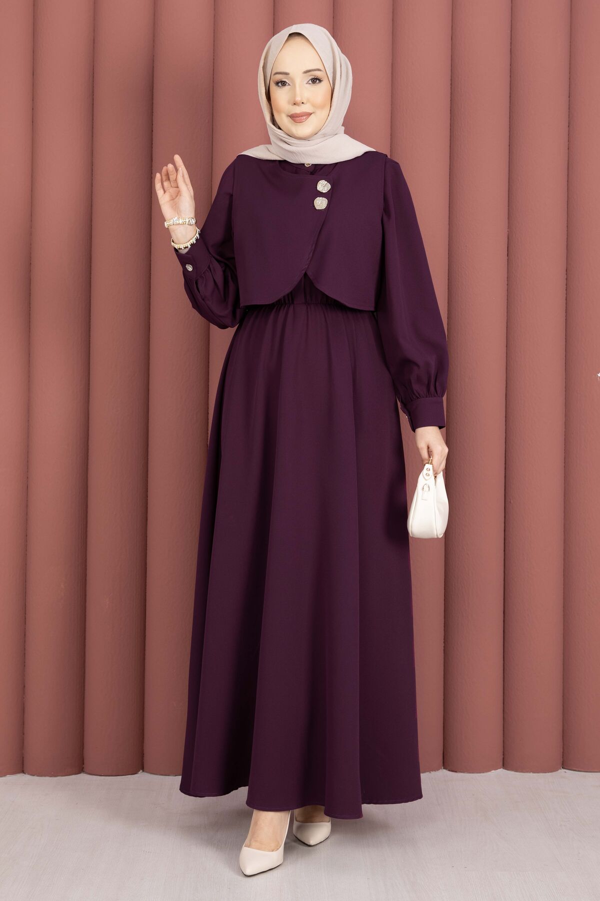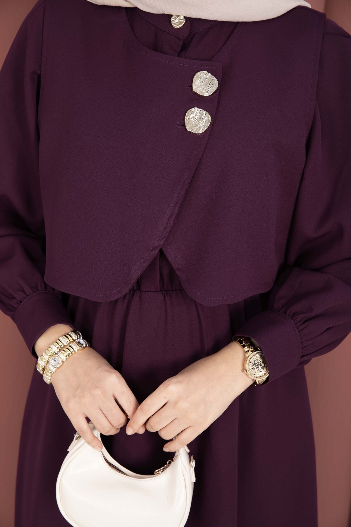 Bolerolu Gold Düğmeli Elbise Takım Mürdüm