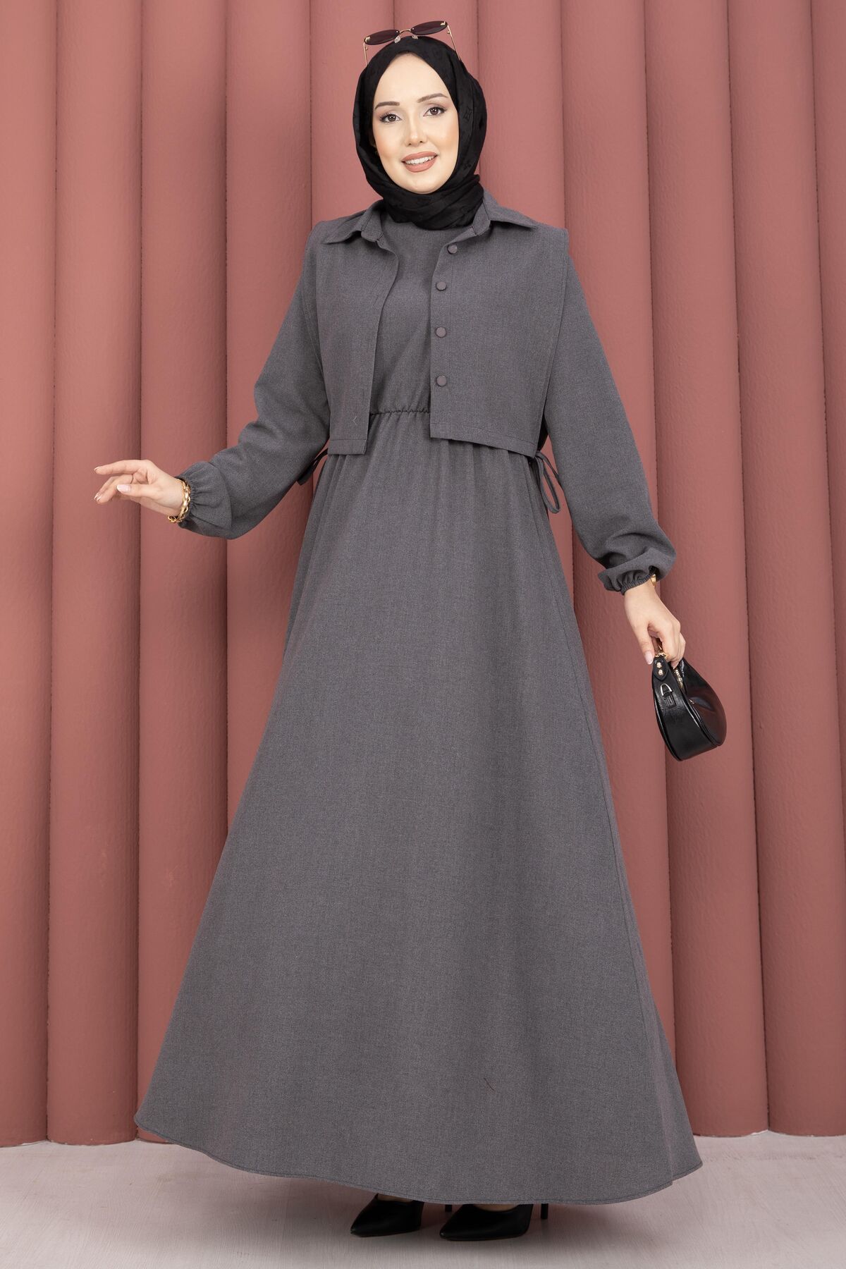 Bolerolu Tesettür Elbise Takım Antrasit