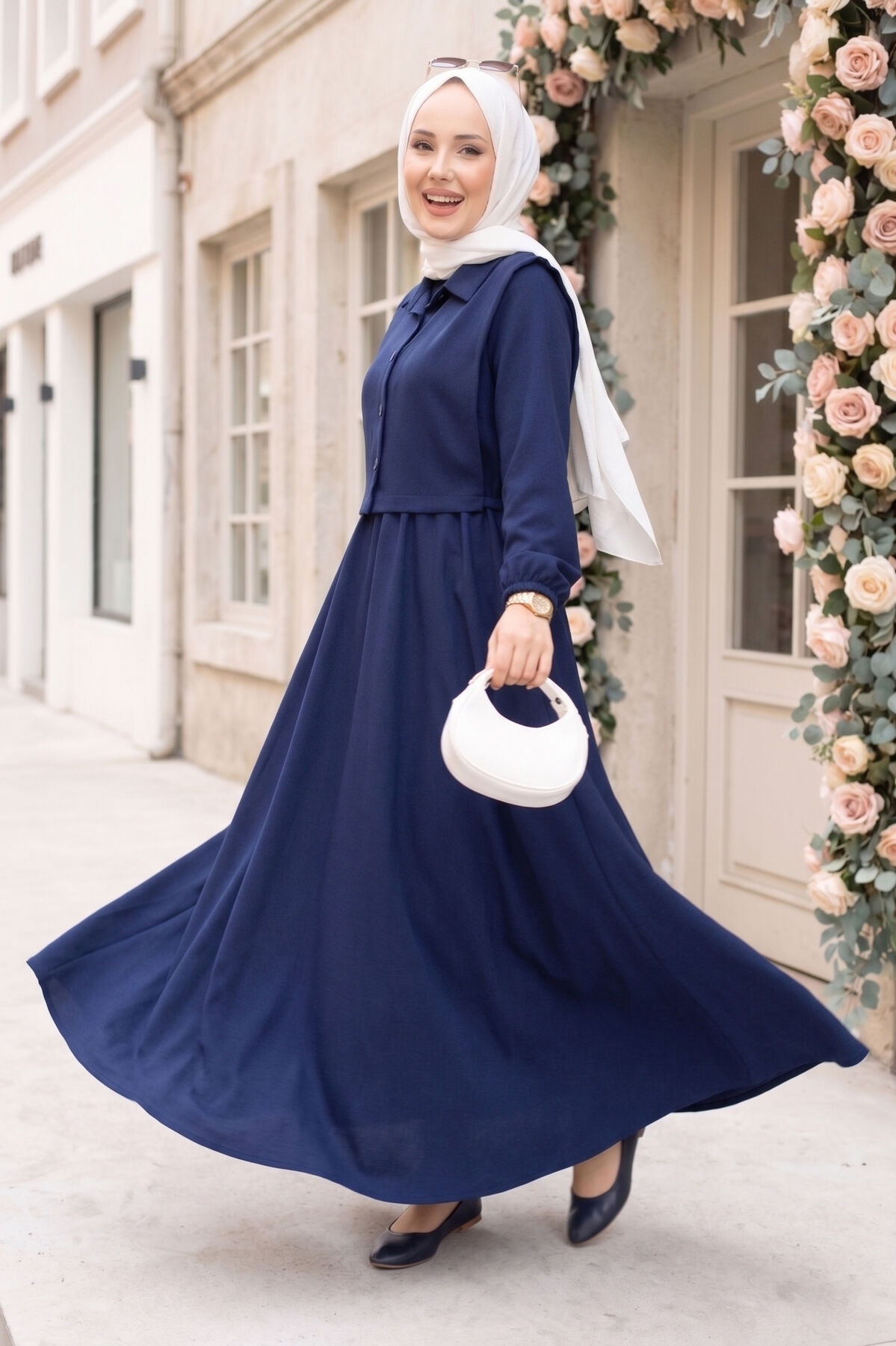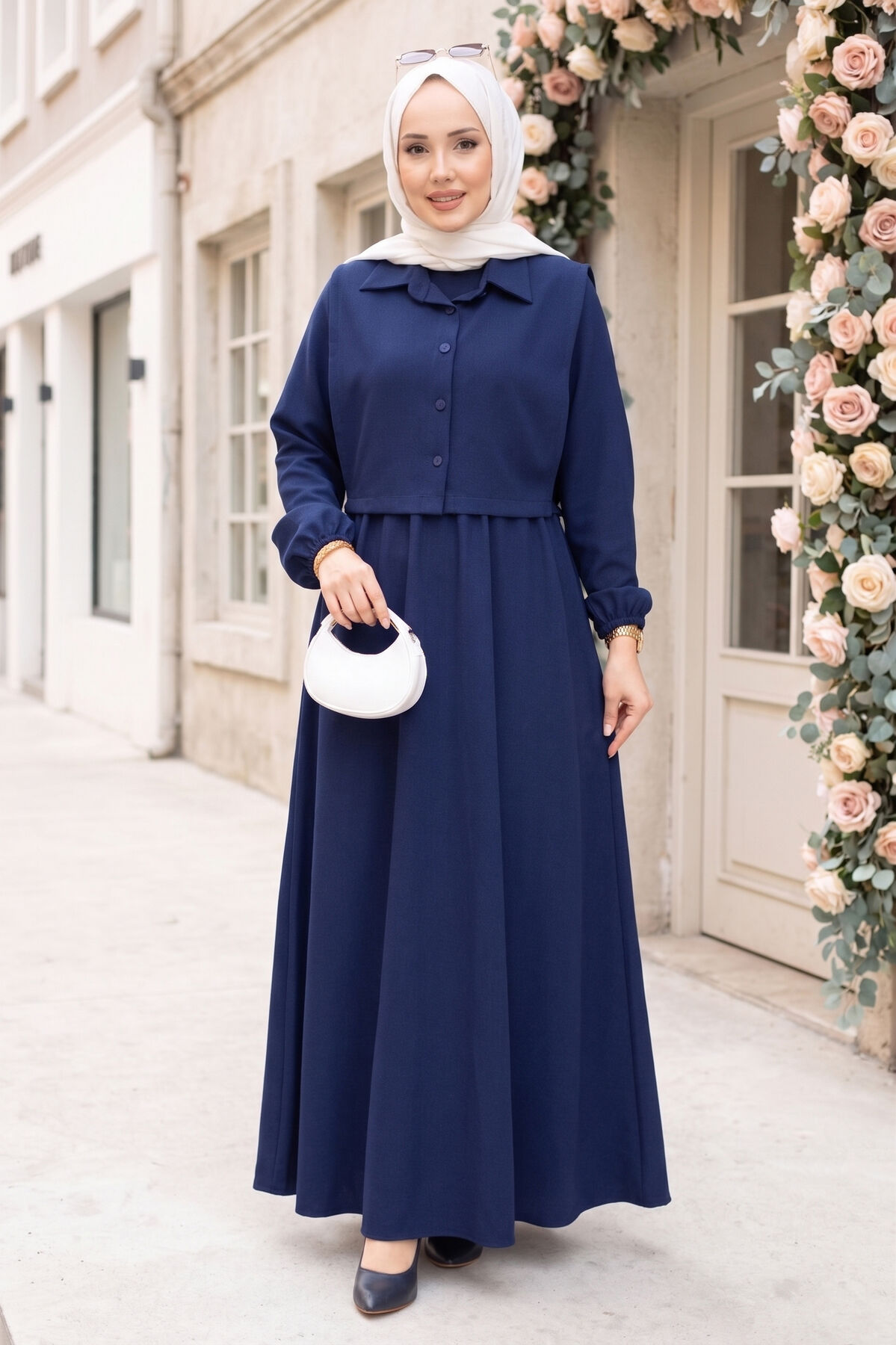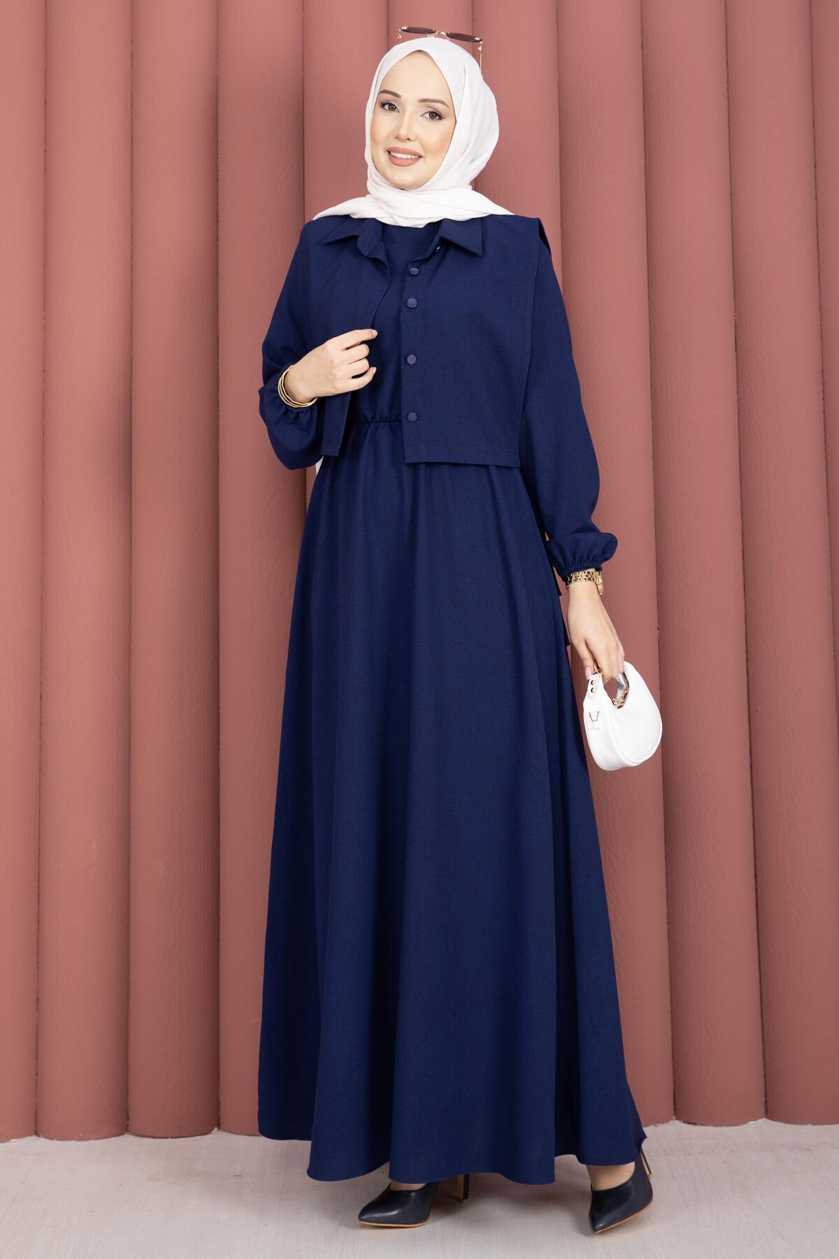 Bolerolu Tesettür Elbise Takım Lacivert Yorumları