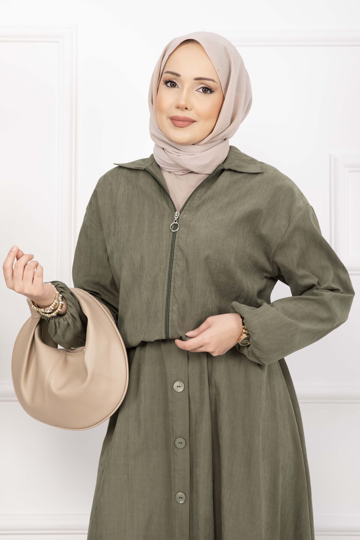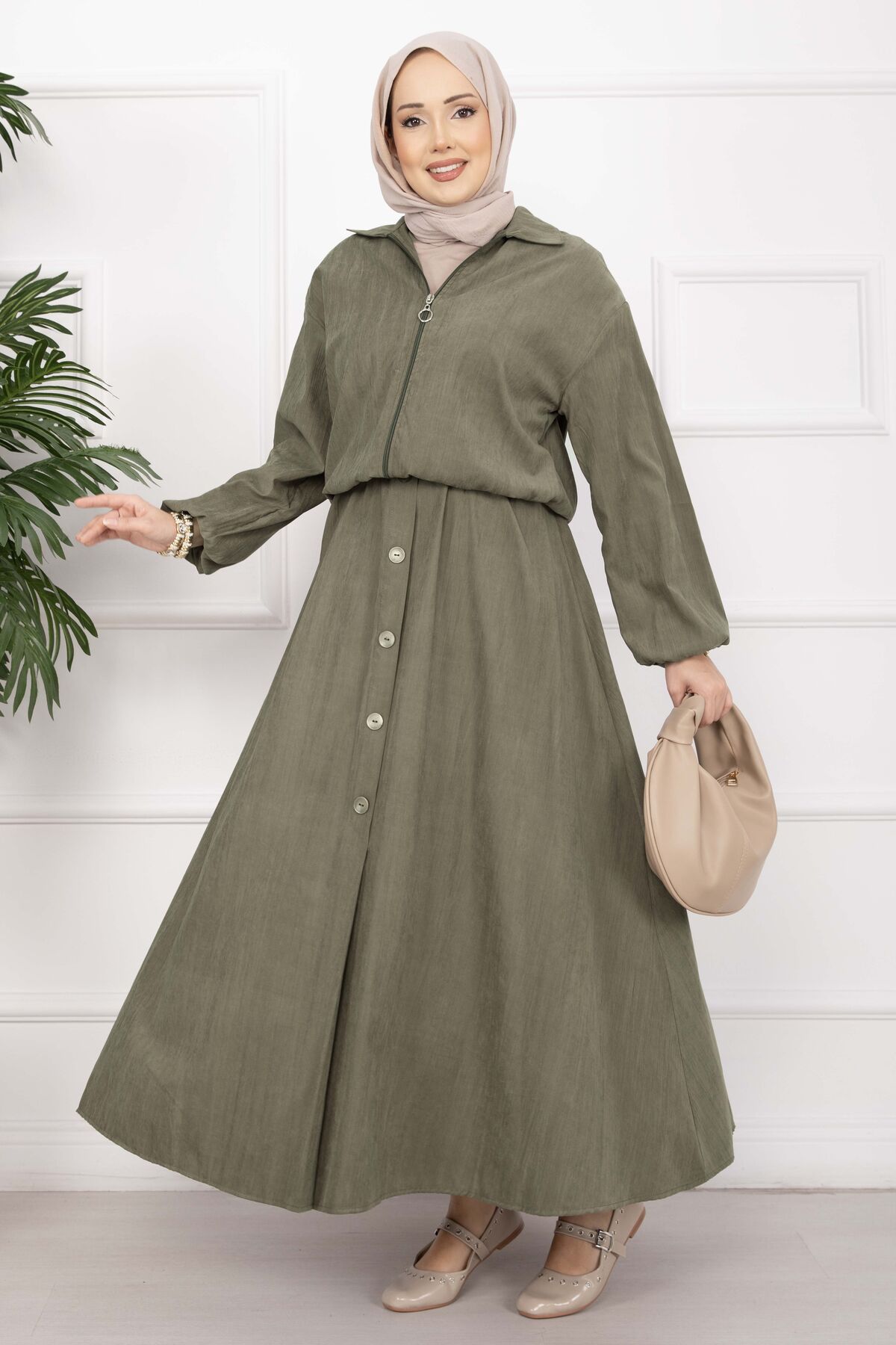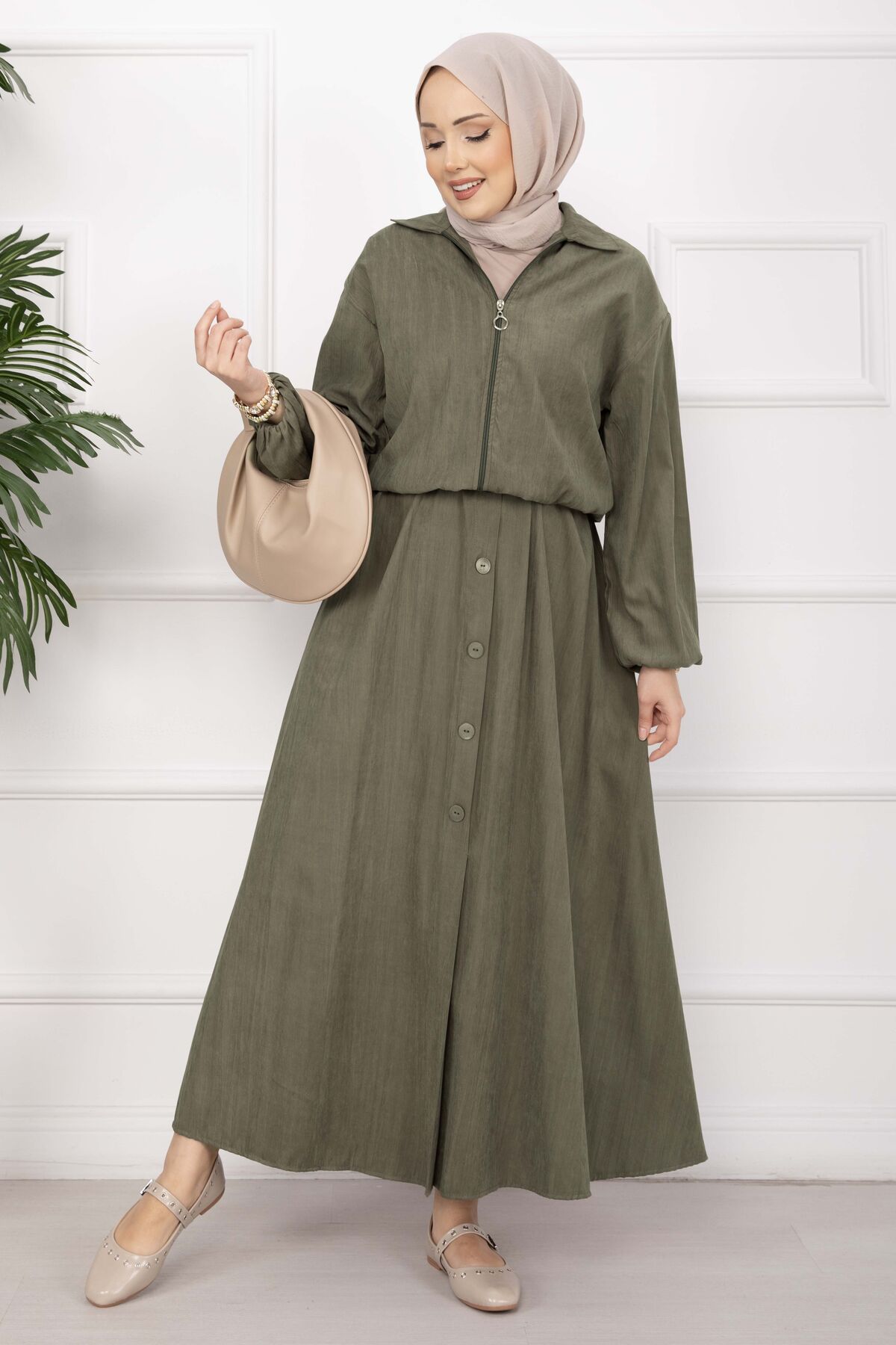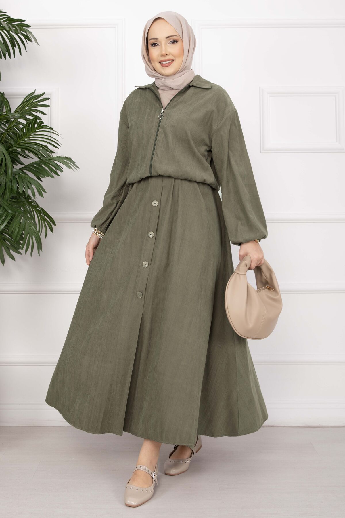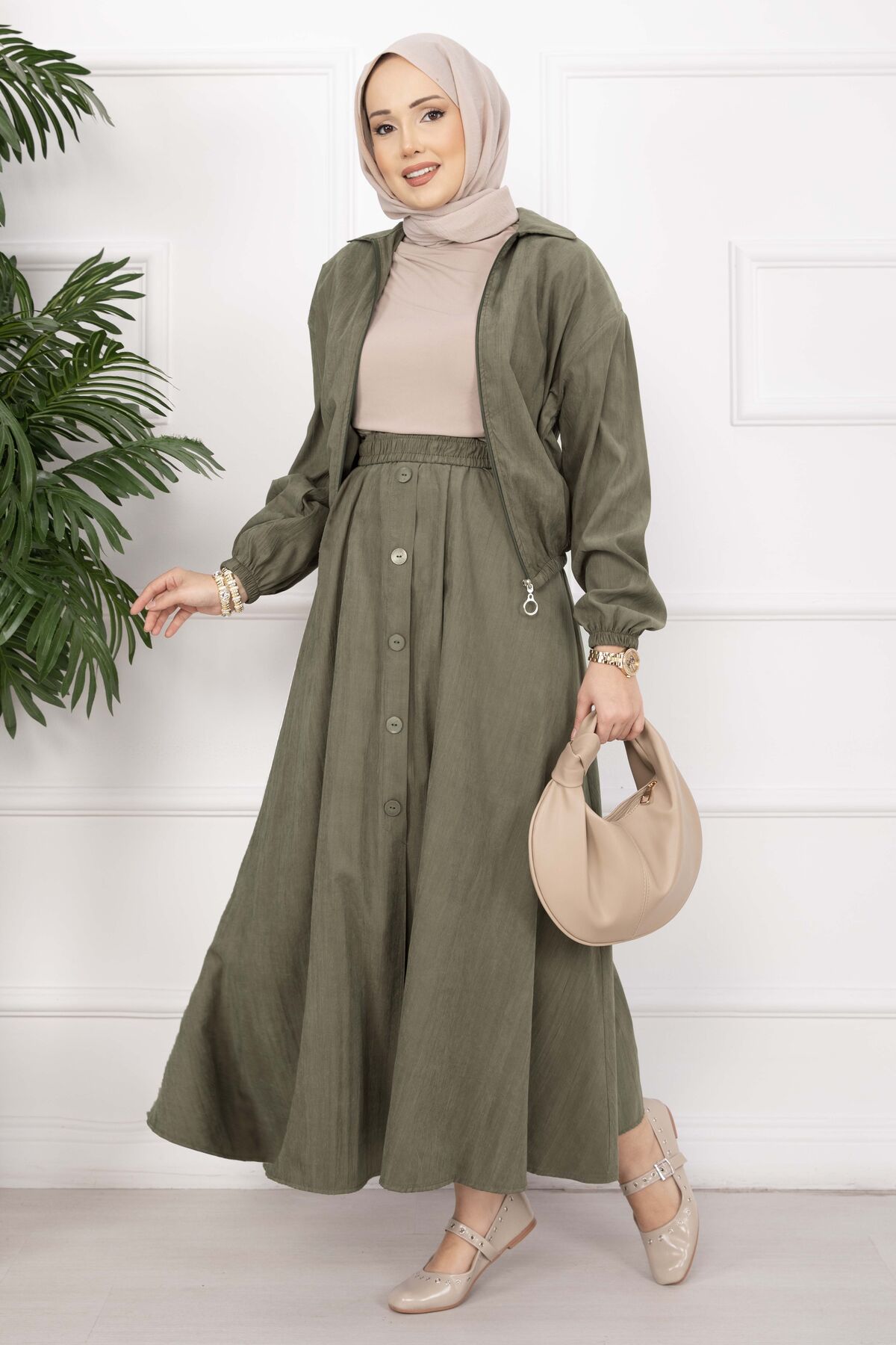 Bomber Ceket & Düğmeli Etek Takım Haki