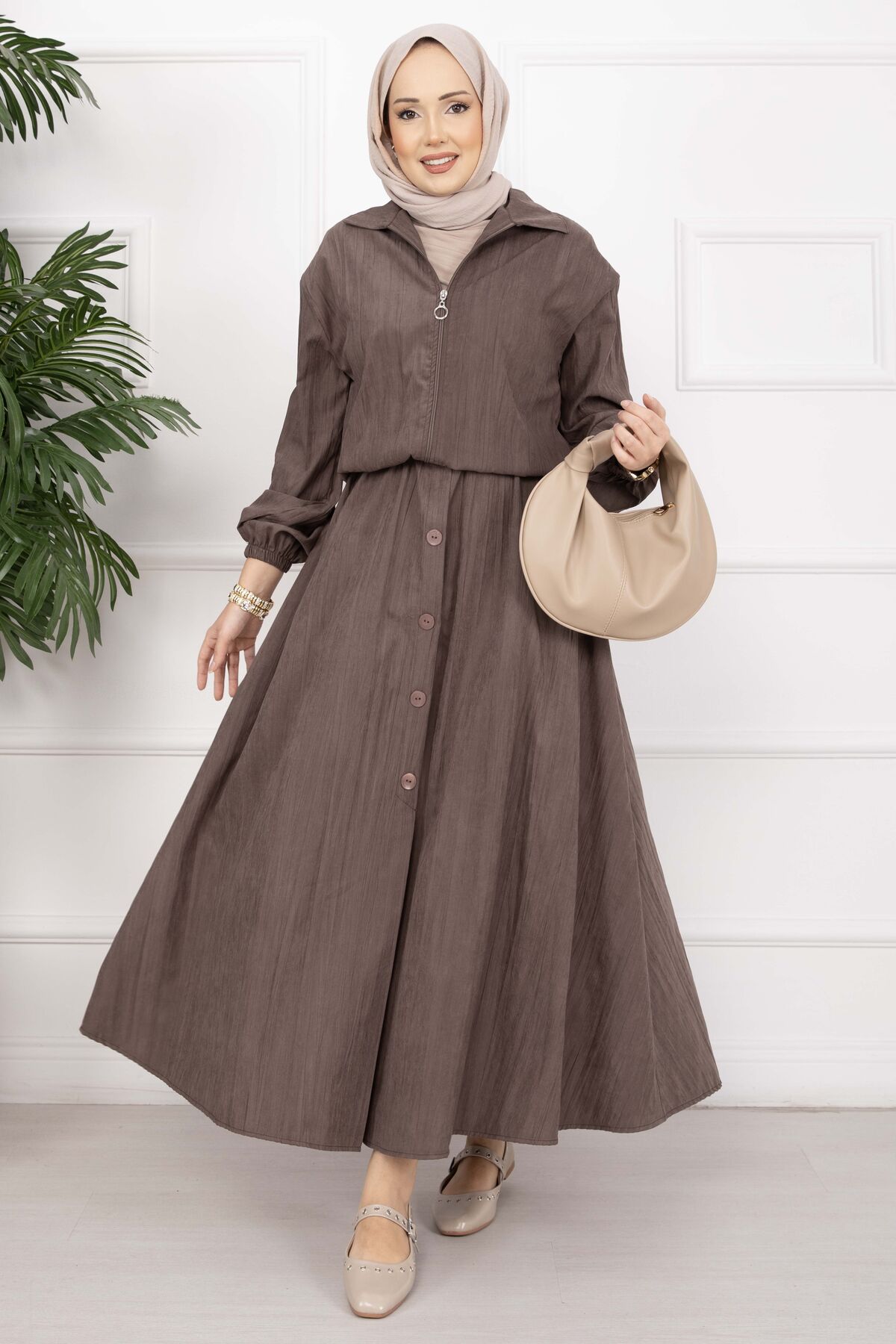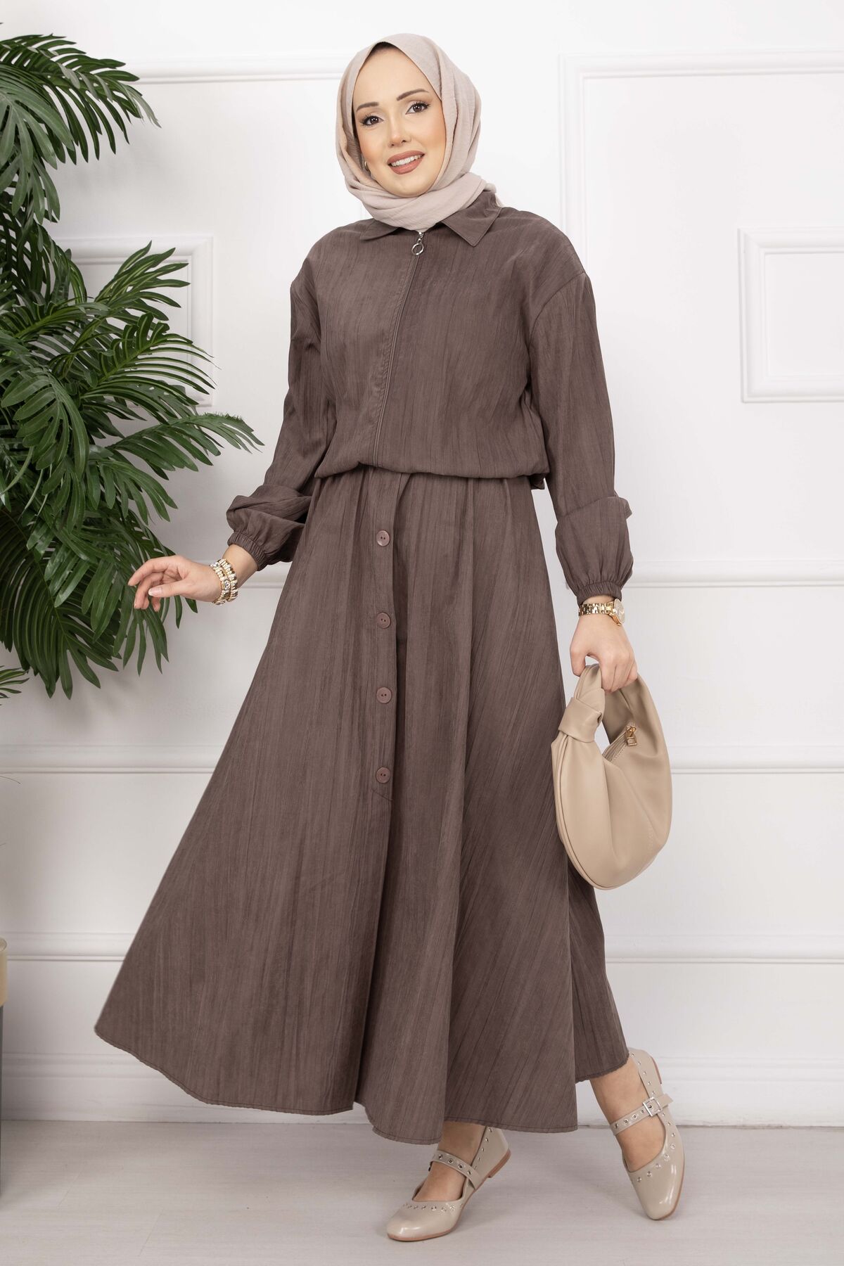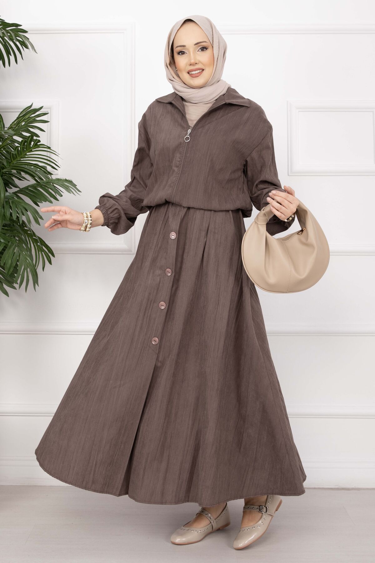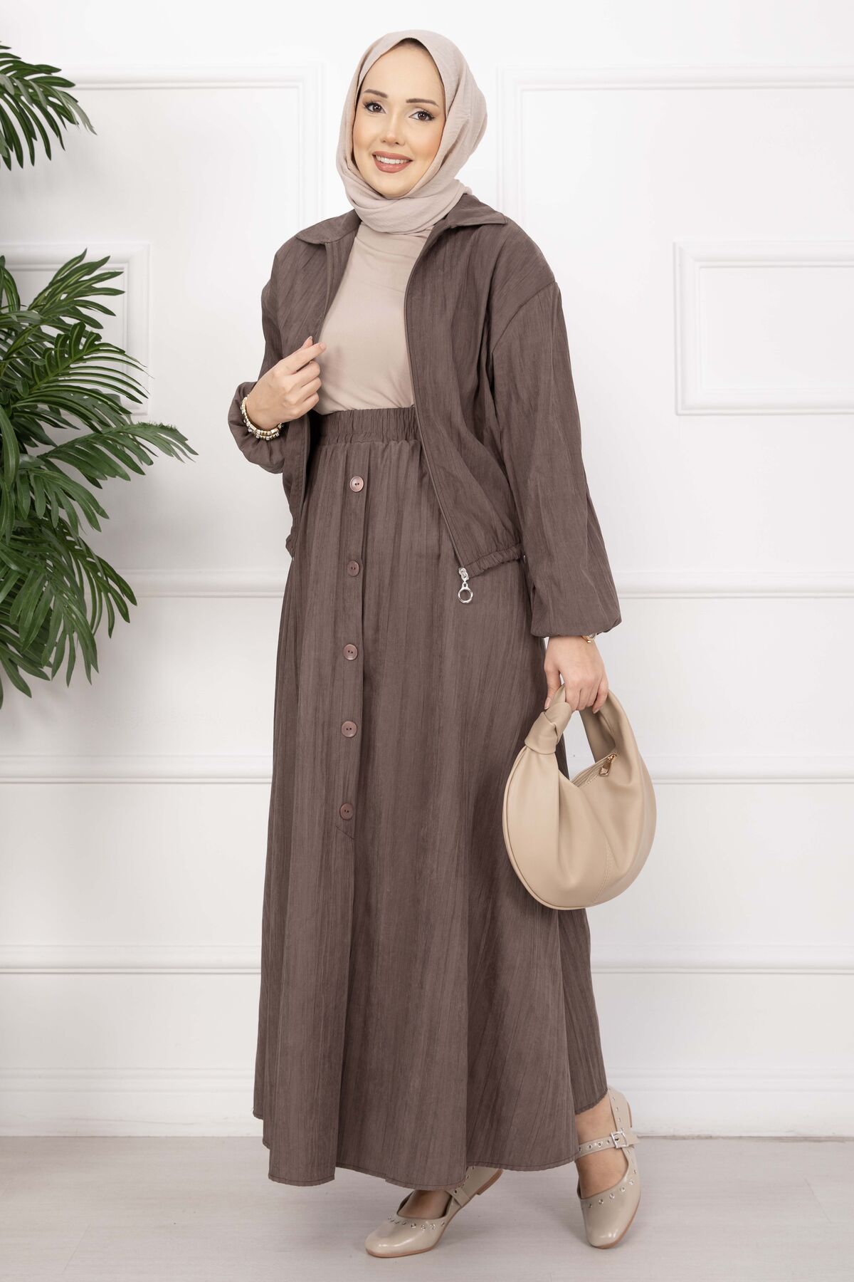 Bomber Ceket & Düğmeli Etek Takım Kahve